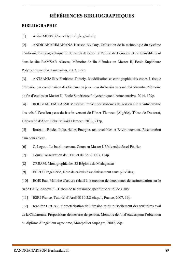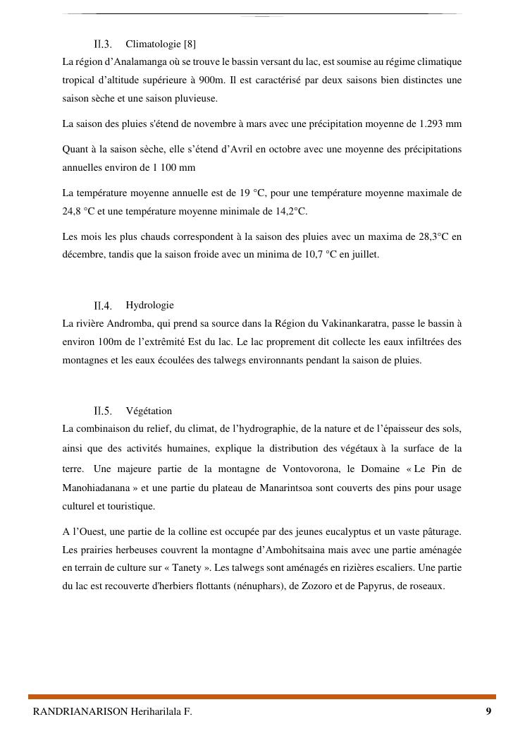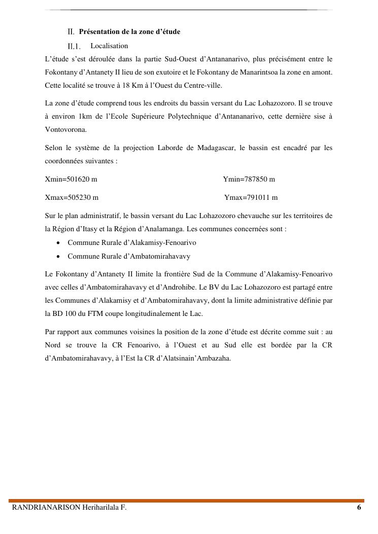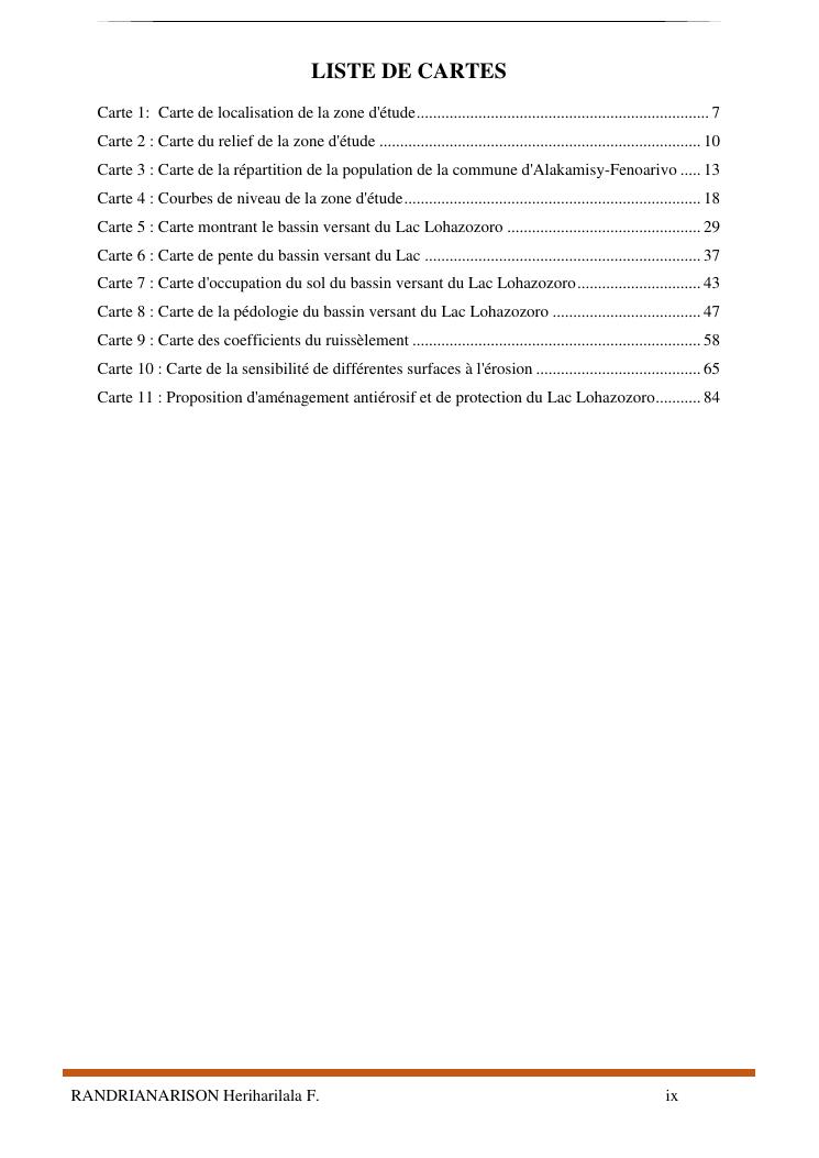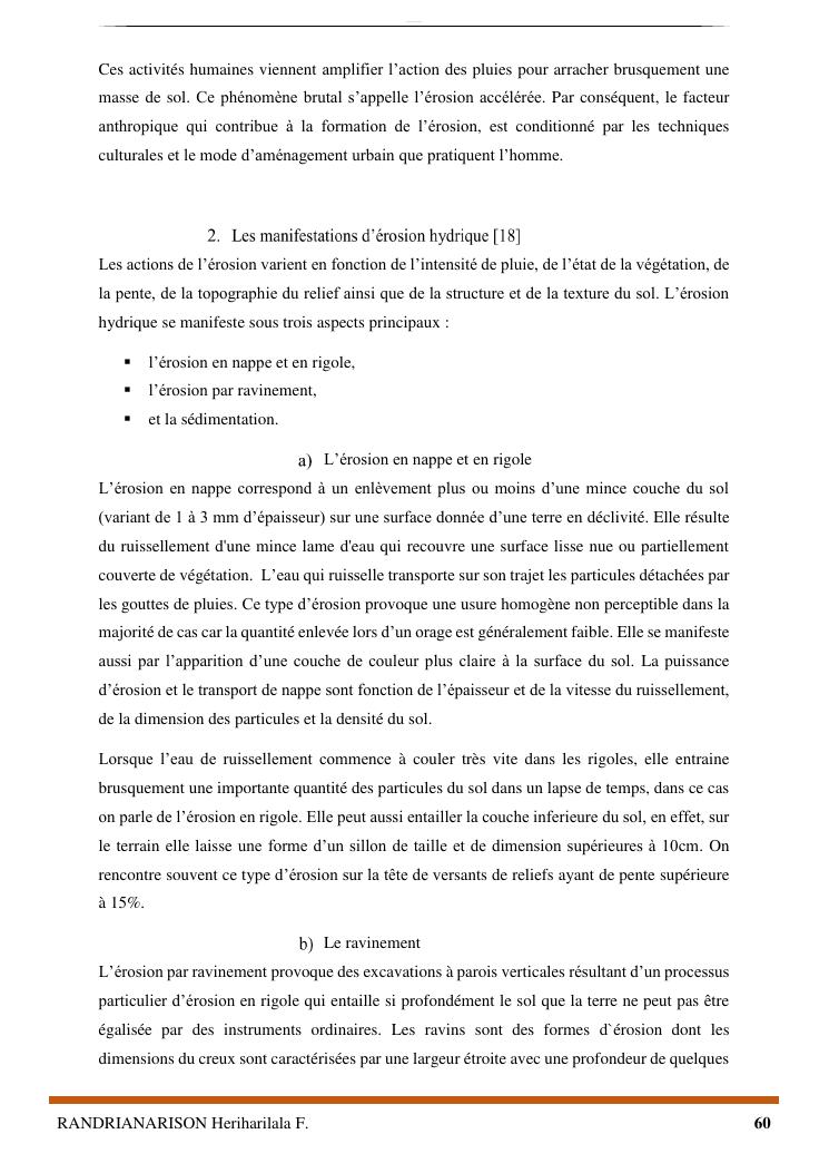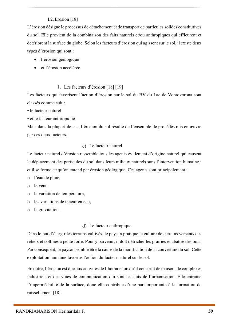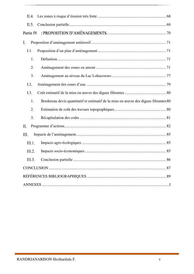 proposition de programme d'actions en vue de la protection du lac lohazozoro de vontovorona contre l'érosion