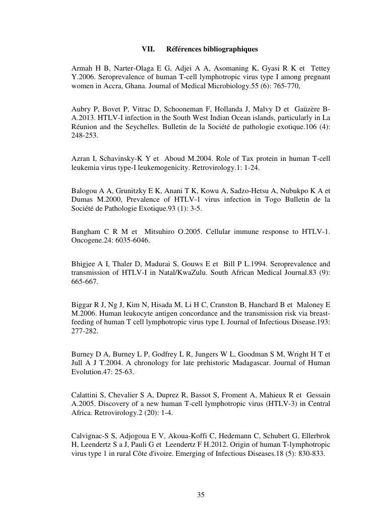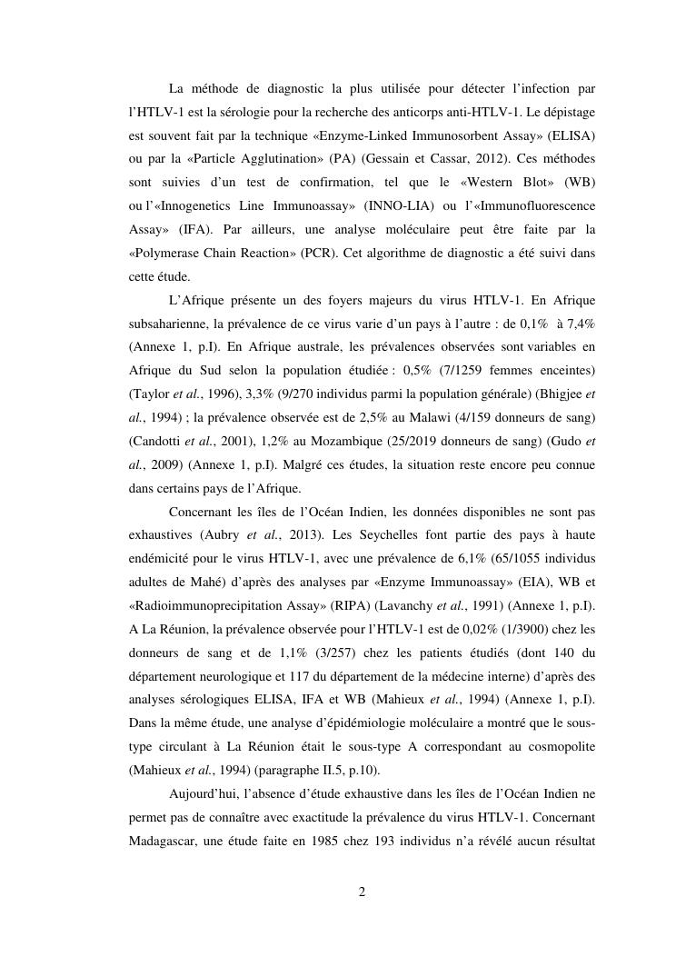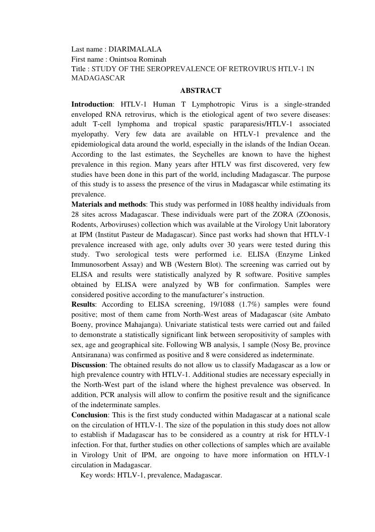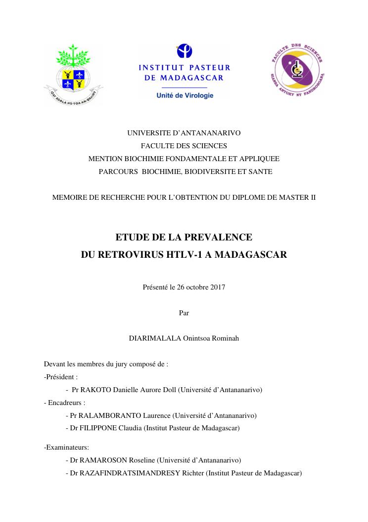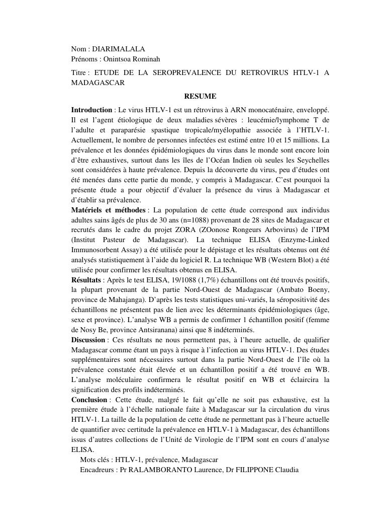etude de la prevalence du retrovirus htlv-1 a madagascar