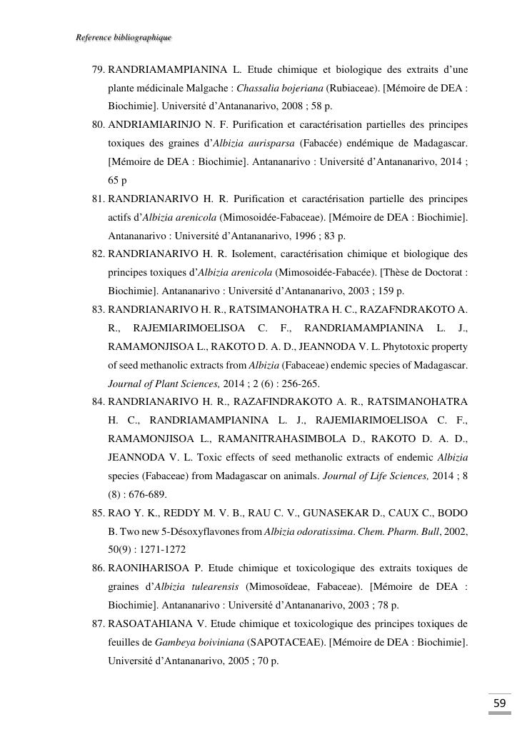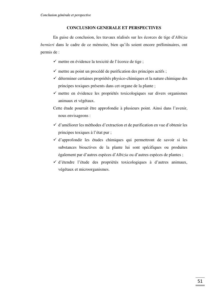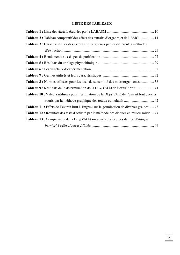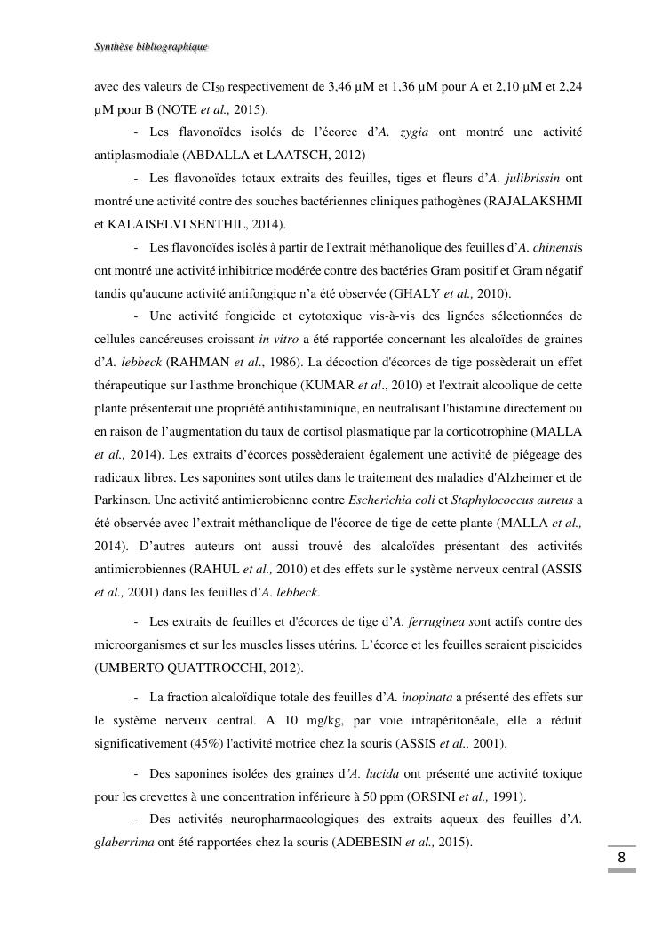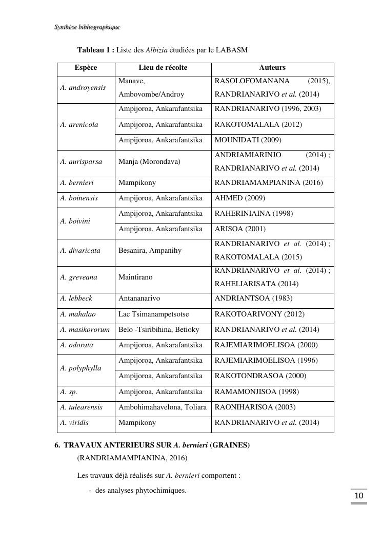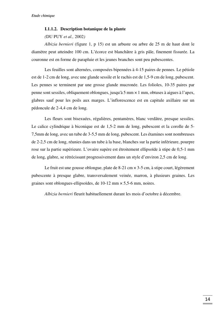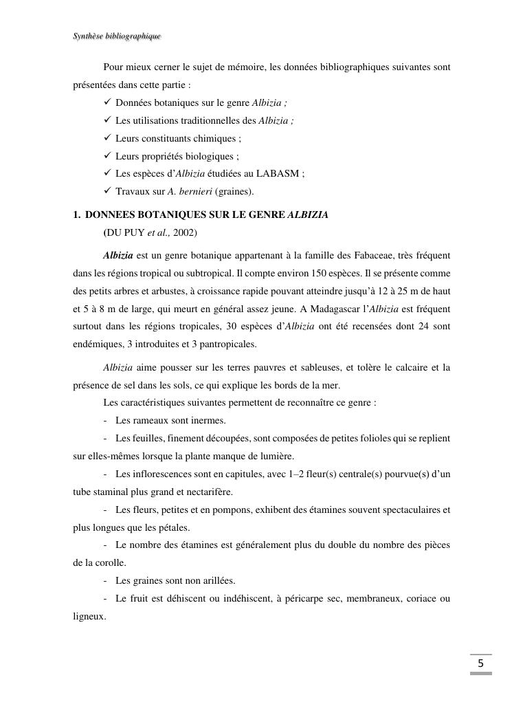 etudes chimique et toxicologique des extraits d'écorce de tige d'albizia bernieri, une fabacée endémique de madagascar