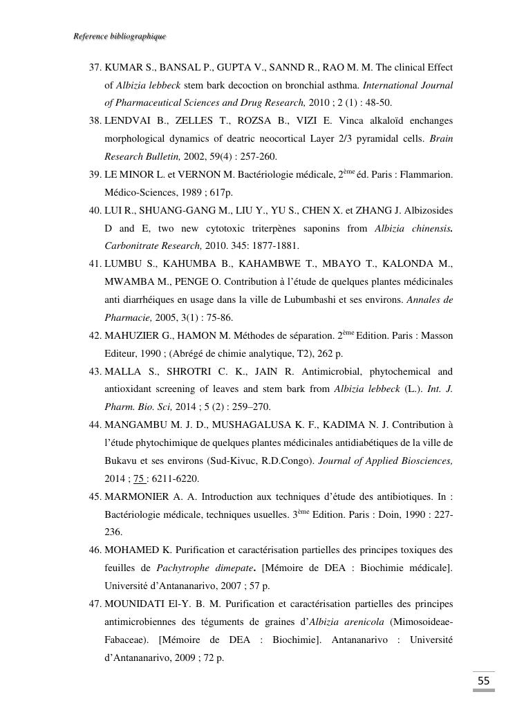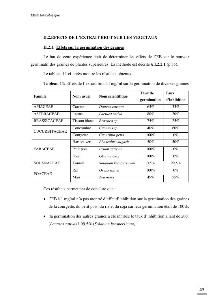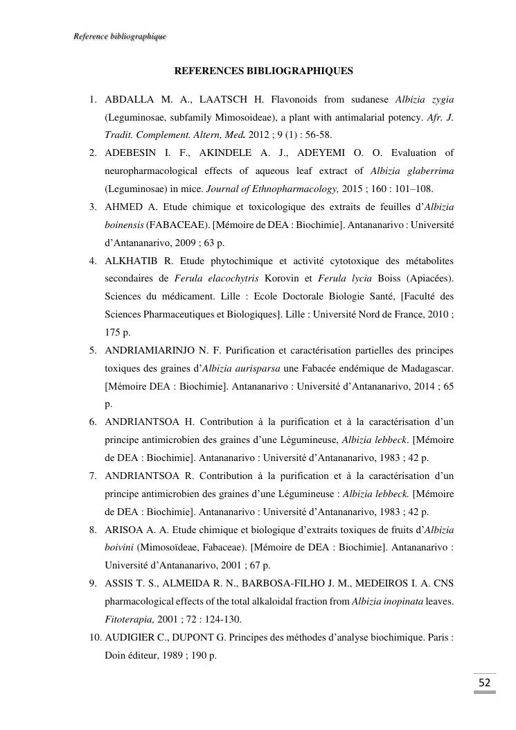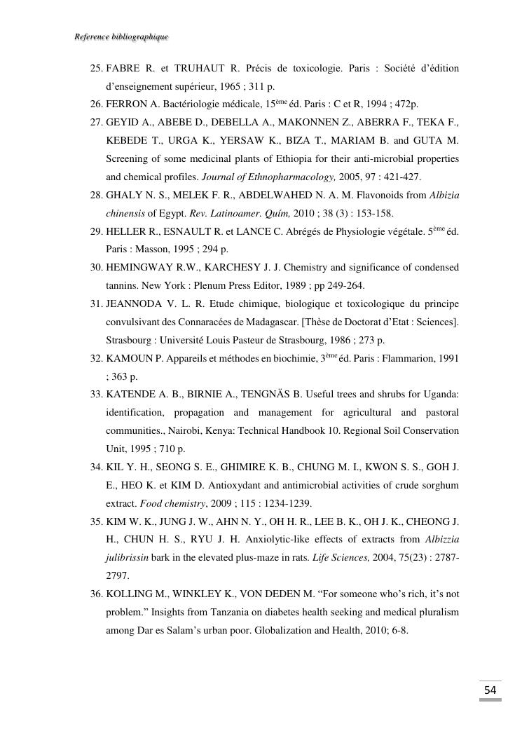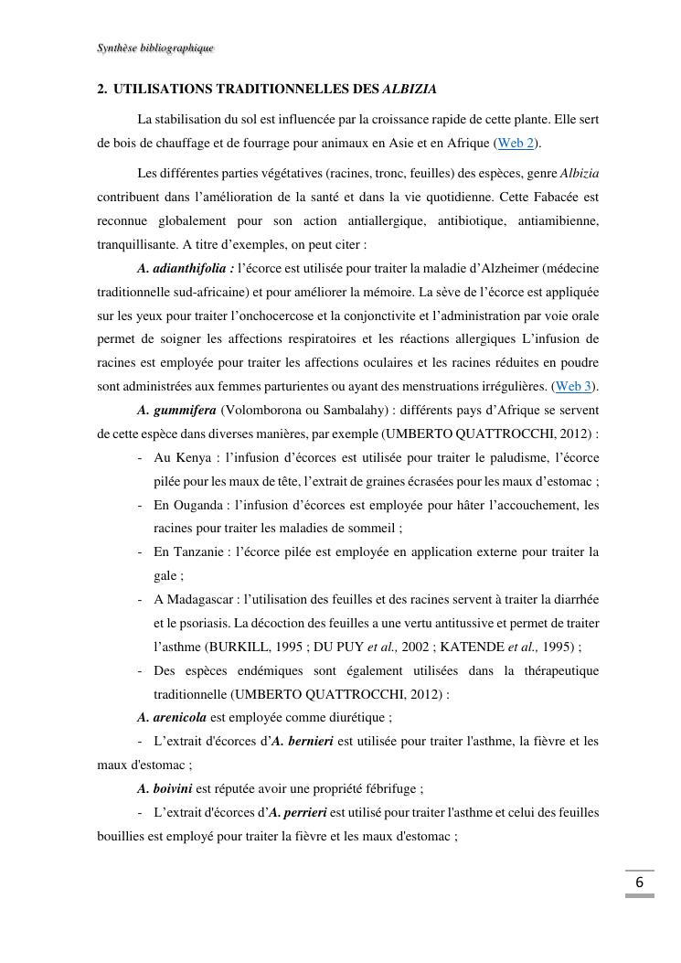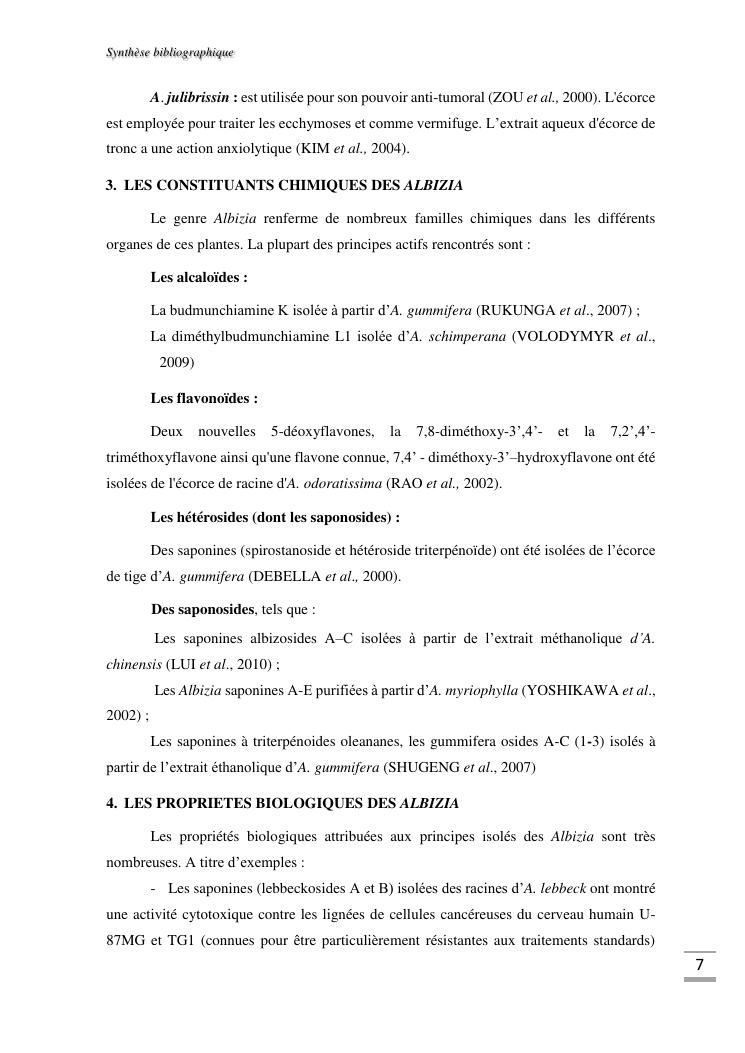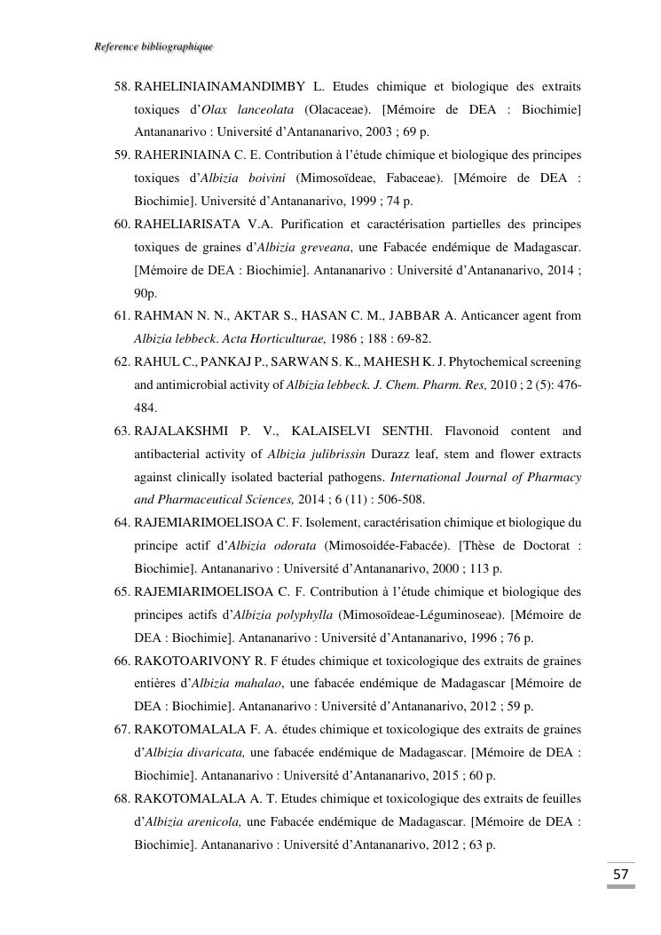 etudes chimique et toxicologique des extraits d'écorce de tige d'albizia bernieri, une fabacée endémique de madagascar