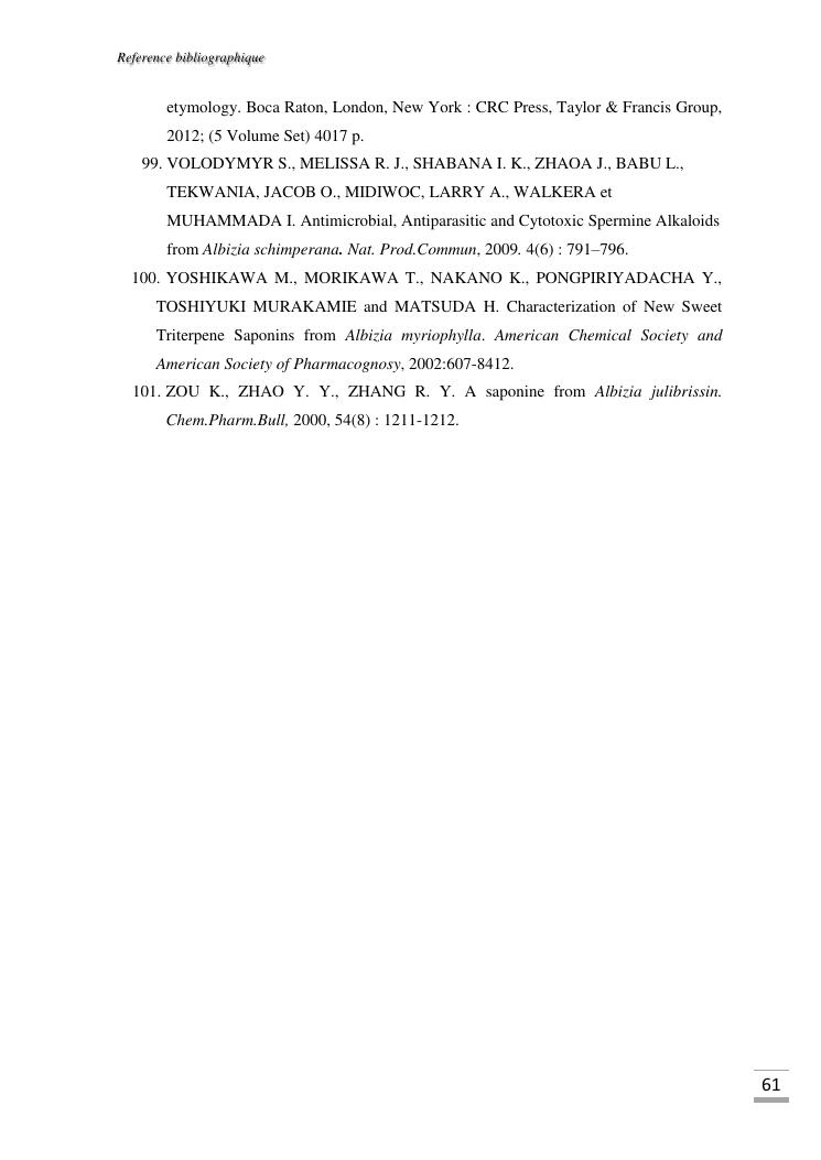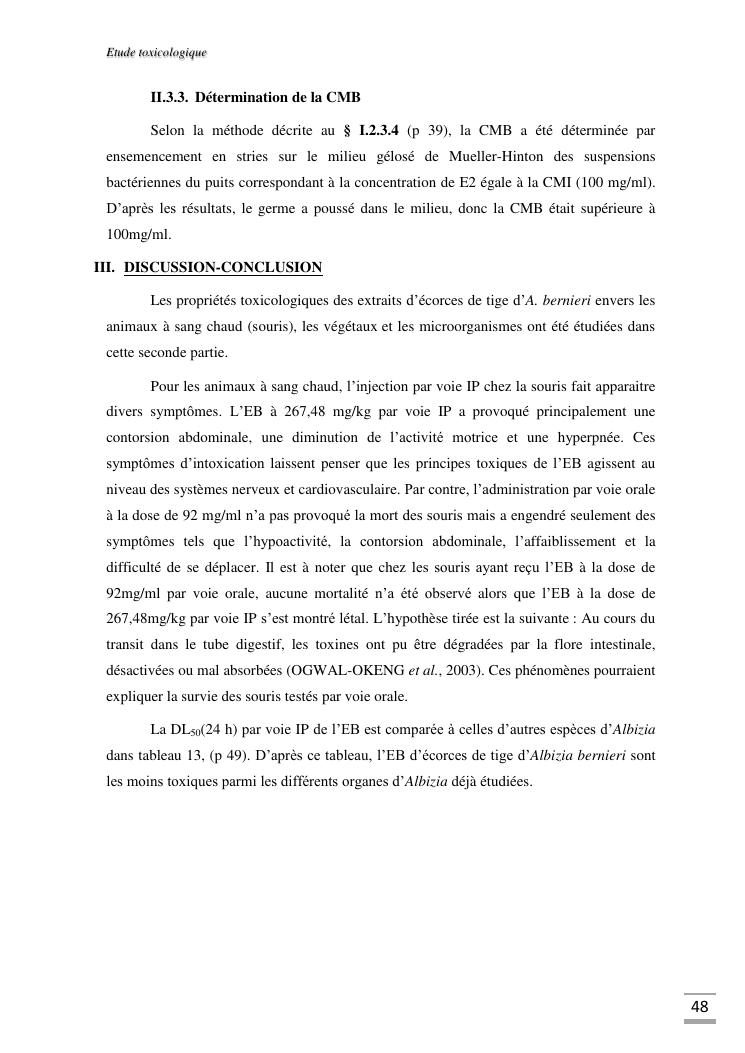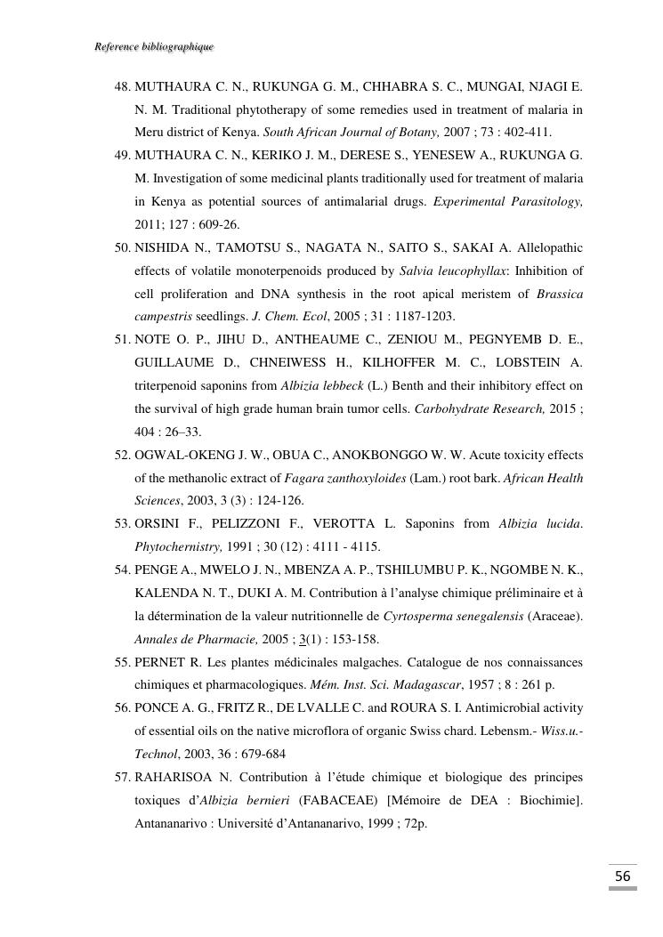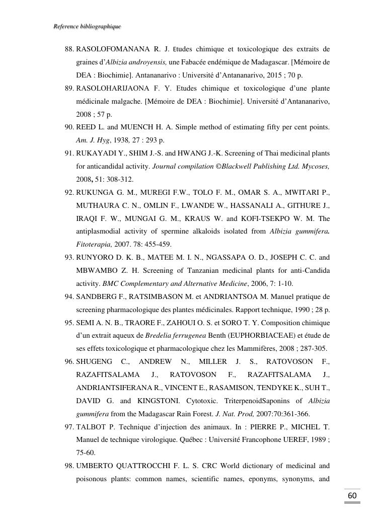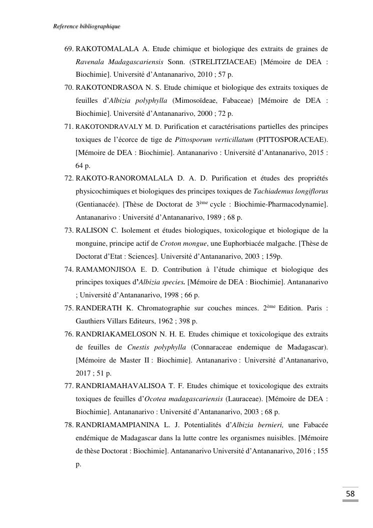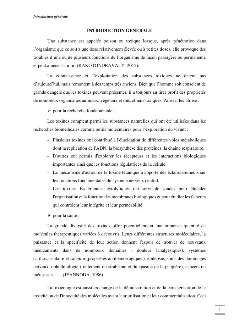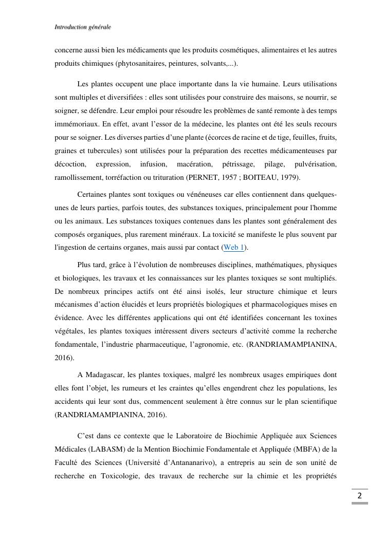 etudes chimique et toxicologique des extraits d'écorce de tige d'albizia bernieri, une fabacée endémique de madagascar