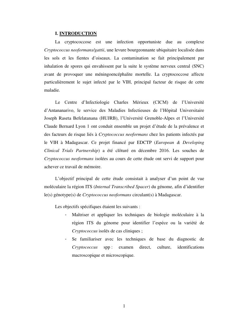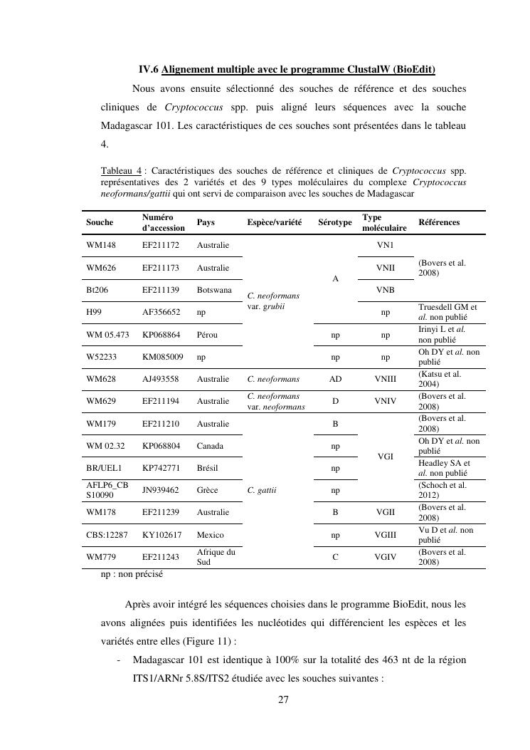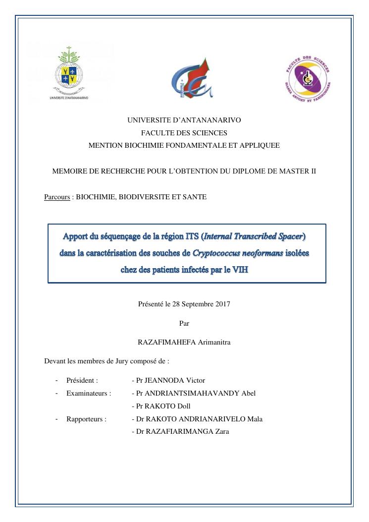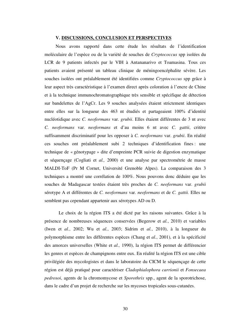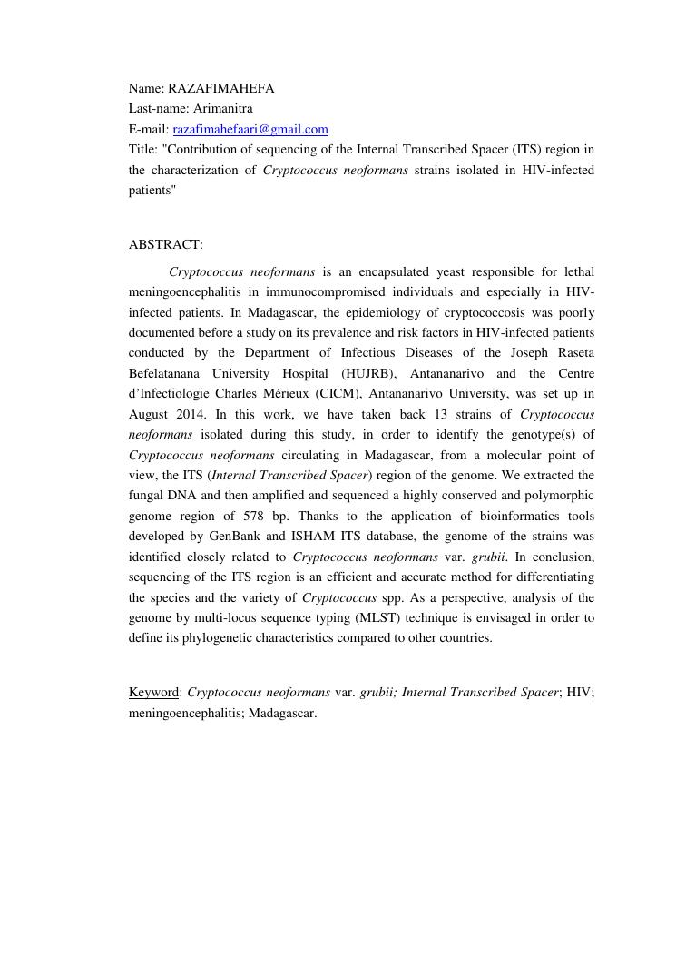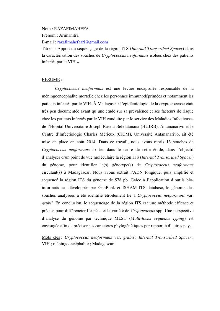 apport du séquençage de la région its (internal transcribed spacer) dans la caractérisation des souches de cryptococcus neoformans isolées chez des patients infectés par le vih