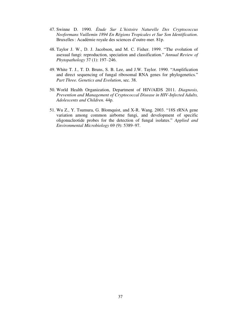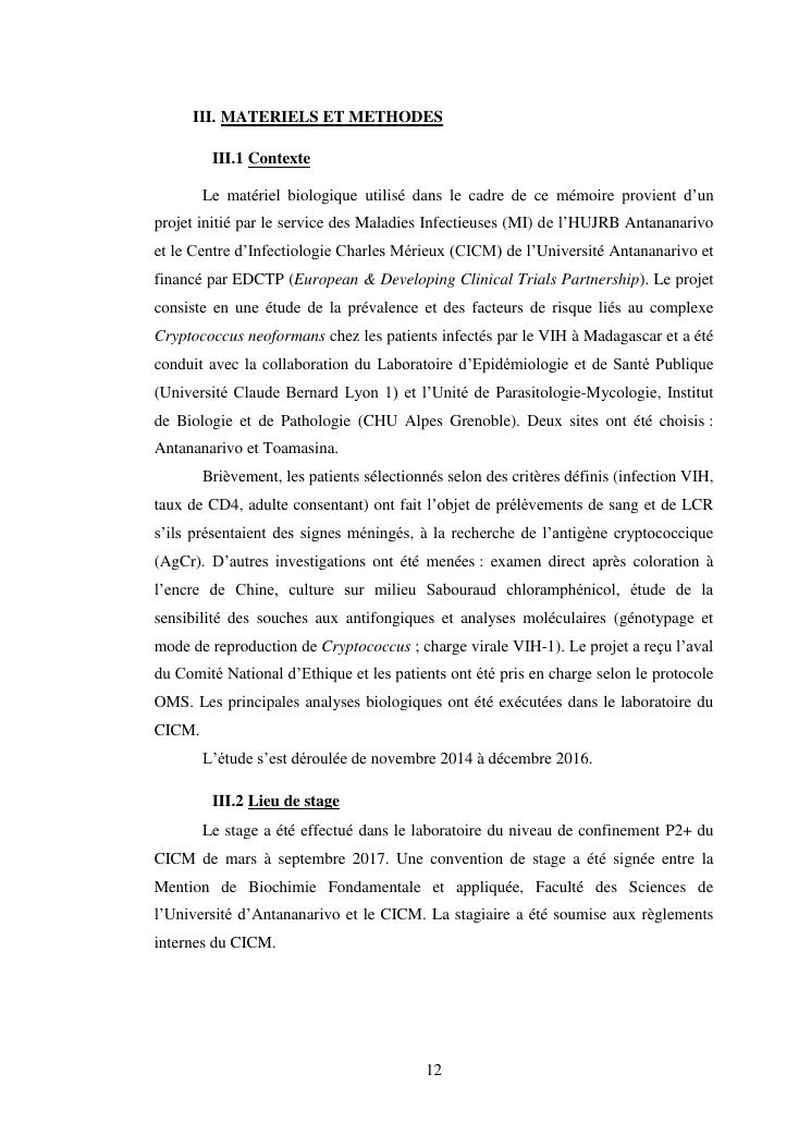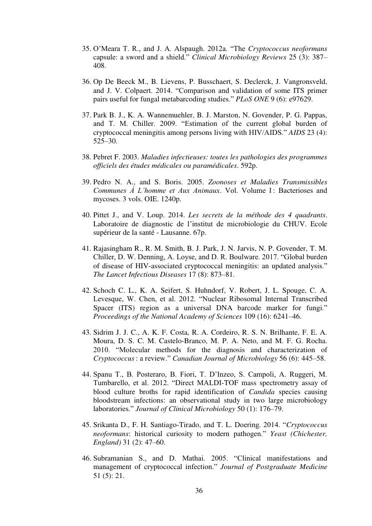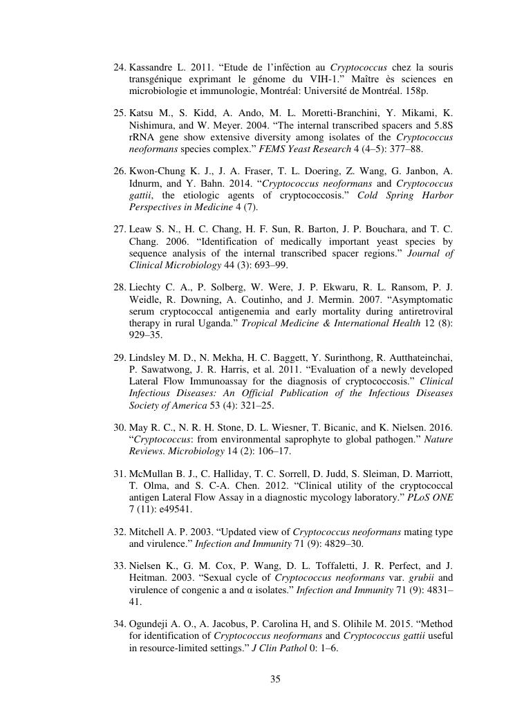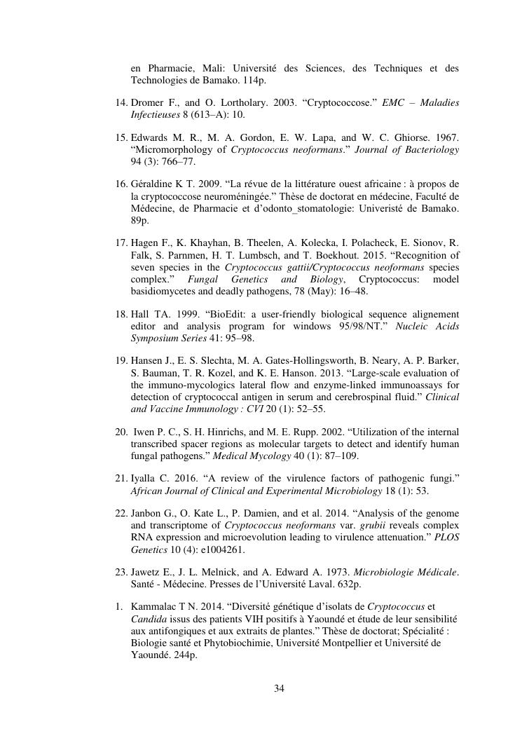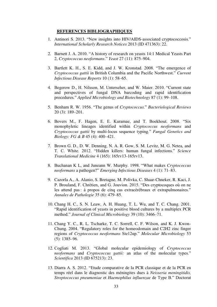 apport du séquençage de la région its (internal transcribed spacer) dans la caractérisation des souches de cryptococcus neoformans isolées chez des patients infectés par le vih