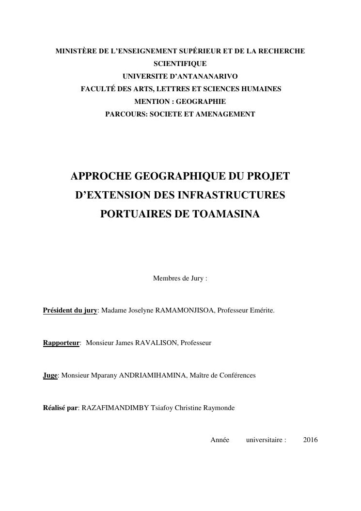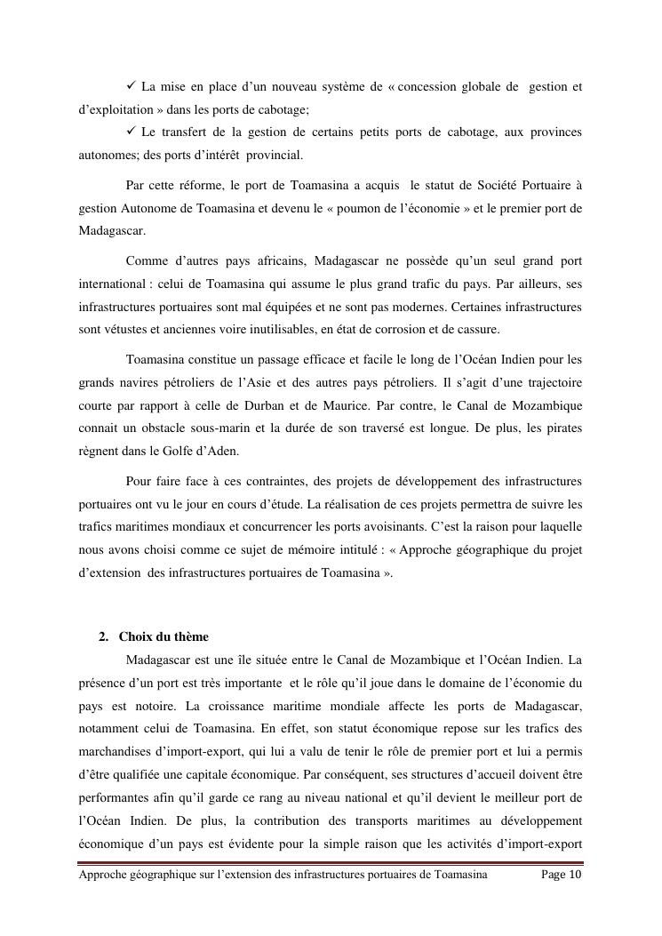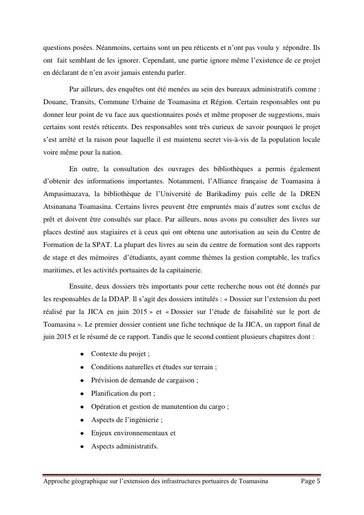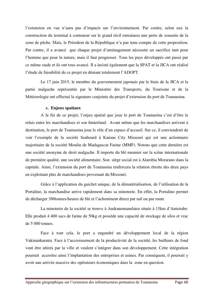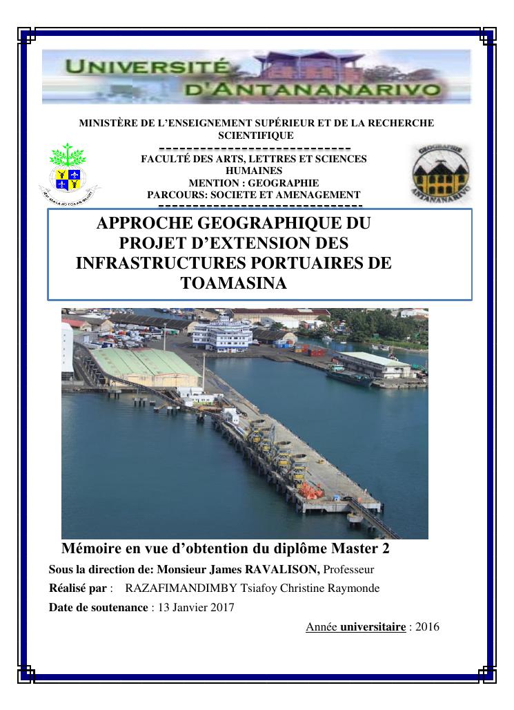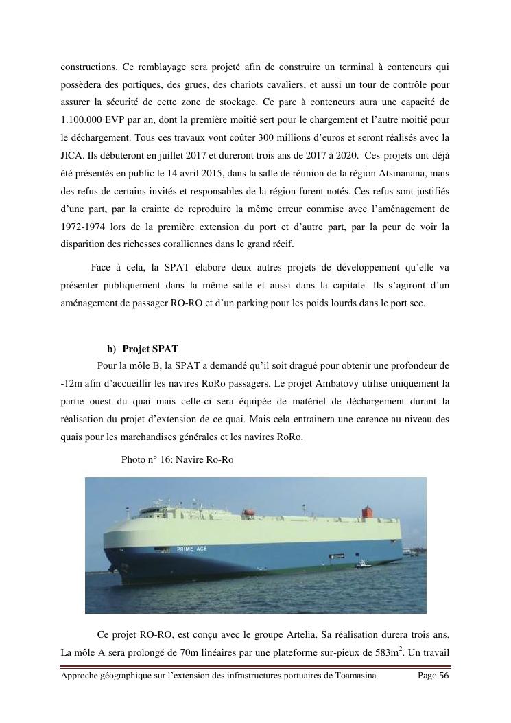 approche geographique du projet d'extension des infrastructures portuaires de toamasina