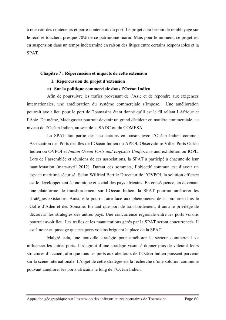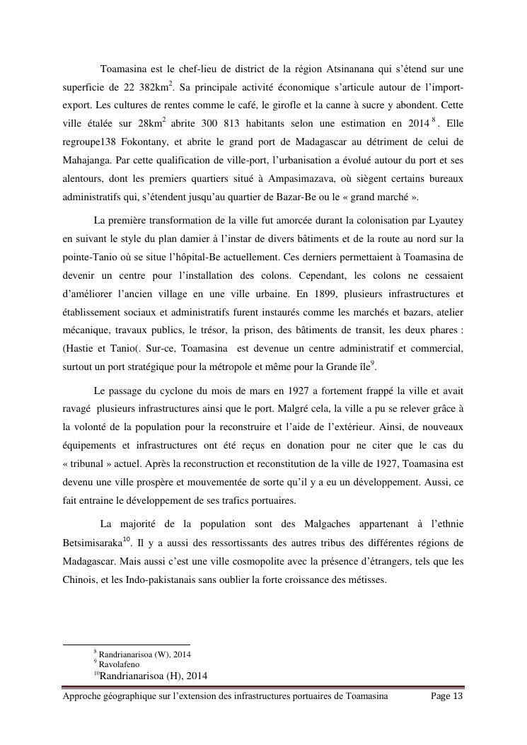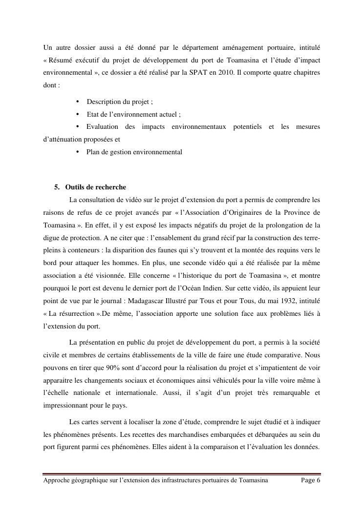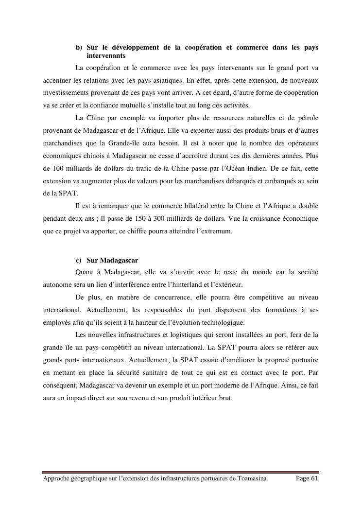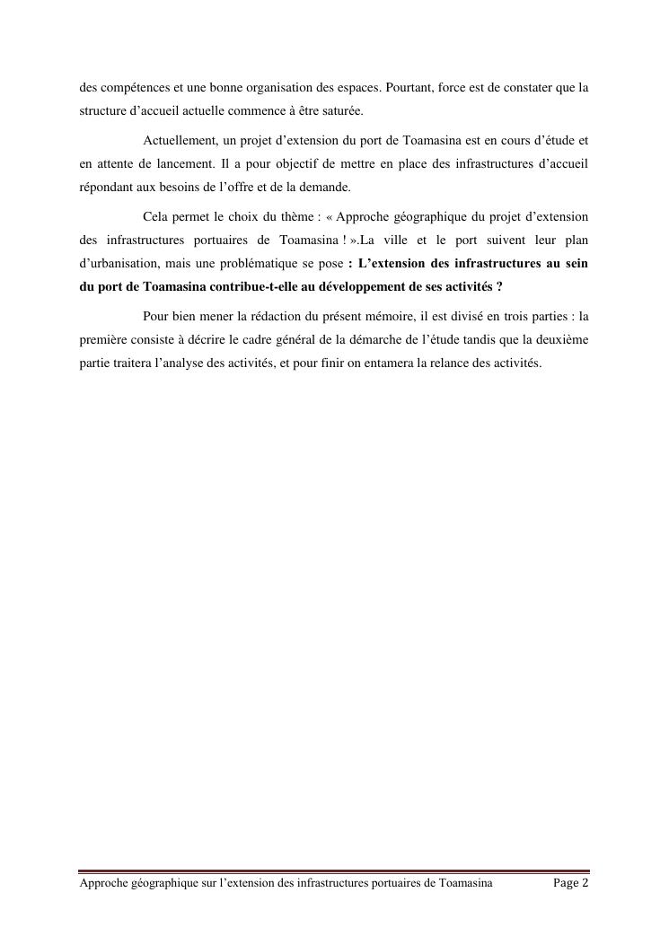 approche geographique du projet d'extension des infrastructures portuaires de toamasina