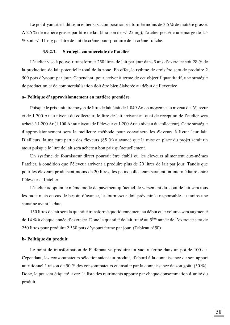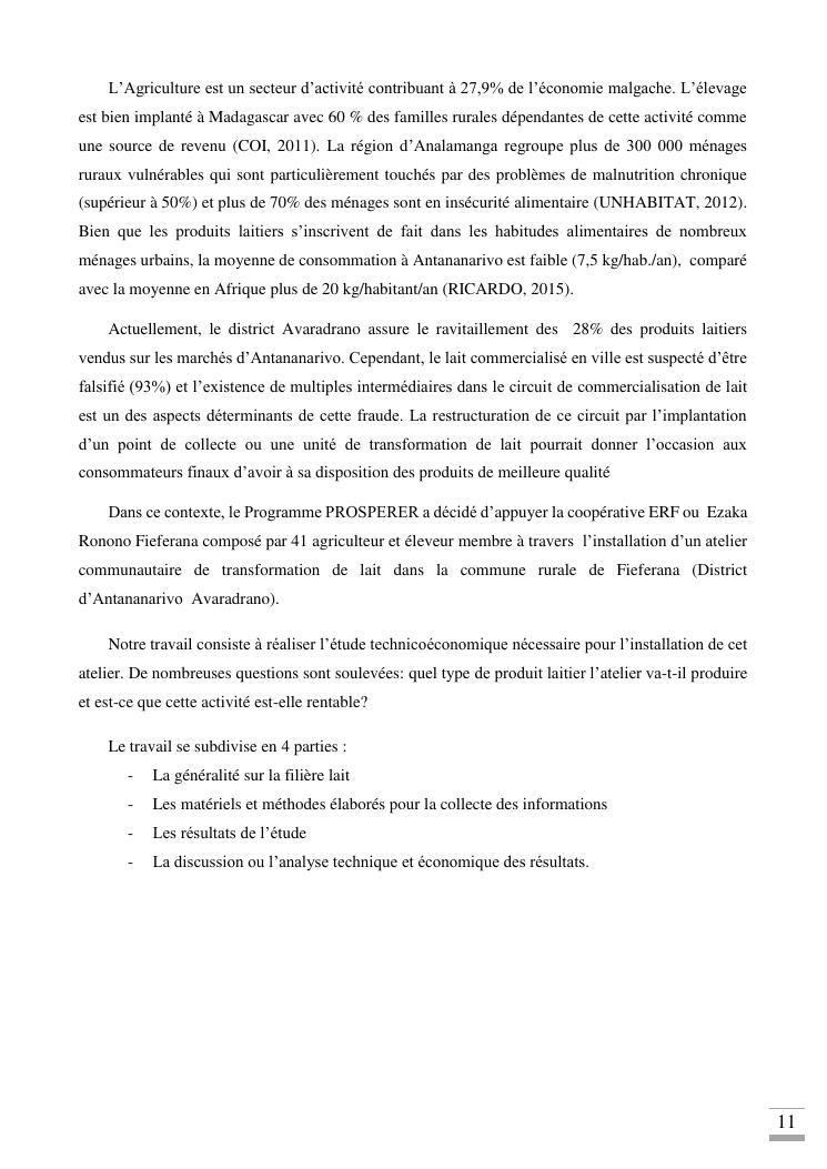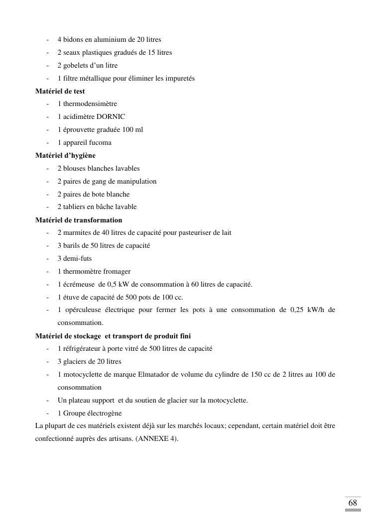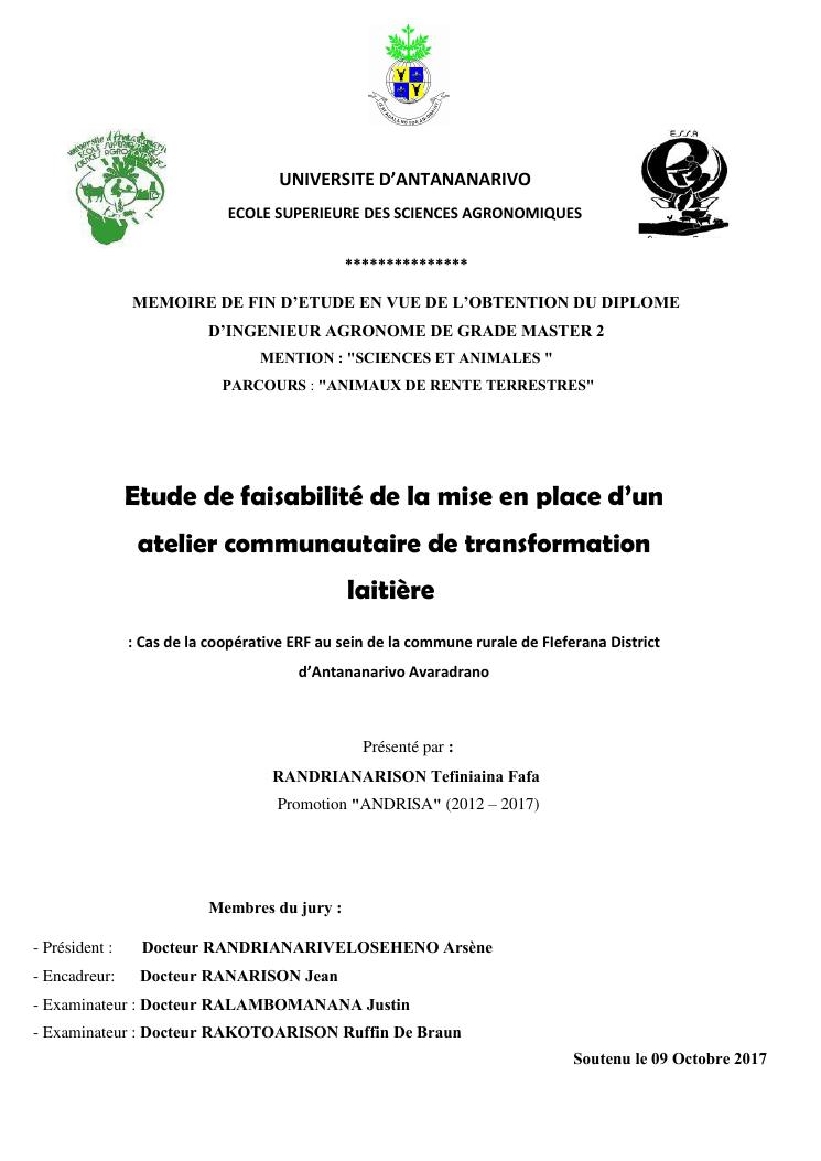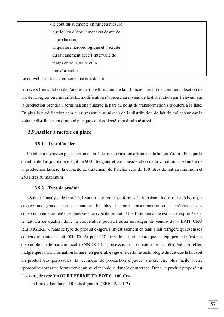 etude de faisabilité de la mise en place d'un atelier communautaire de transformation laitière
