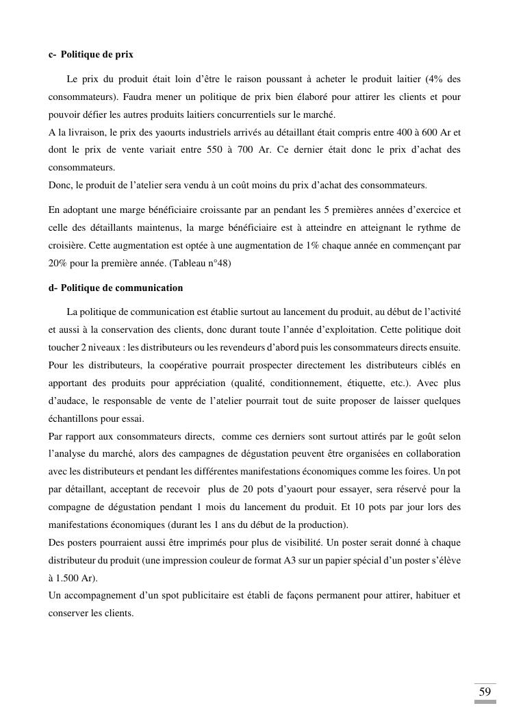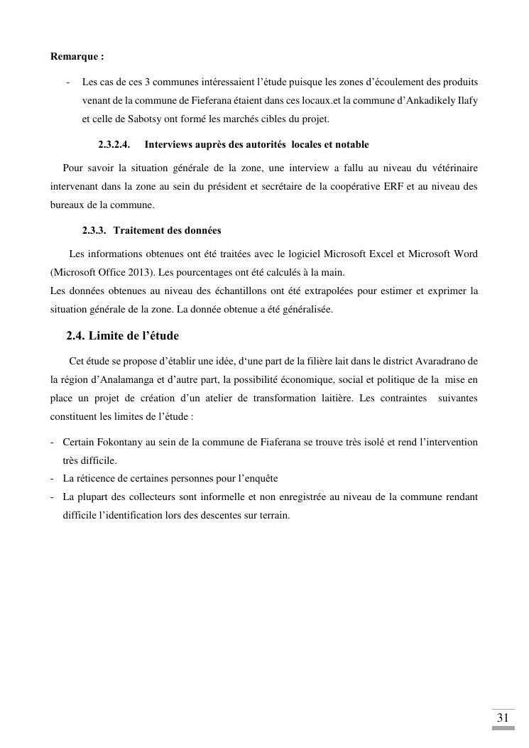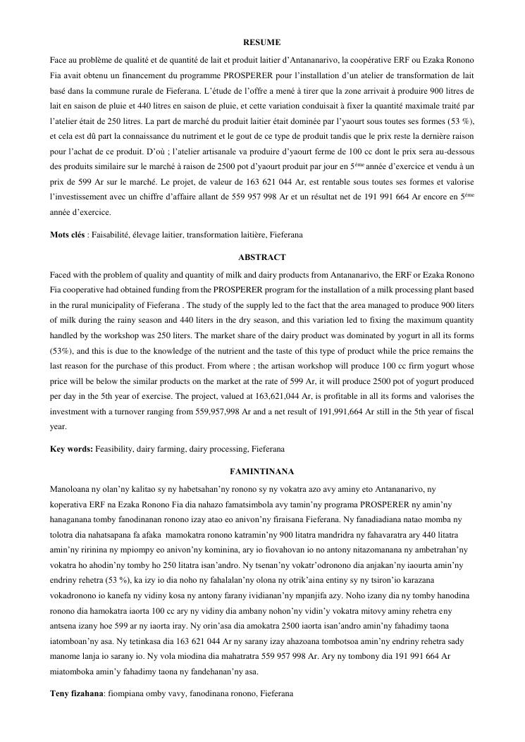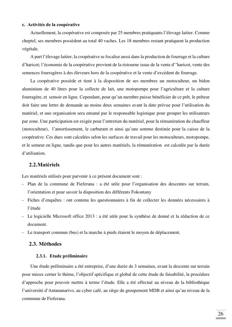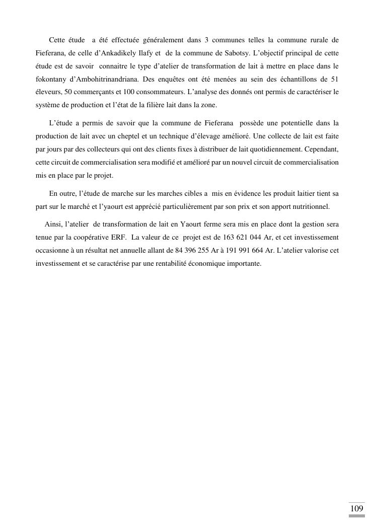 etude de faisabilité de la mise en place d'un atelier communautaire de transformation laitière