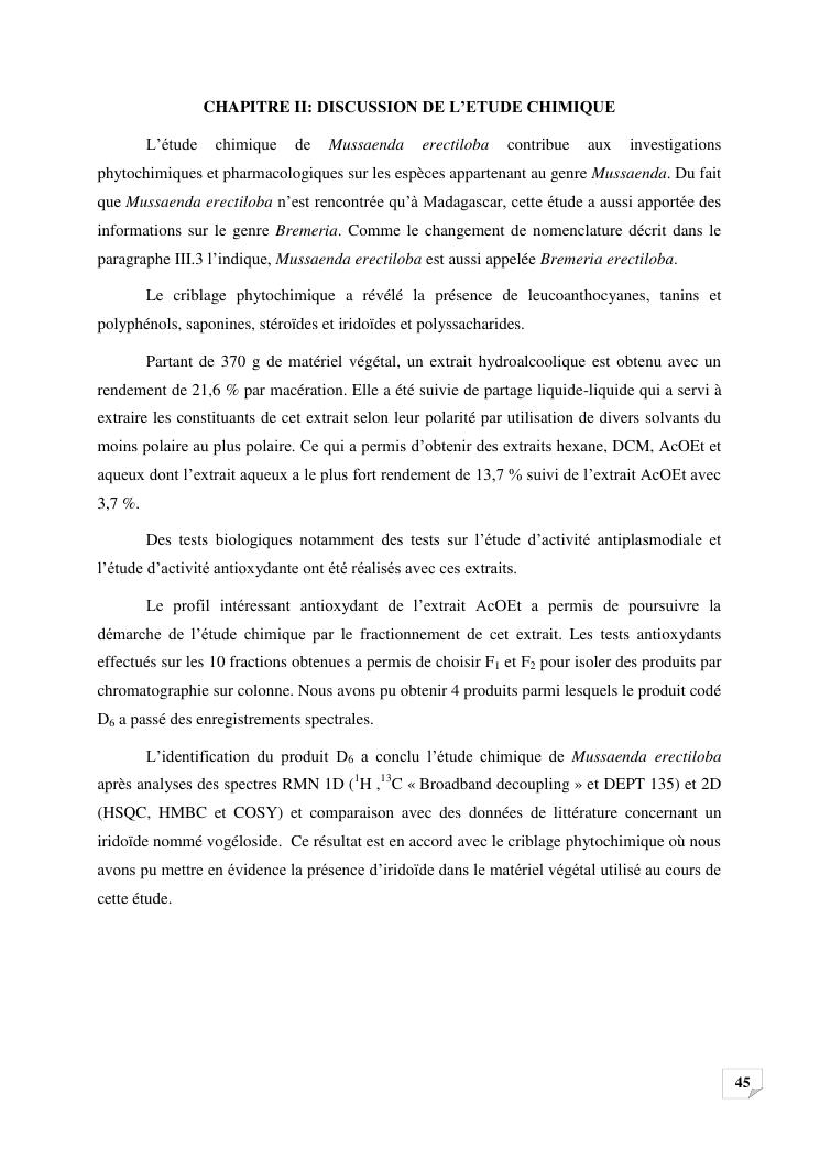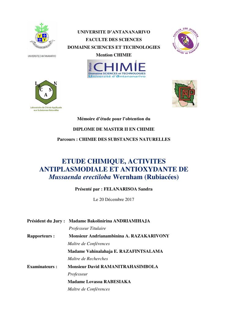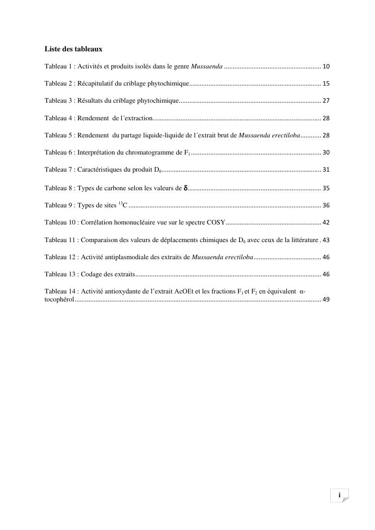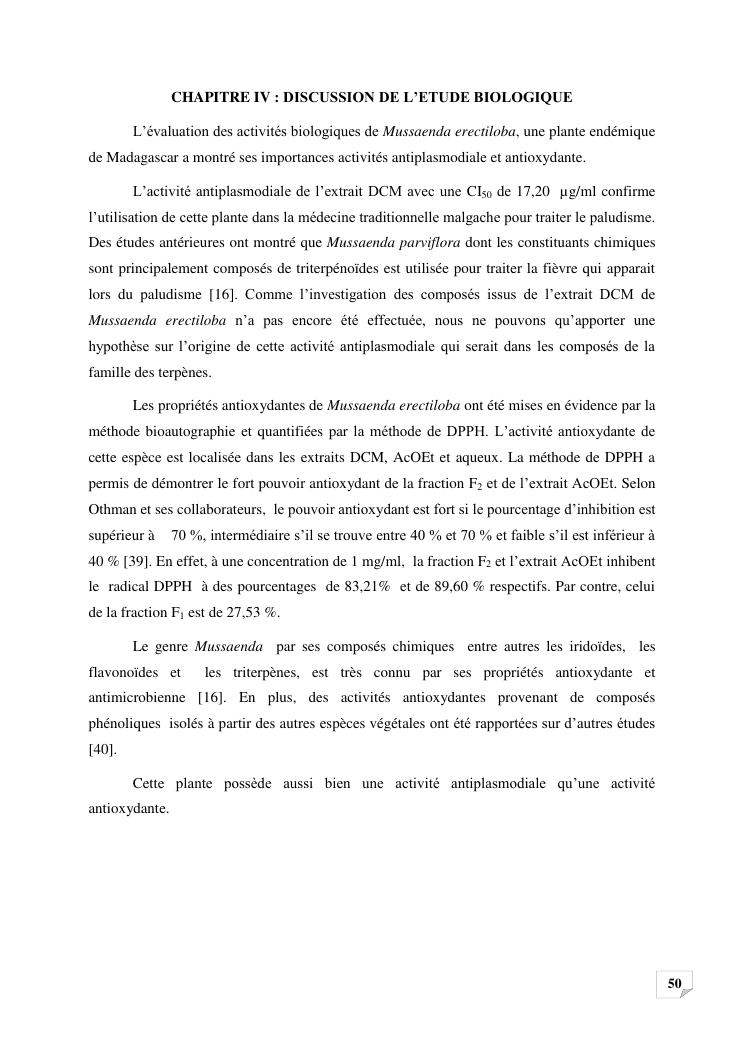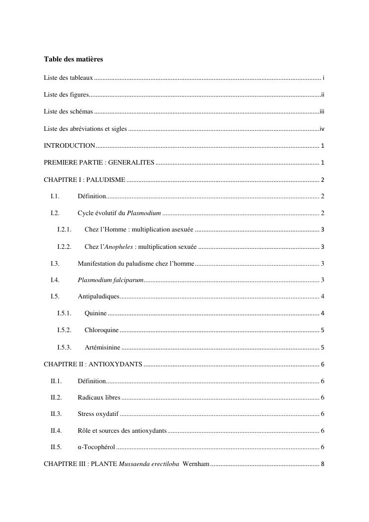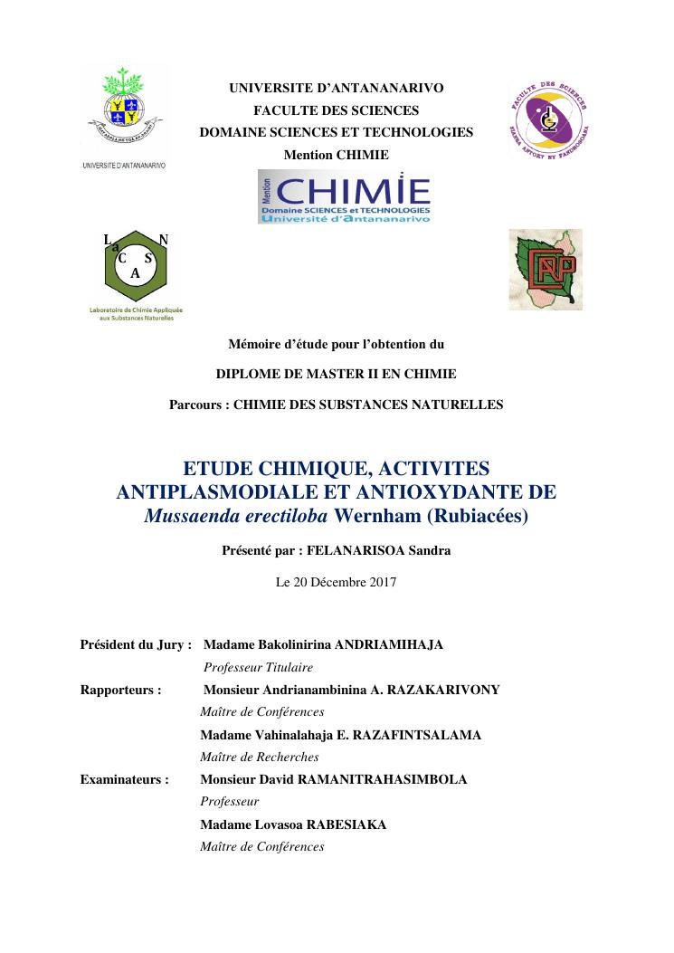 etude chimique, activites antiplasmodiale et antioxydante de mussaenda erectiloba wernham (rubiacées)
