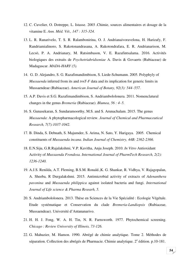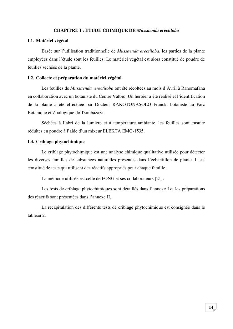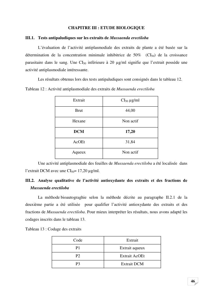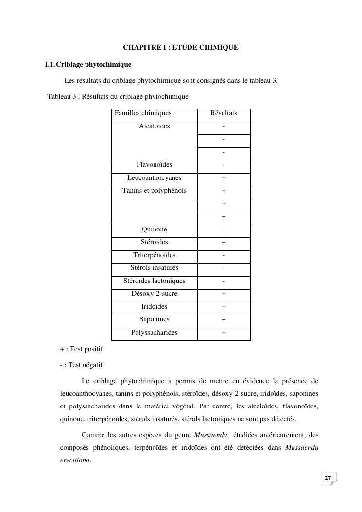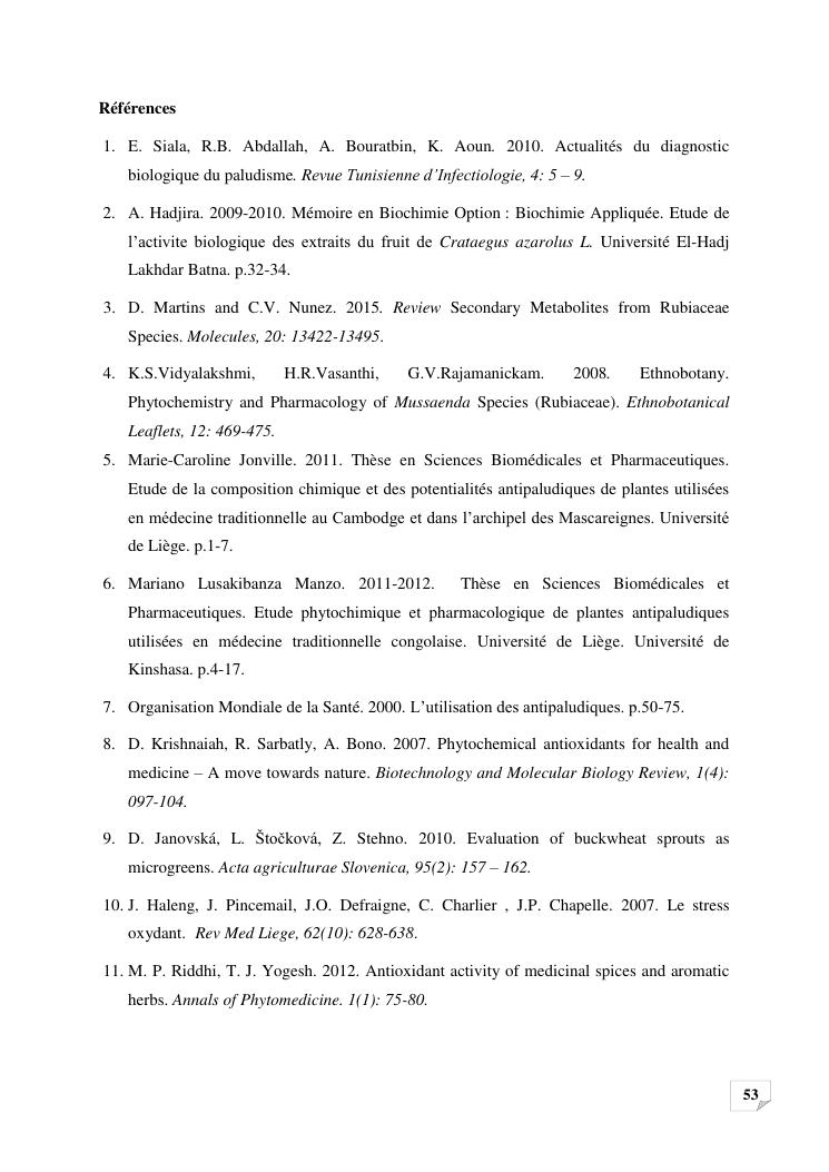 etude chimique, activites antiplasmodiale et antioxydante de mussaenda erectiloba wernham (rubiacées)