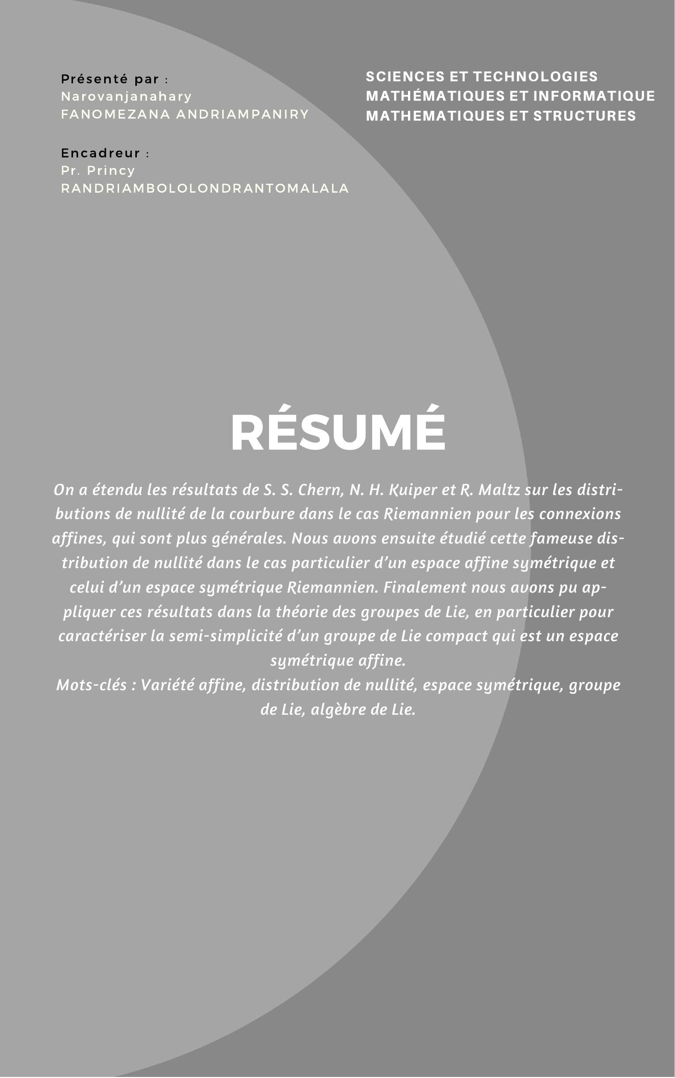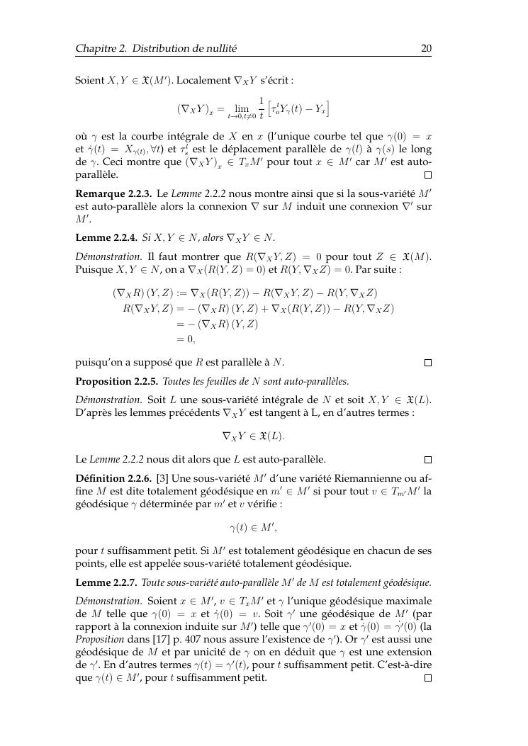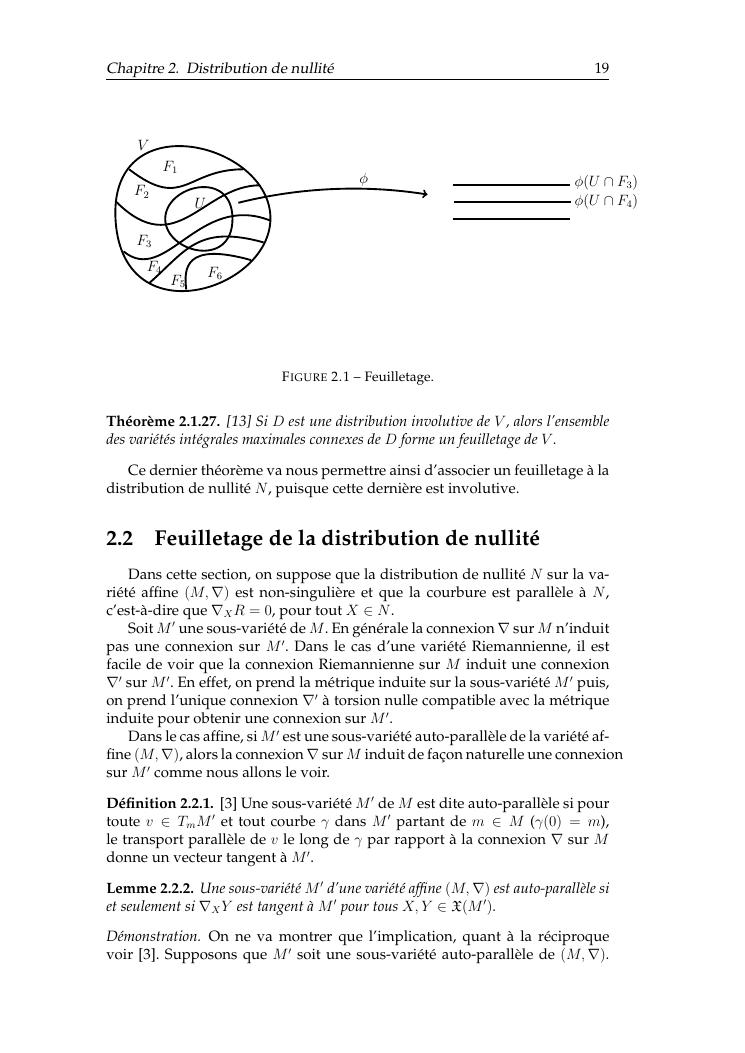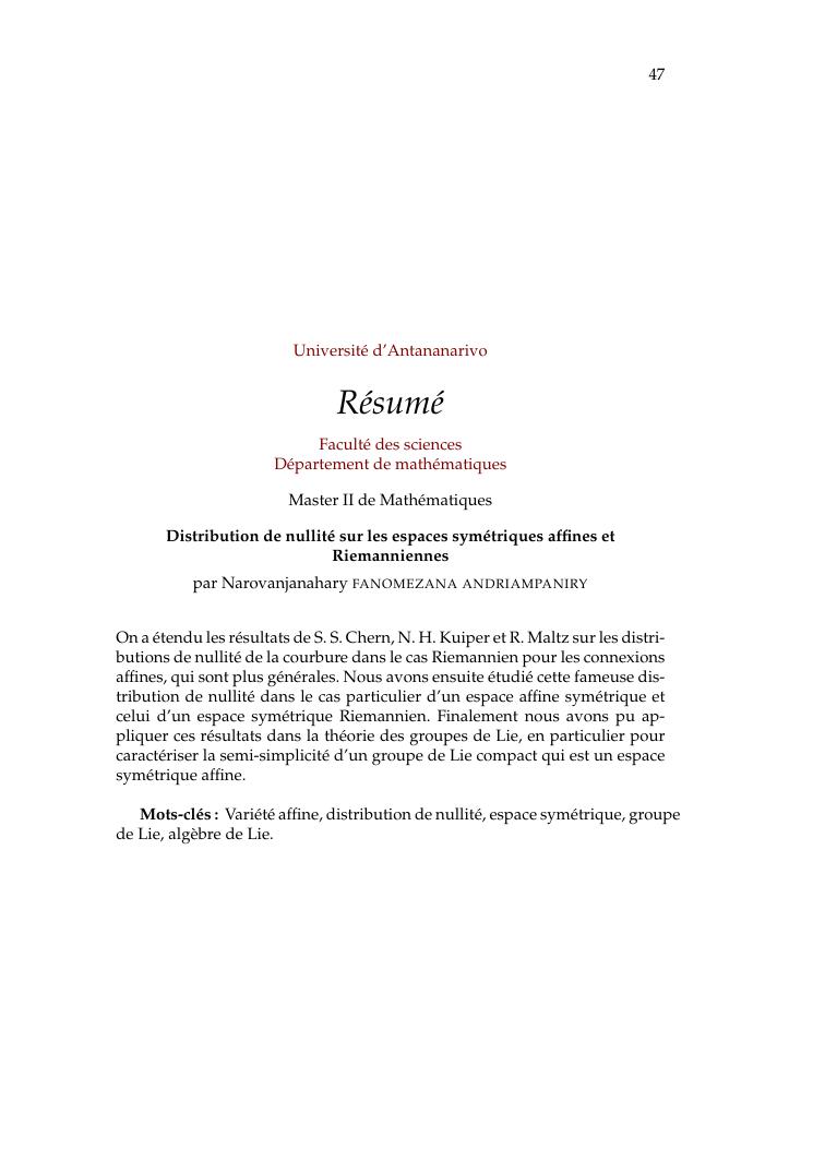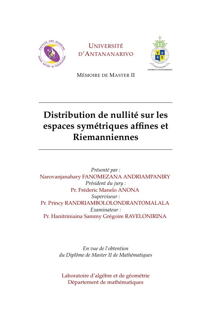 distribution de nullité sur les espaces symétriques affines et riemanniennes