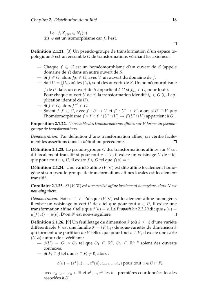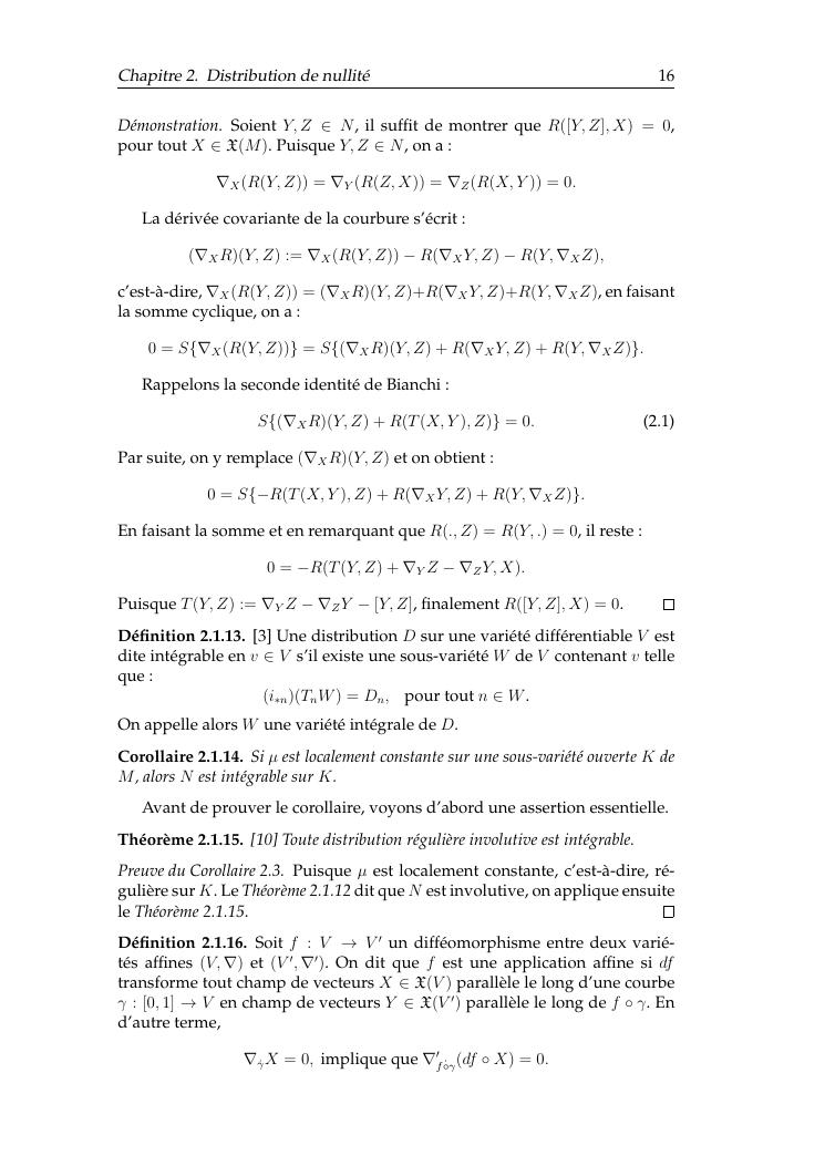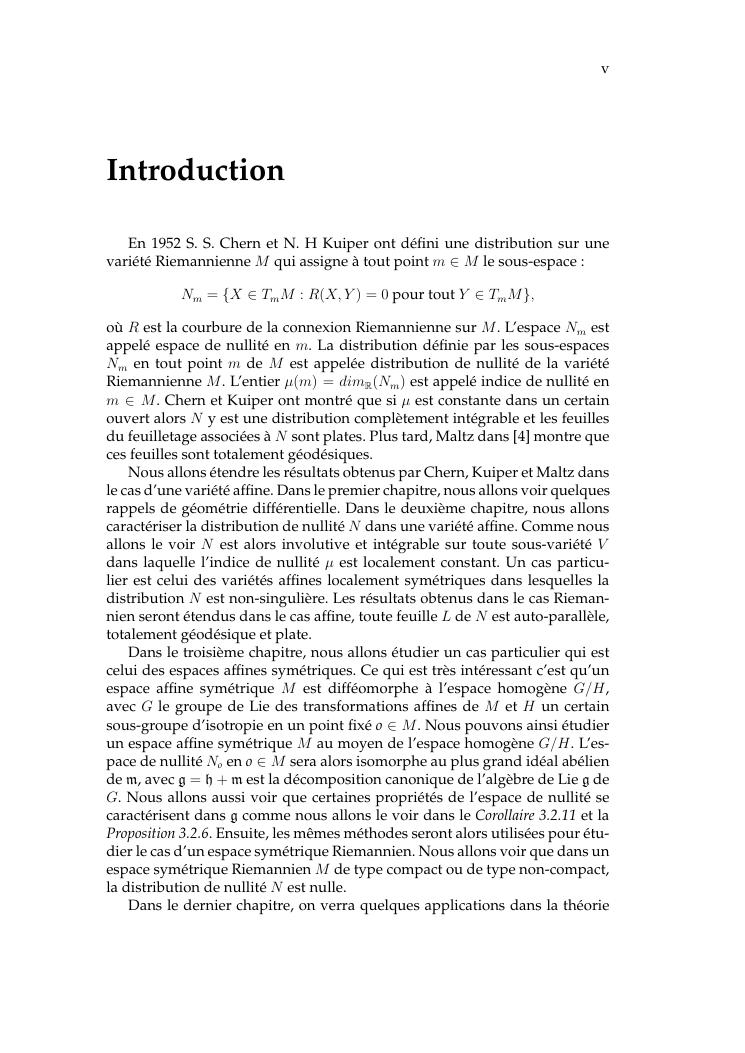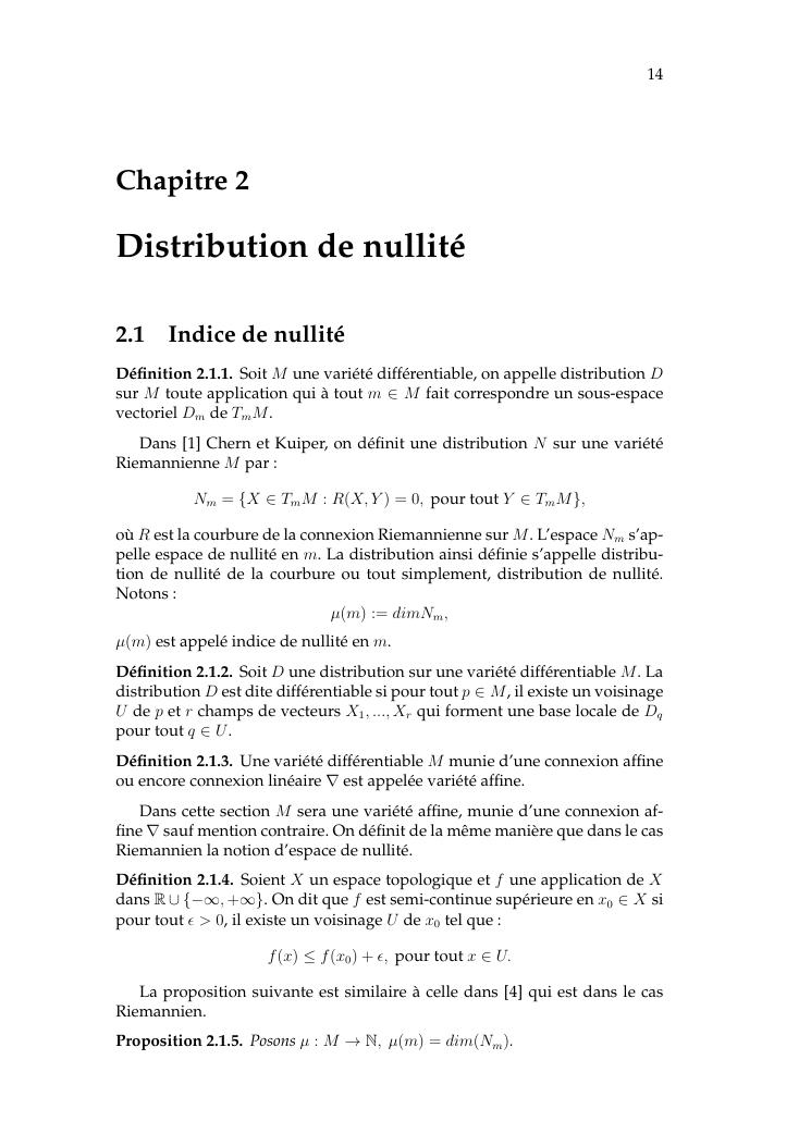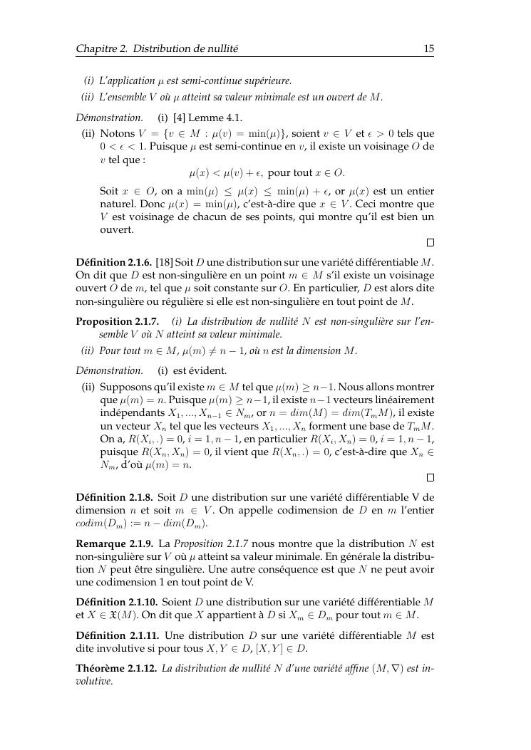 distribution de nullité sur les espaces symétriques affines et riemanniennes