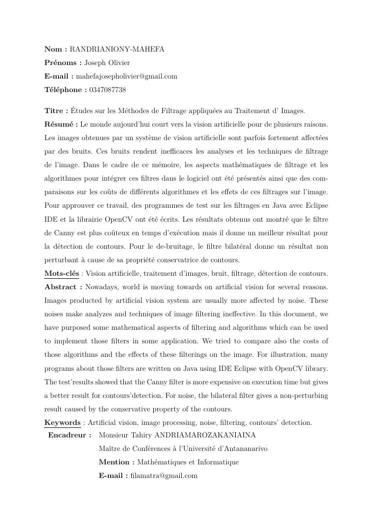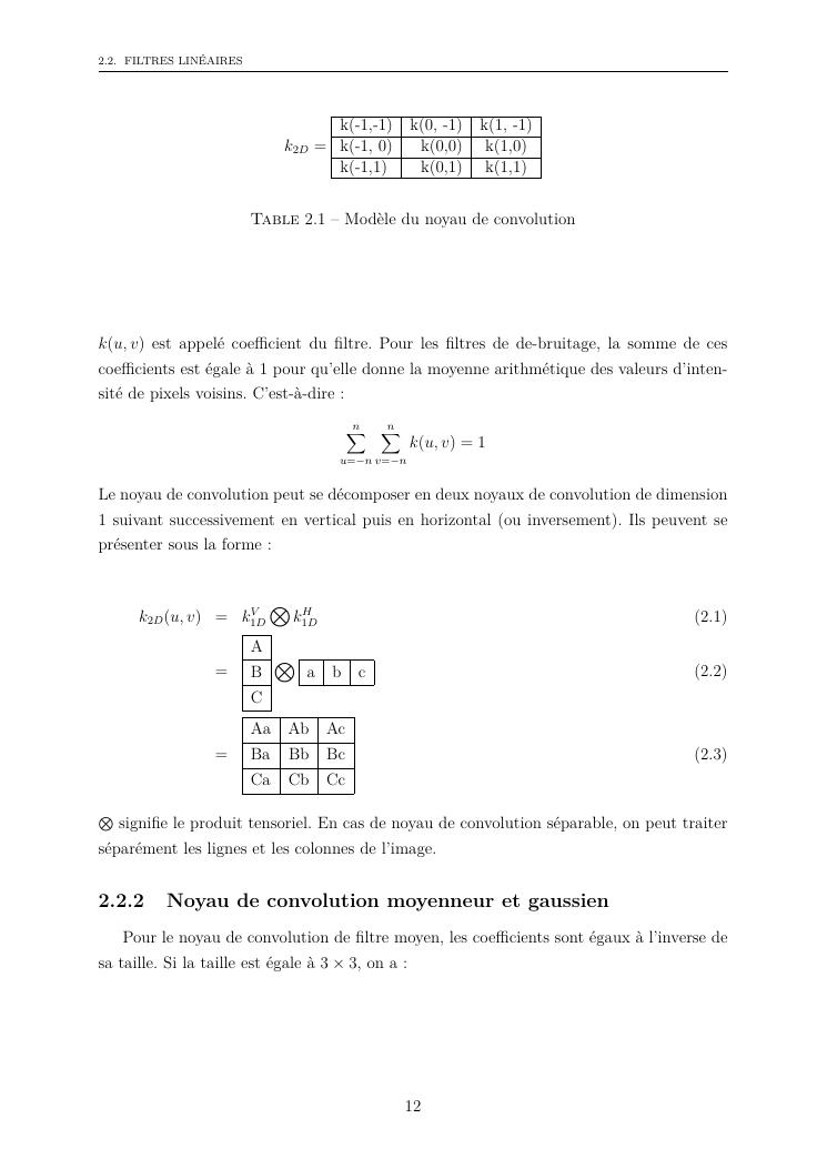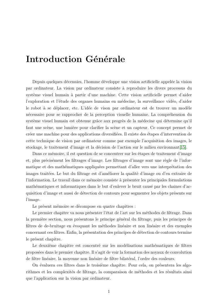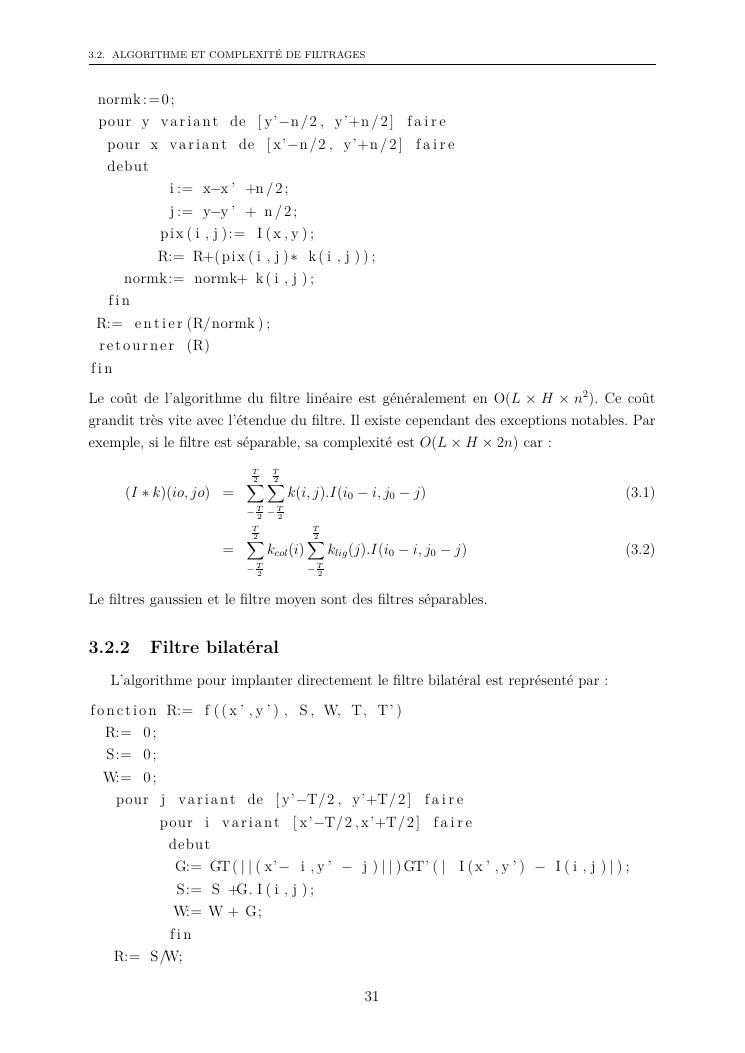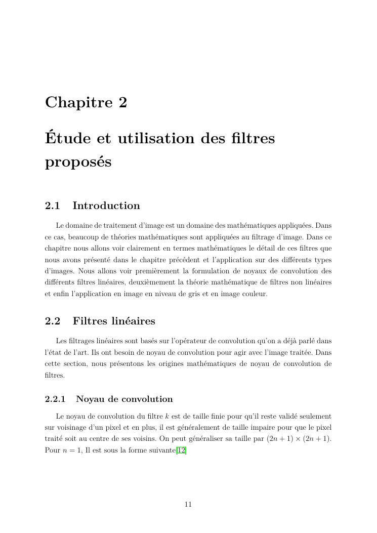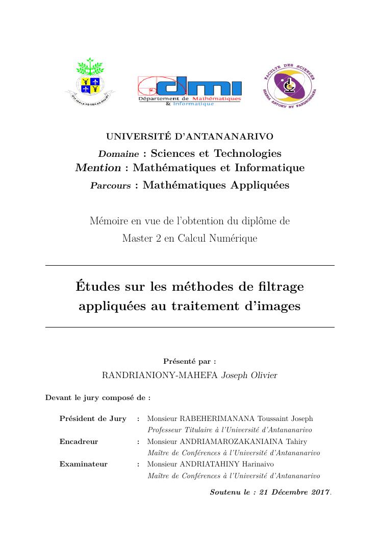 études sur les méthodes de filtrage appliquées au traitement d'images