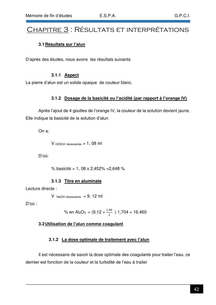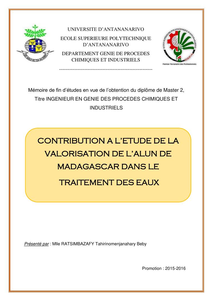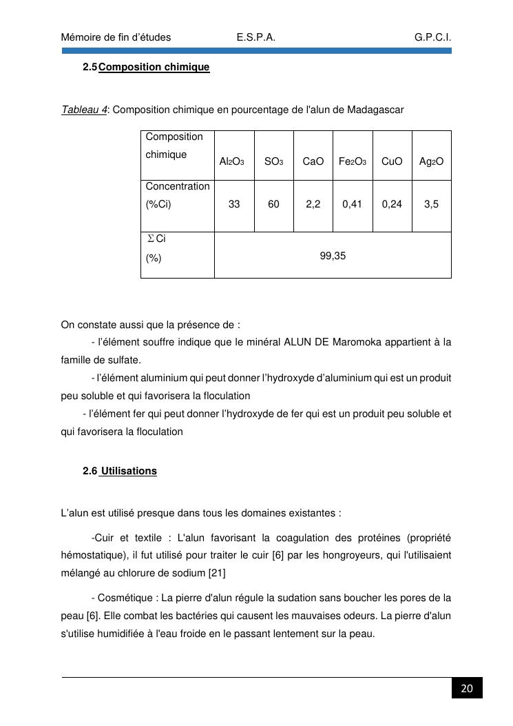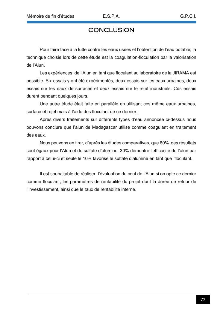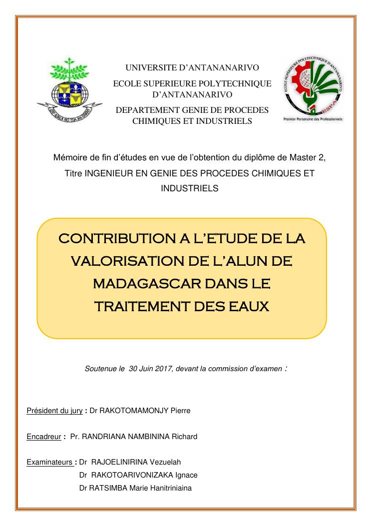 contribution a l'etude de la valorisation de l'alun de madagascar dans le traitement des eaux
