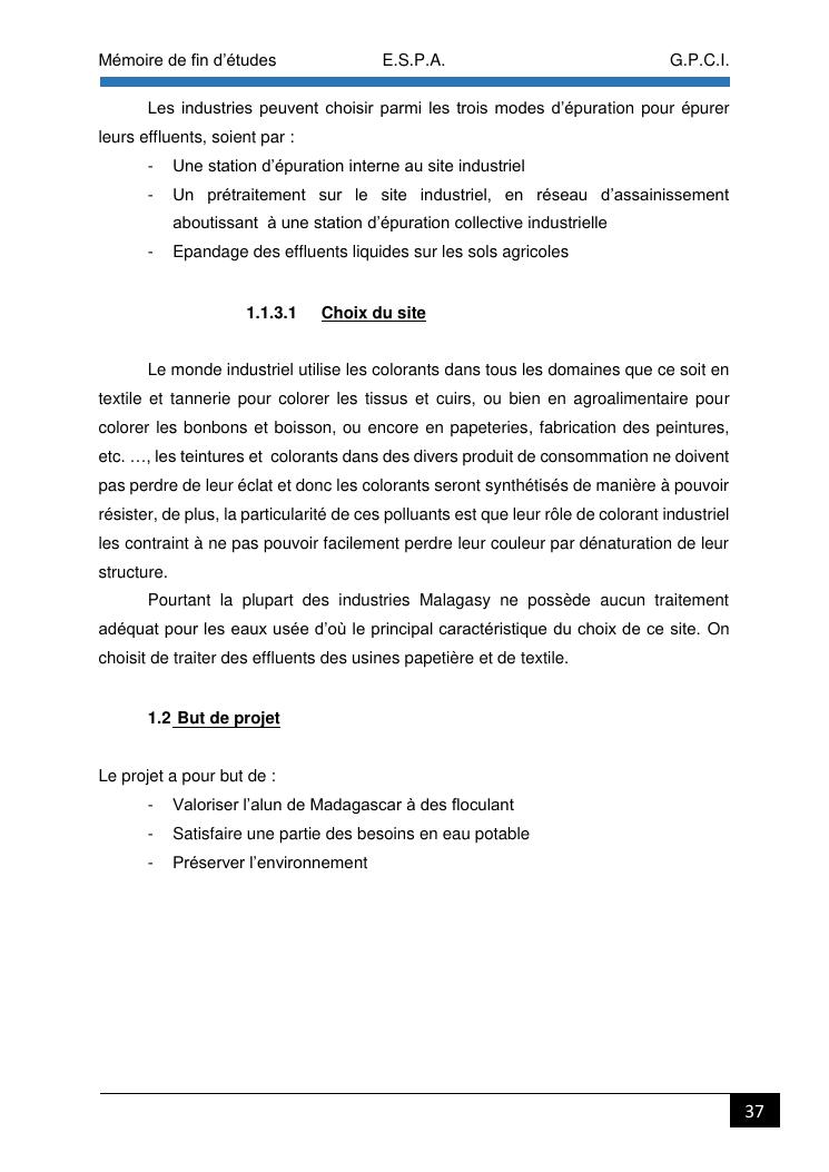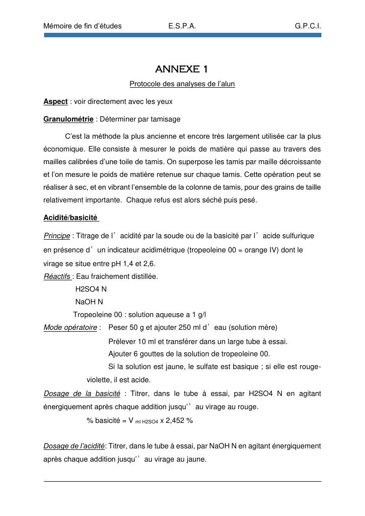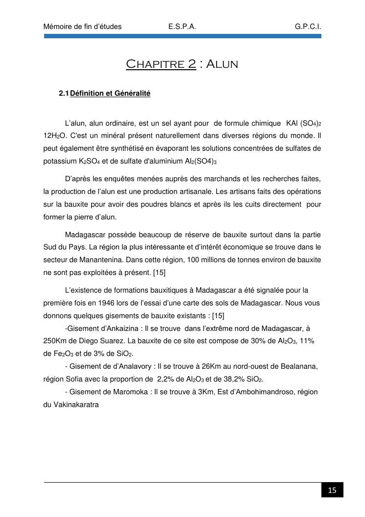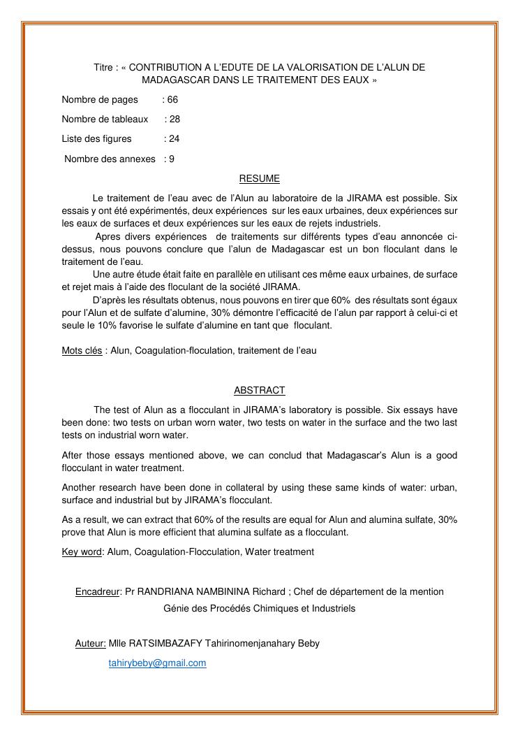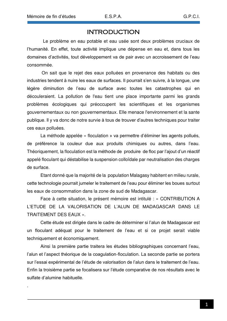 contribution a l'etude de la valorisation de l'alun de madagascar dans le traitement des eaux