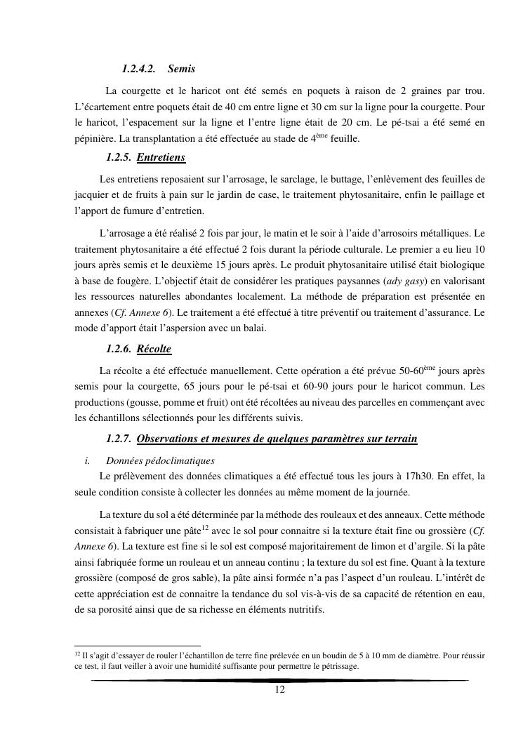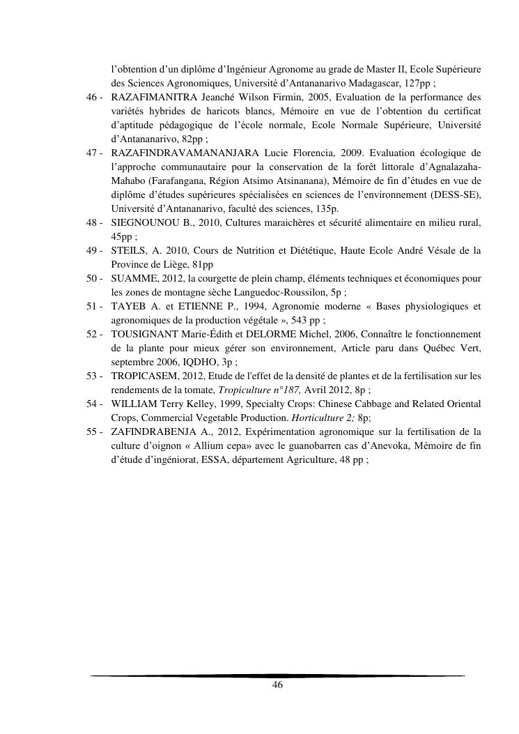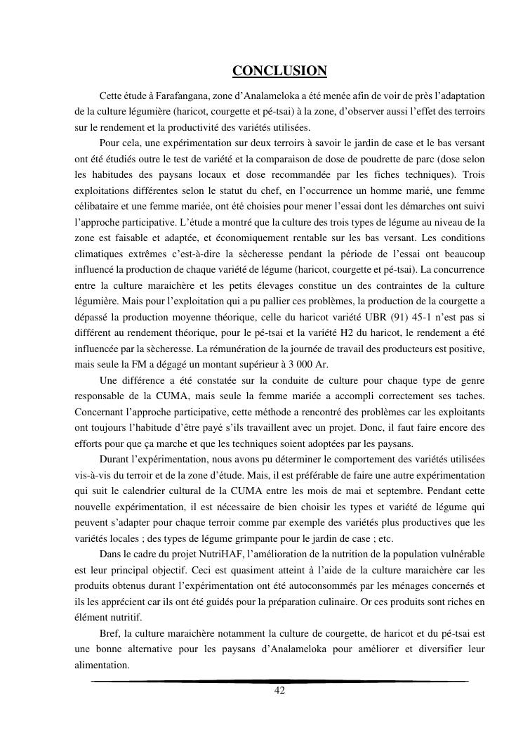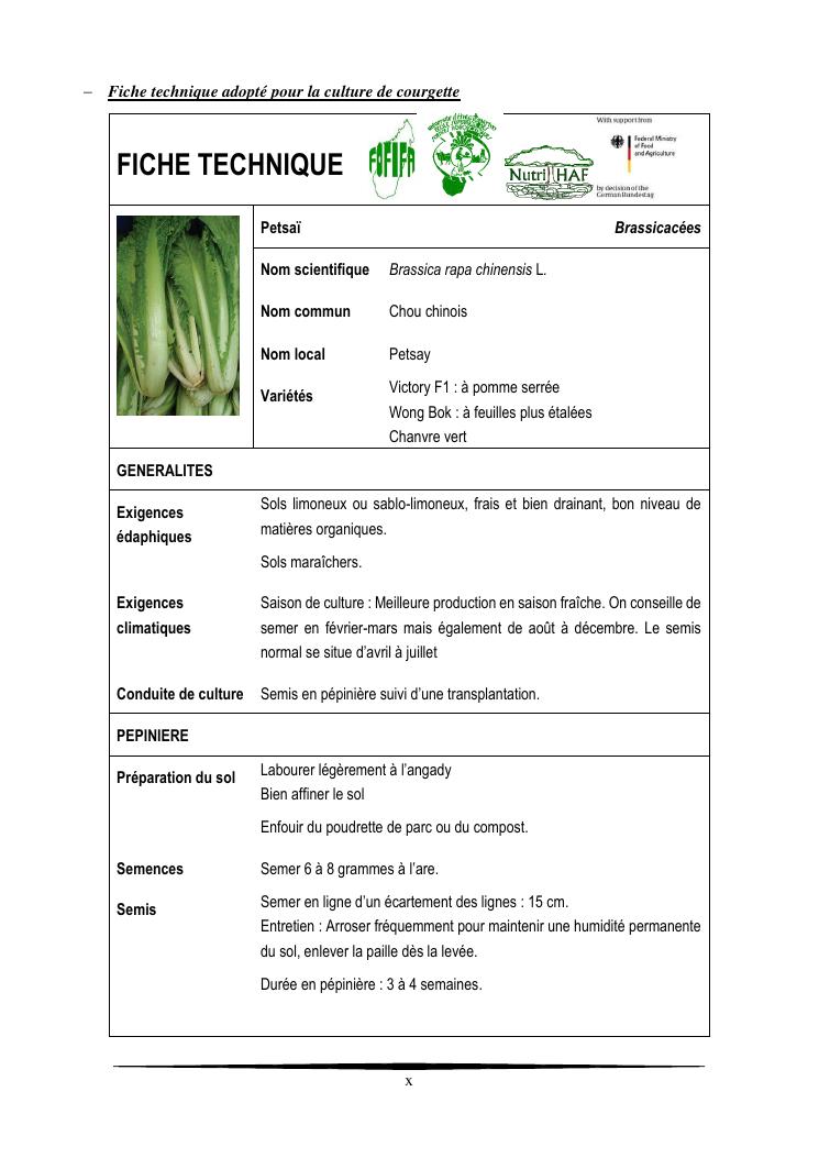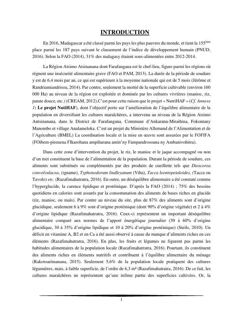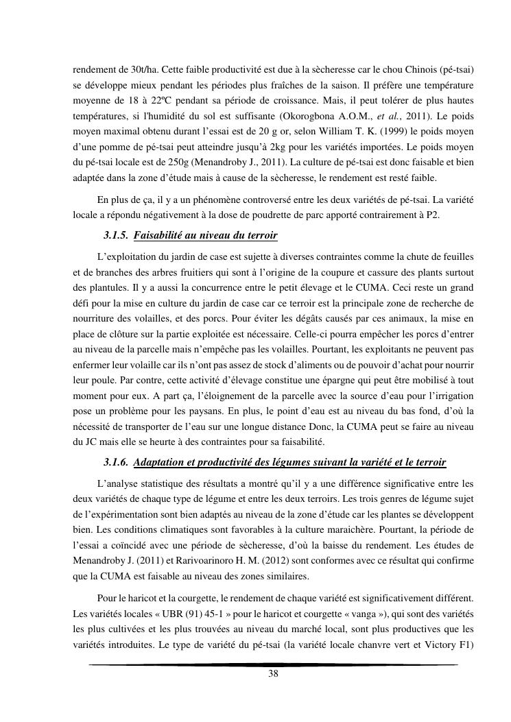 essais de diversification des cultures maraicheres : cas du pe-tsai, du haricot et de la courgette, dans le village d'analameloka, fokontany manombo, commune d'ankarana-miraihina, région sud-est
