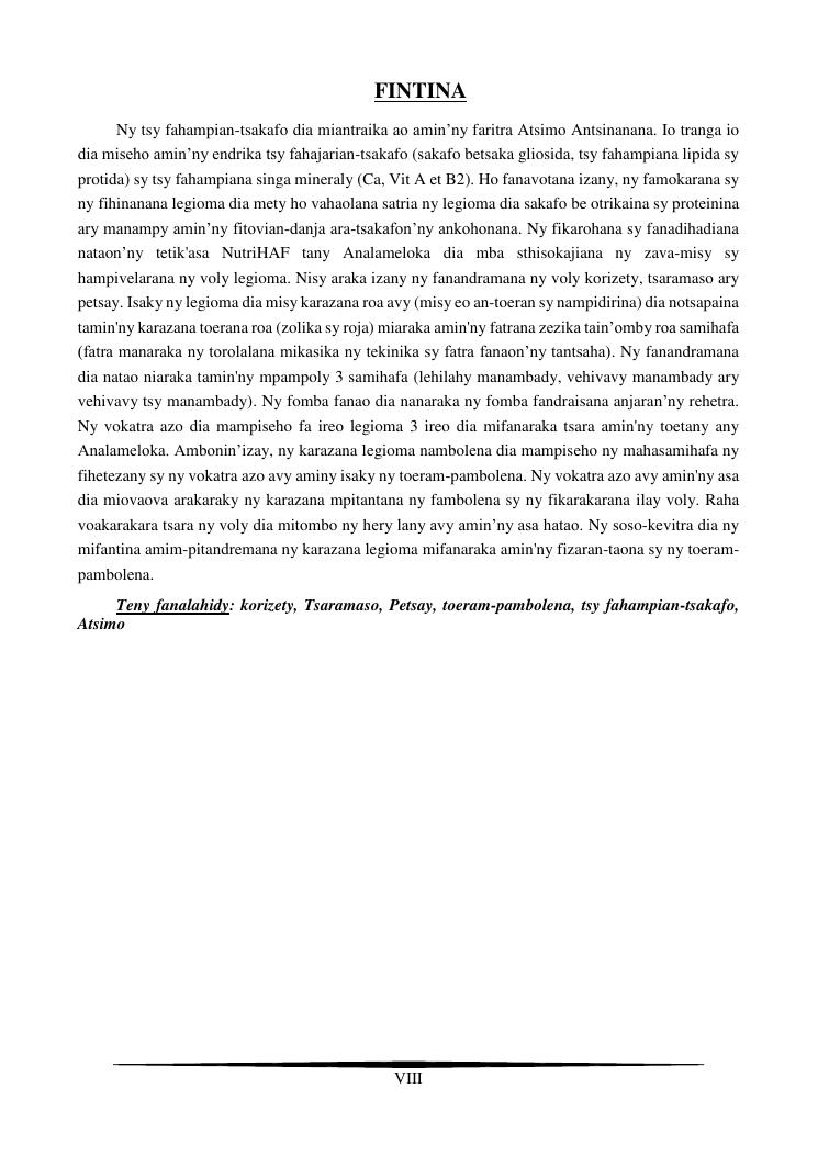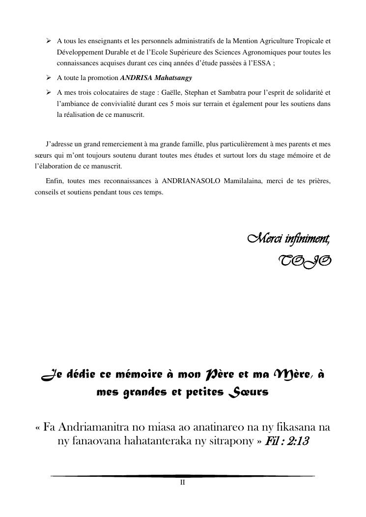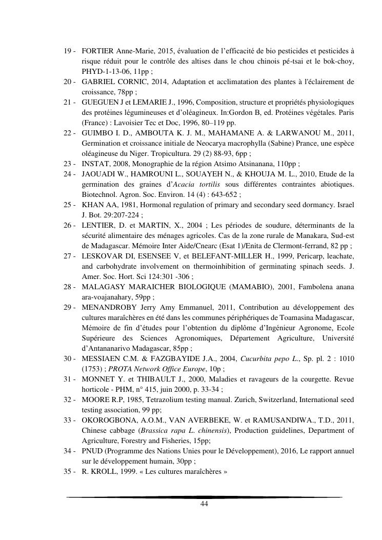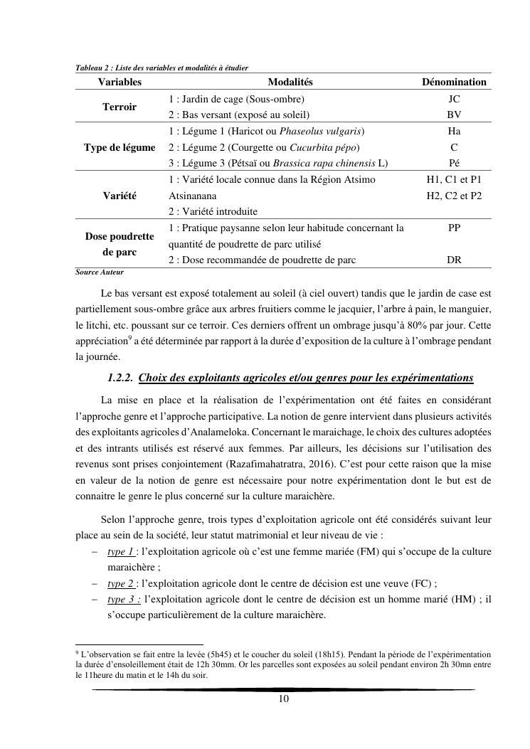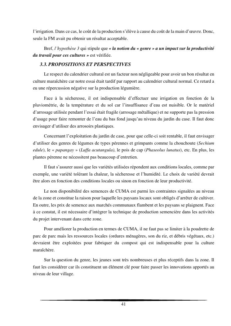 essais de diversification des cultures maraicheres : cas du pe-tsai, du haricot et de la courgette, dans le village d'analameloka, fokontany manombo, commune d'ankarana-miraihina, région sud-est