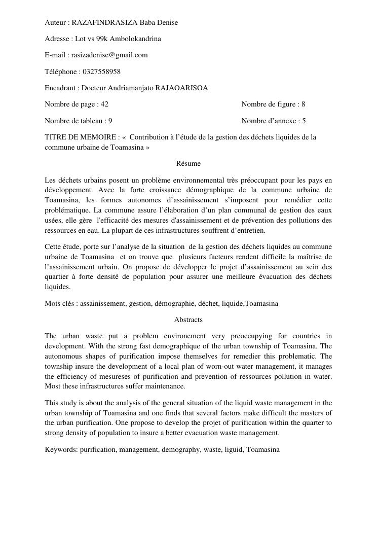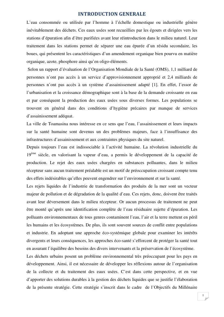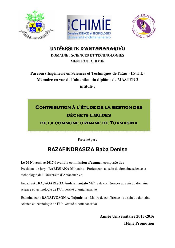 contribution à l'étude de la gestion des déchets liquides de la commune urbaine de toamasina
