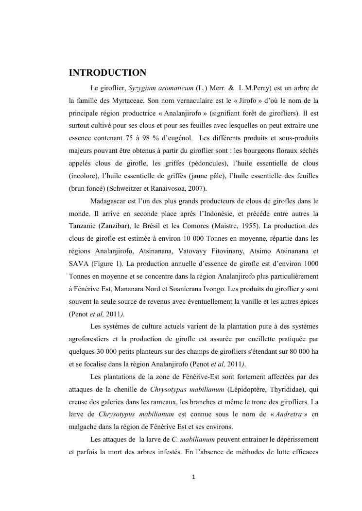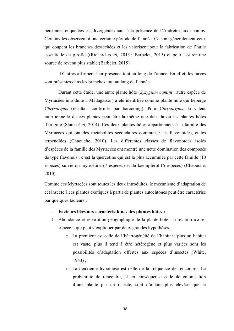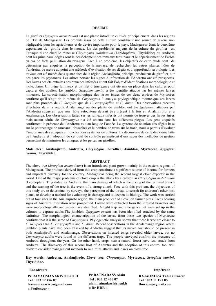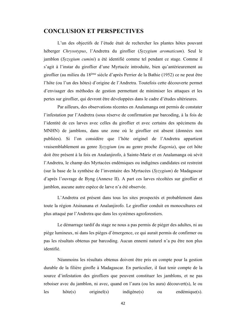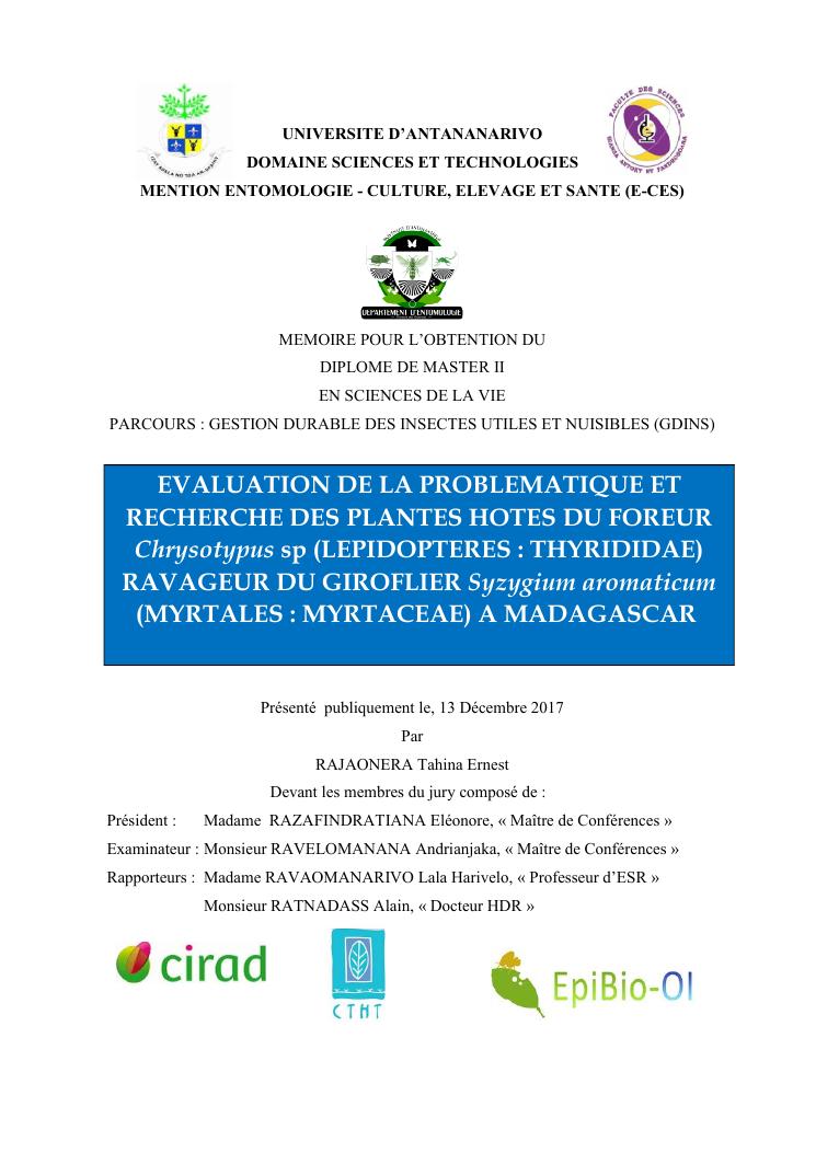 evaluation de la problematique et recherche des plantes hotes du foreur chrysotypus sp (lepidopteres : thyrididae) ravageur du giroflier syzygium aromaticum (myrtales : myrtaceae) a madagascar