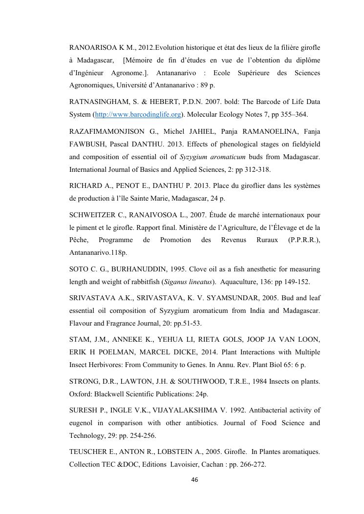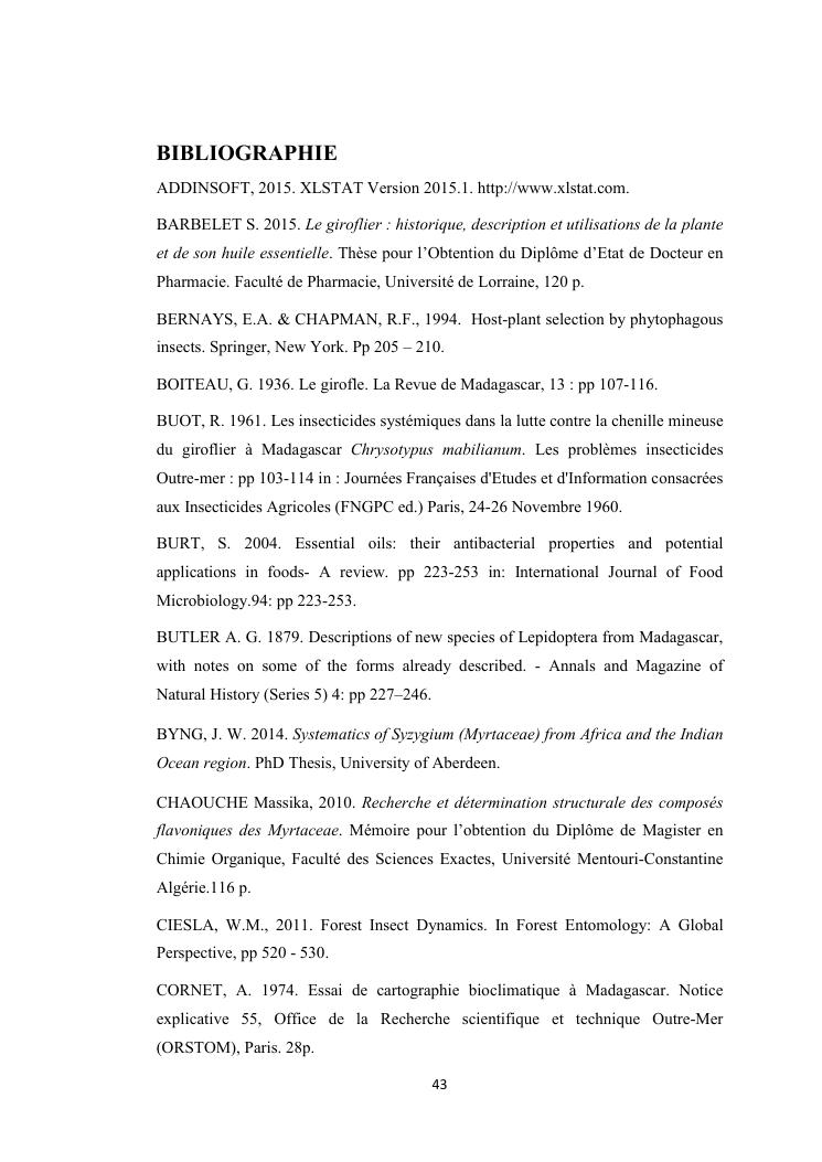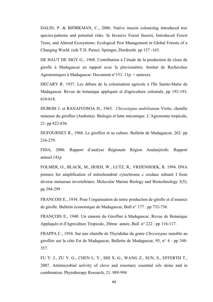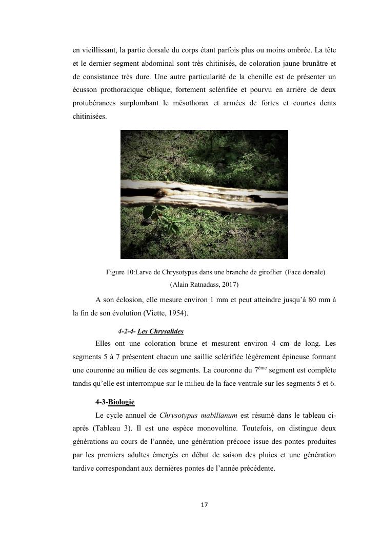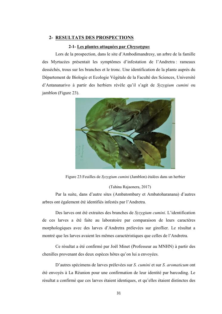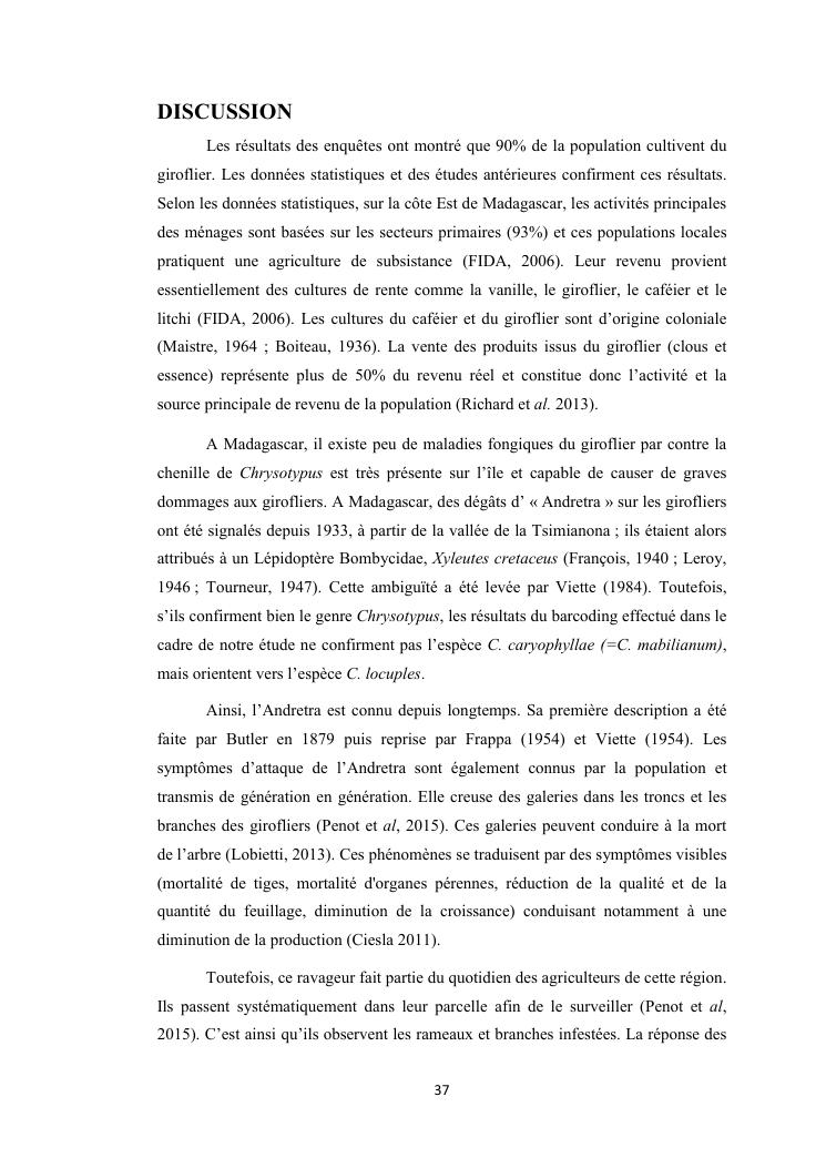 evaluation de la problematique et recherche des plantes hotes du foreur chrysotypus sp (lepidopteres : thyrididae) ravageur du giroflier syzygium aromaticum (myrtales : myrtaceae) a madagascar