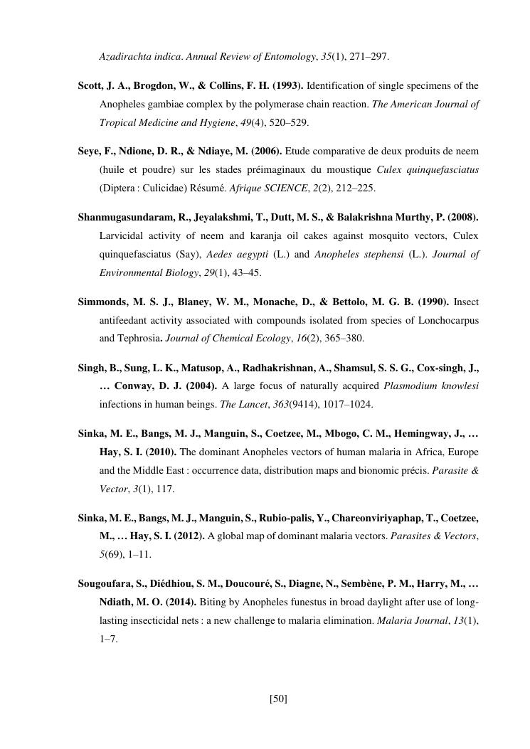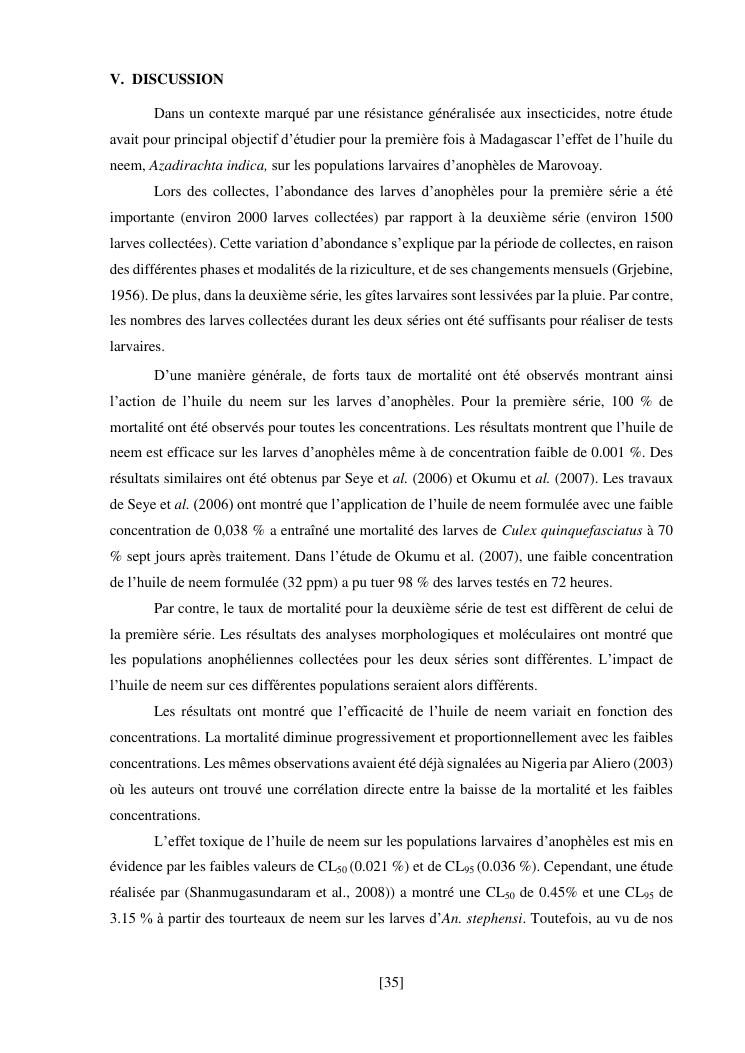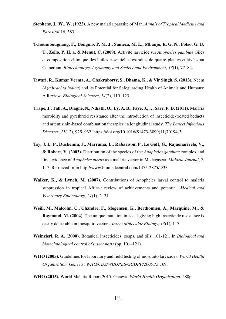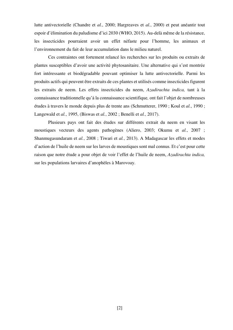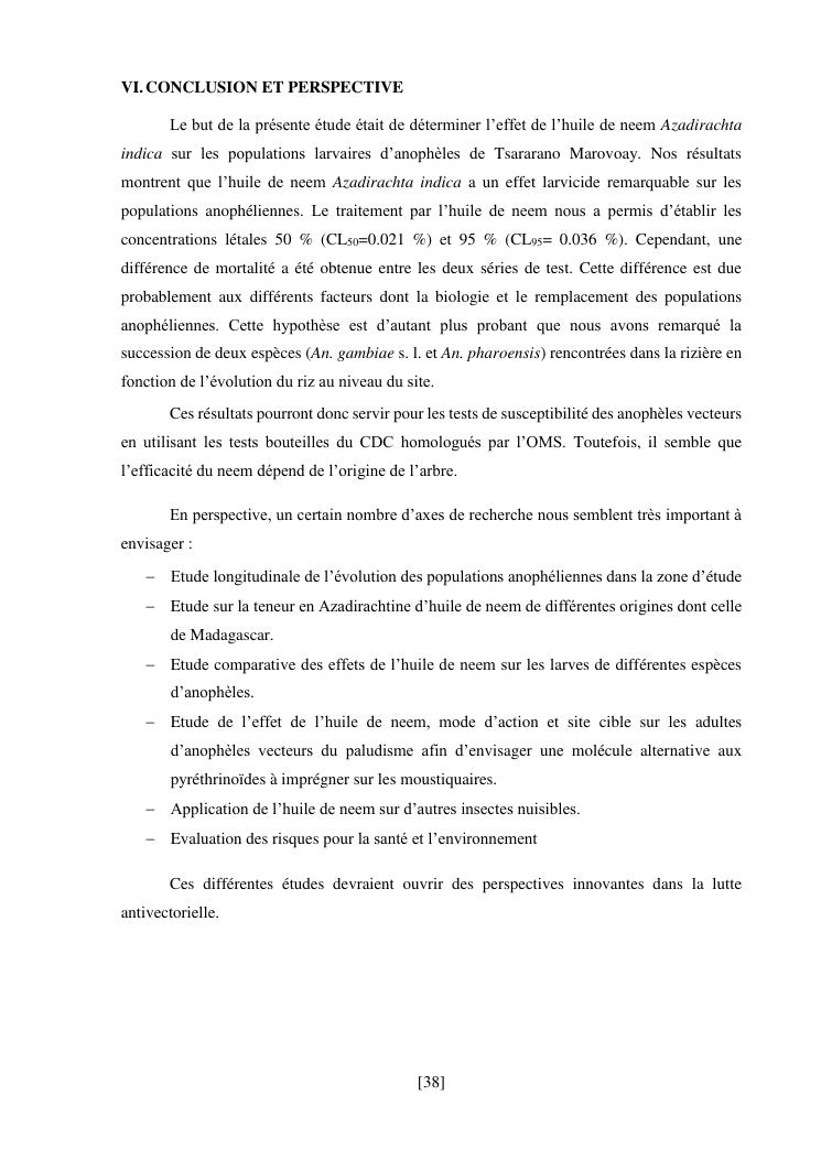 effet de l'huile de neem (azadirachta indica) sur les populations larvaires d'anophèles de tsararano marovoay, madagascar