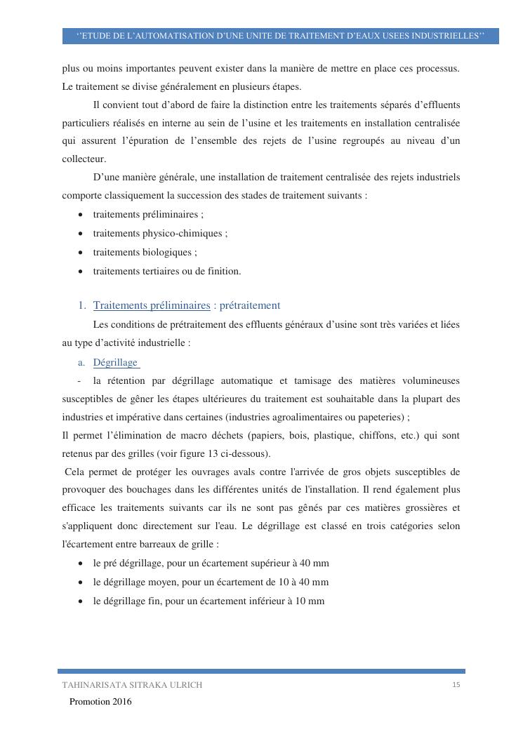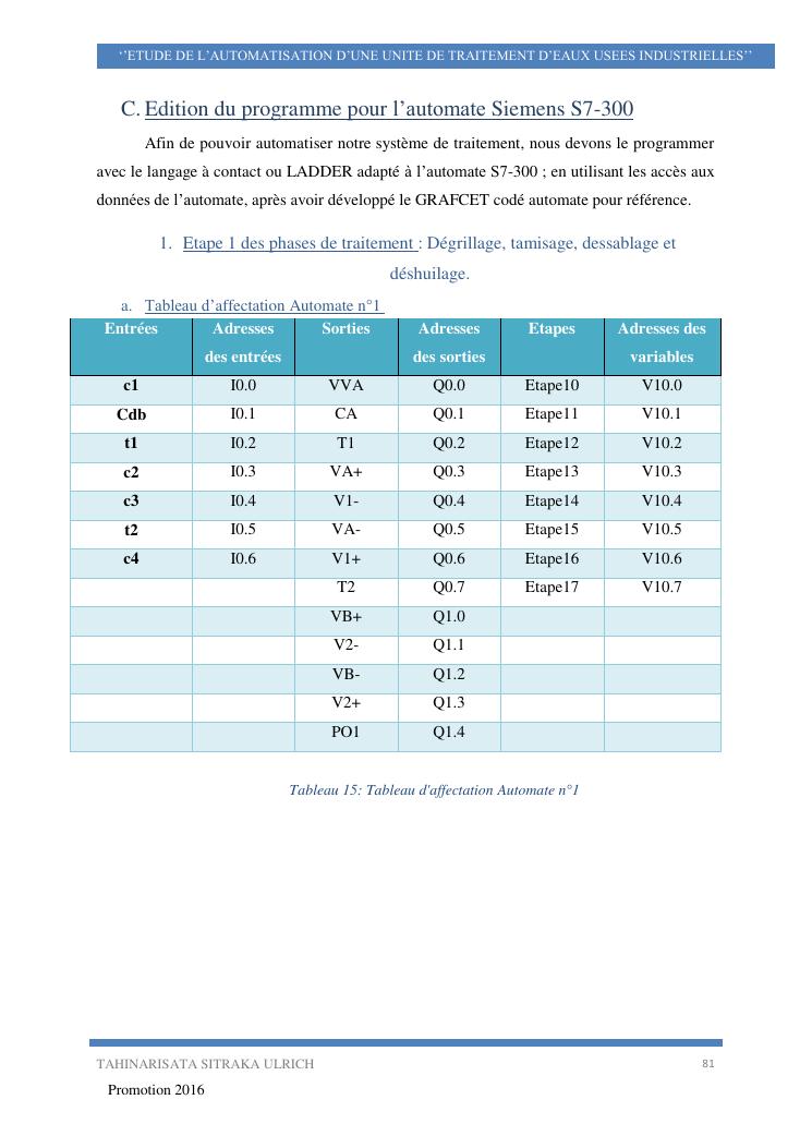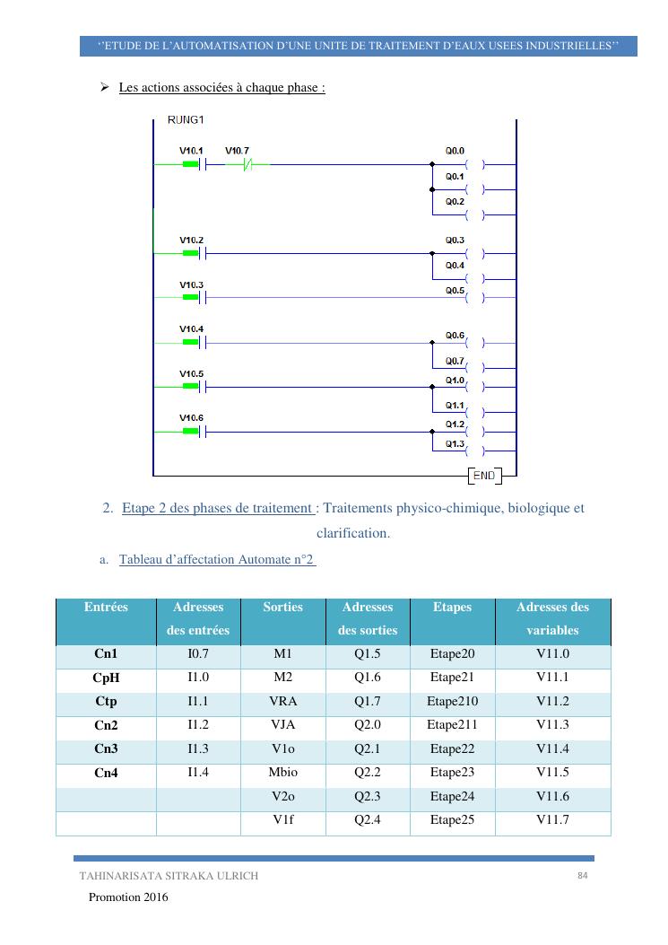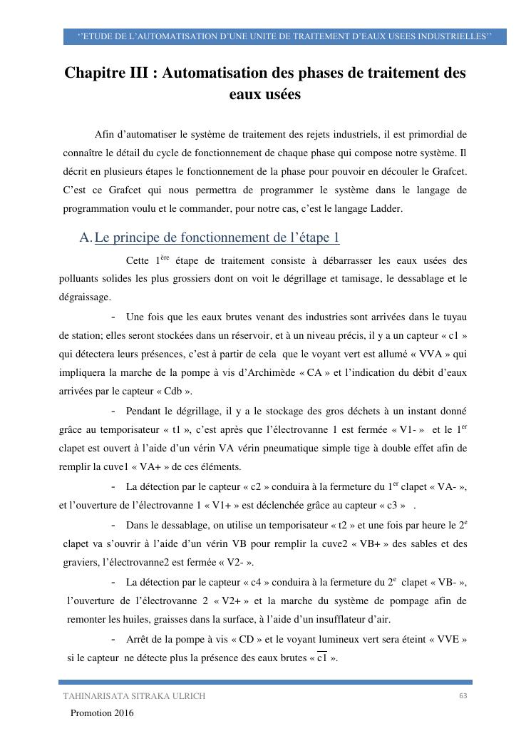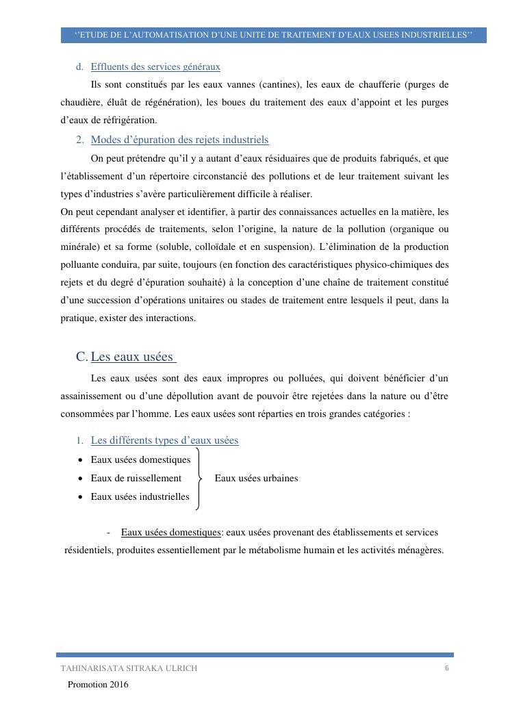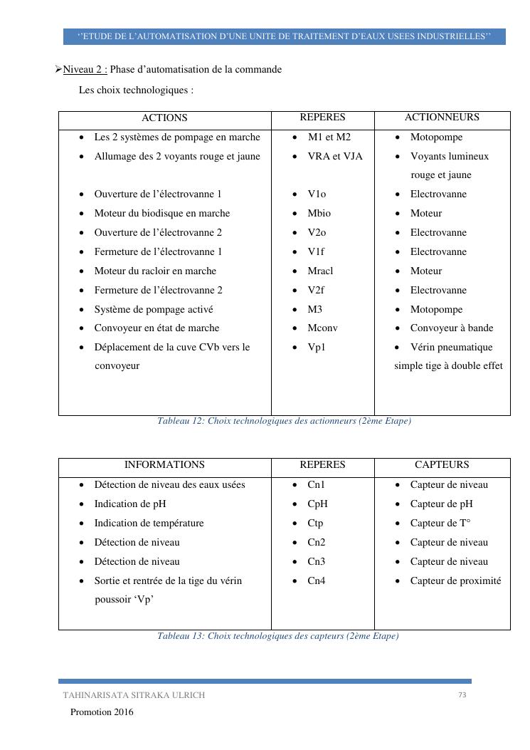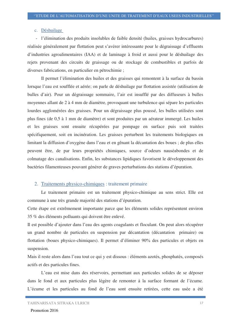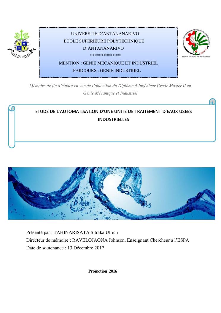 etude de l'automatisation d'une unite de traitement d'eaux usees industrielles
