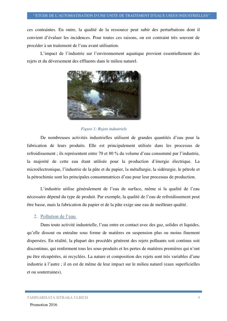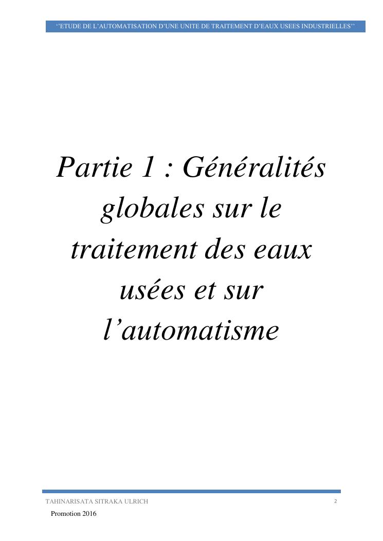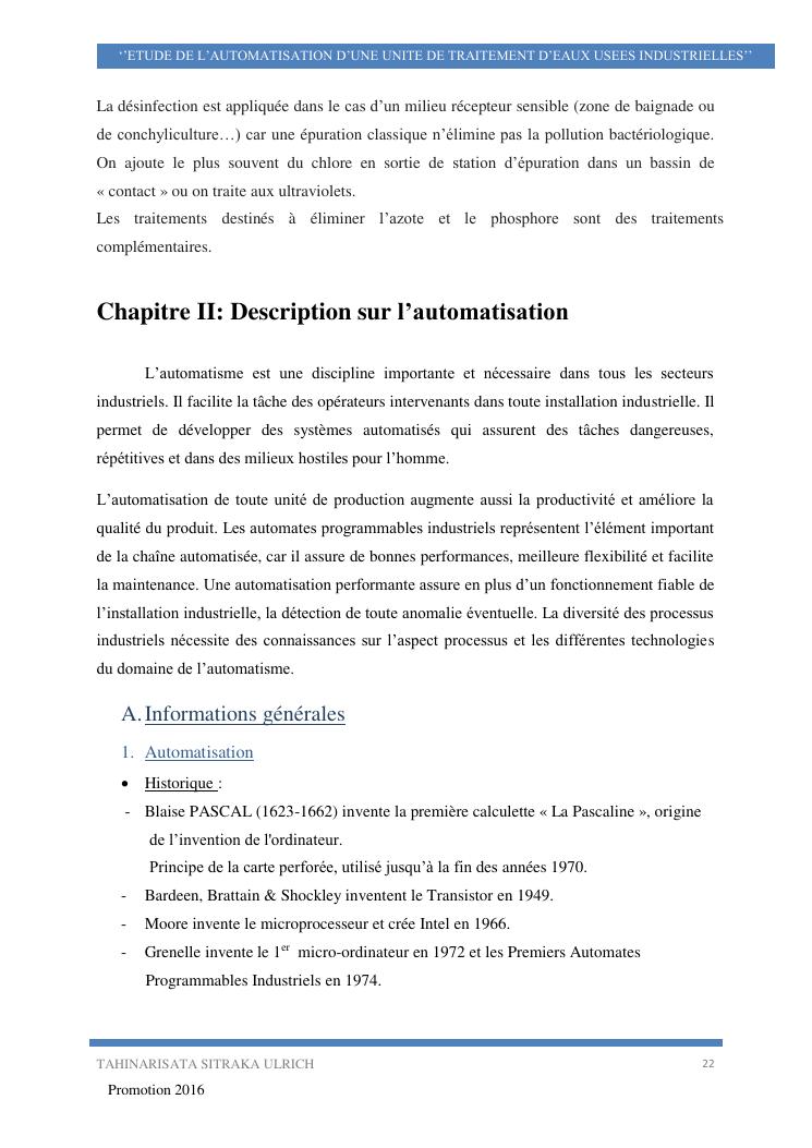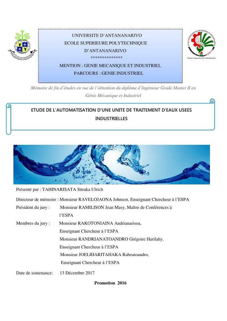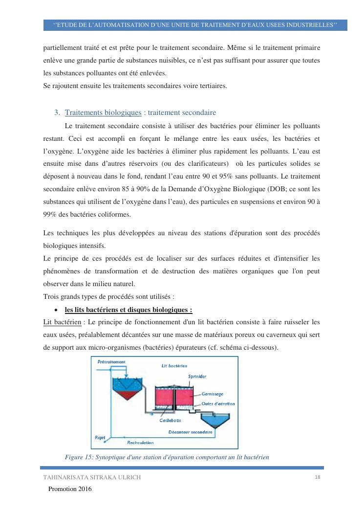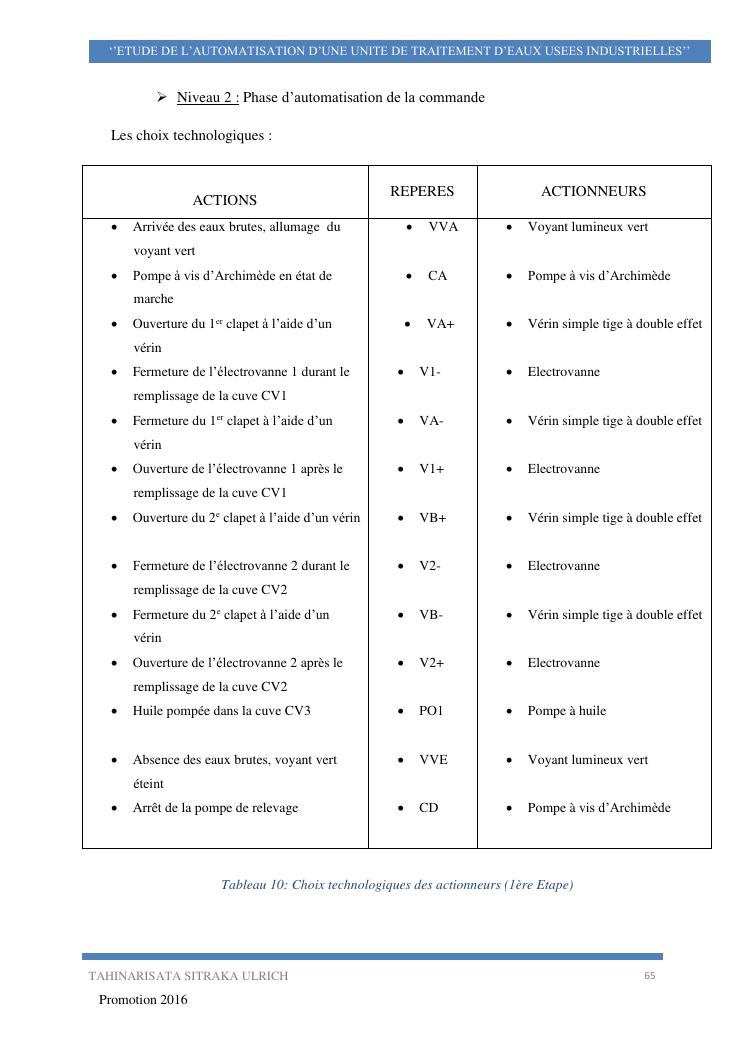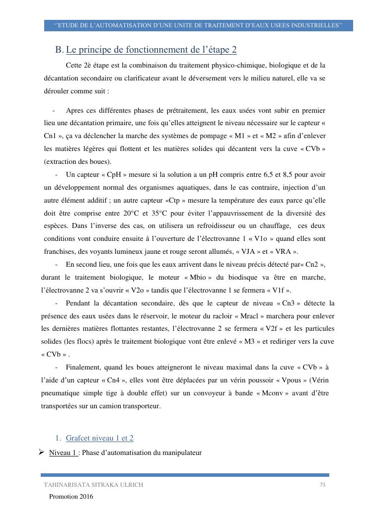etude de l'automatisation d'une unite de traitement d'eaux usees industrielles