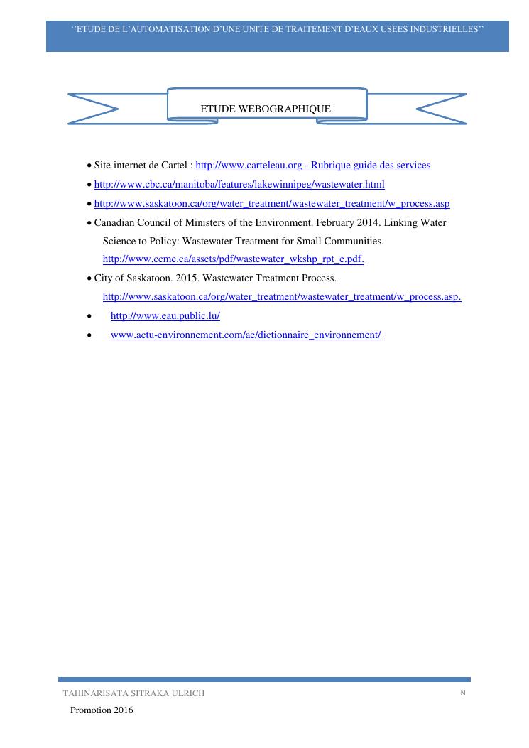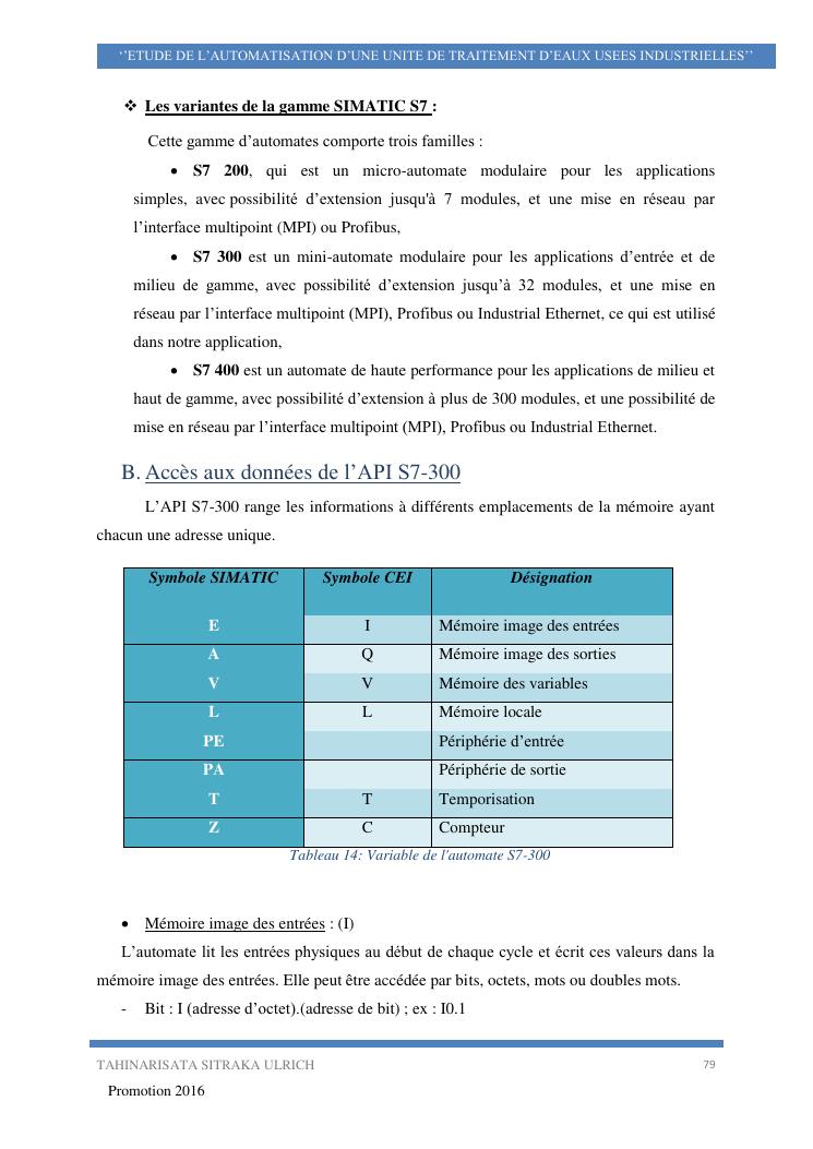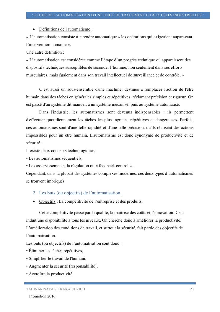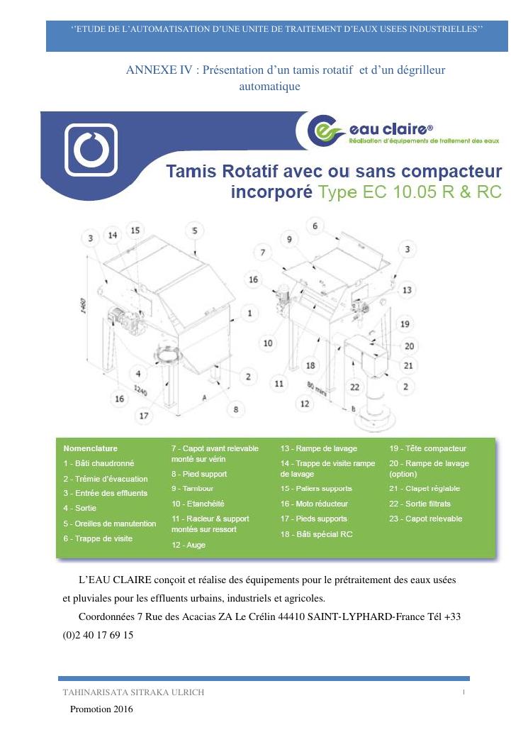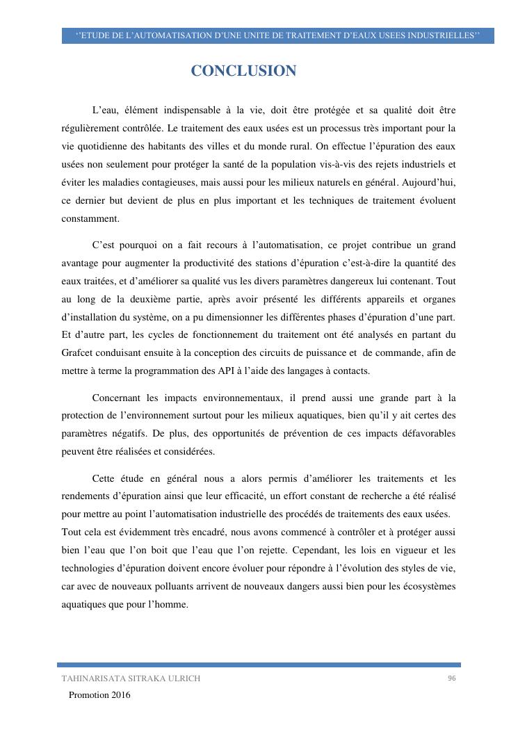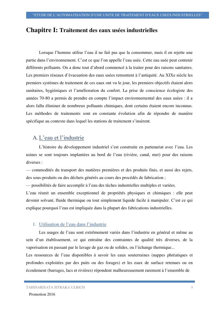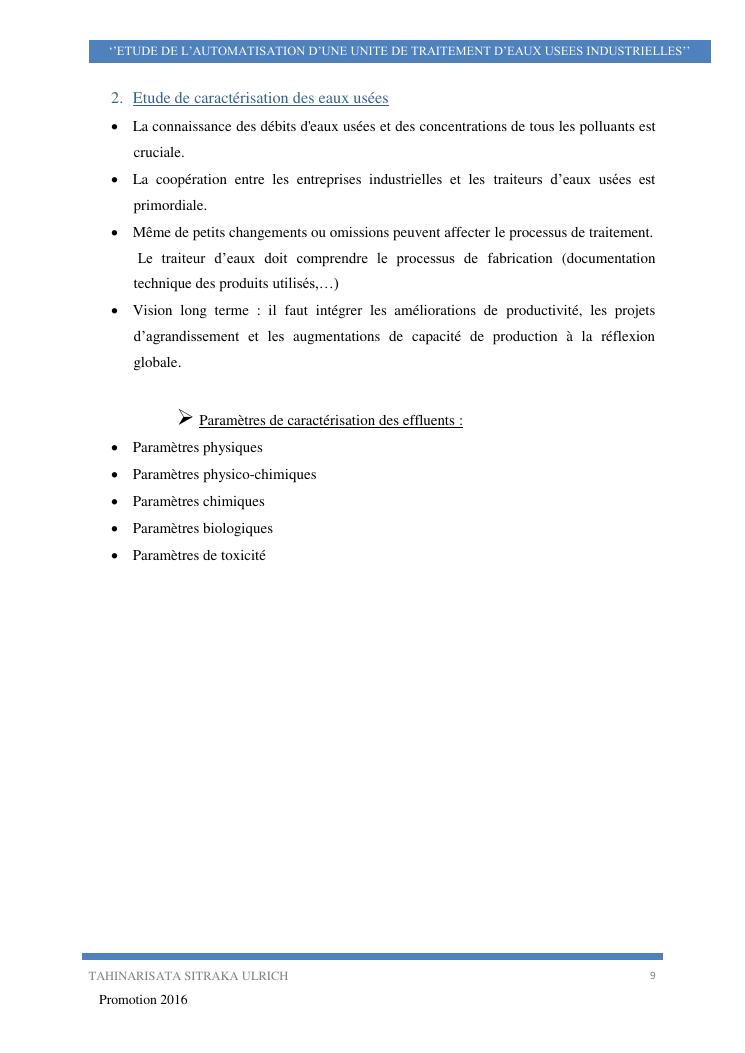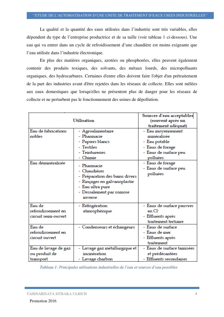 etude de l'automatisation d'une unite de traitement d'eaux usees industrielles