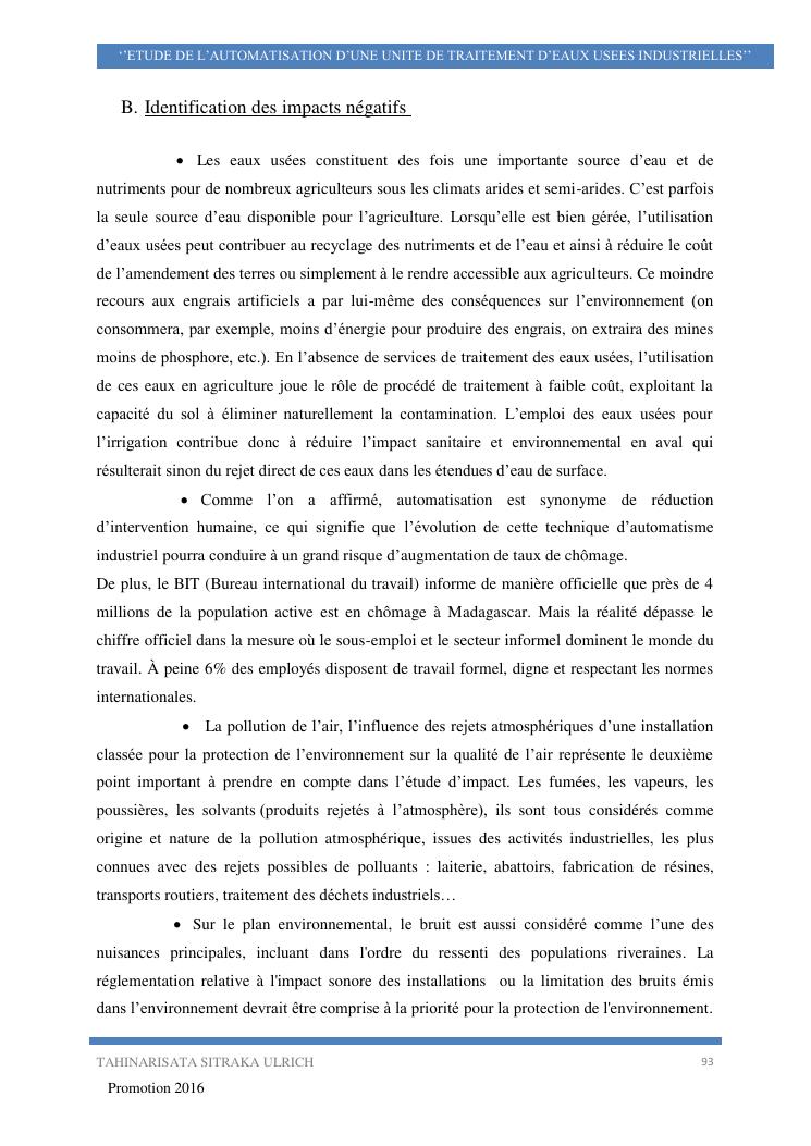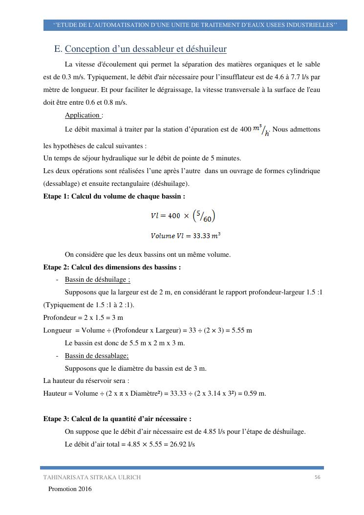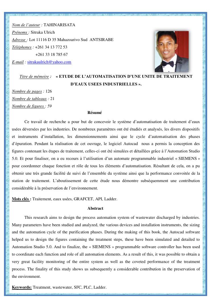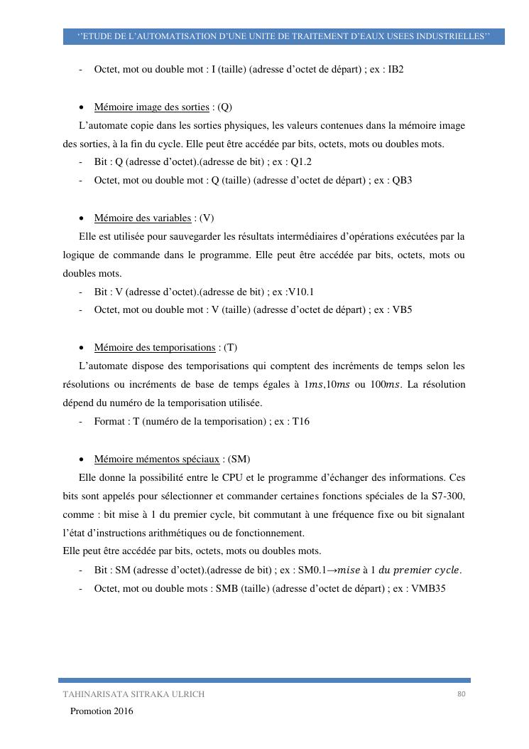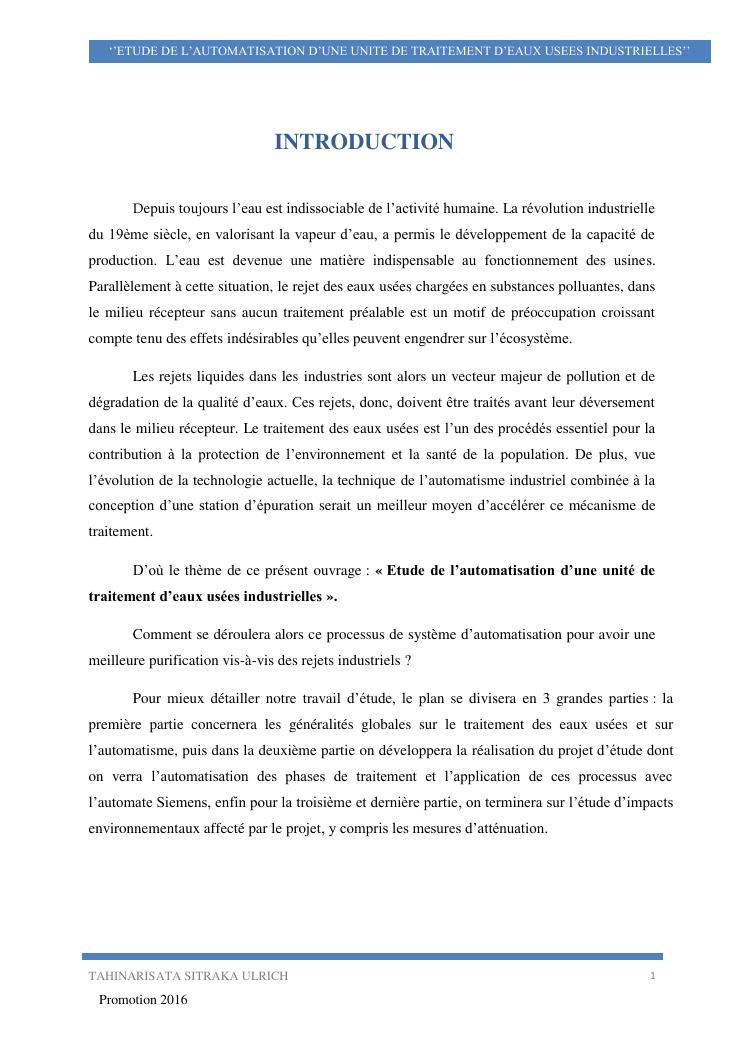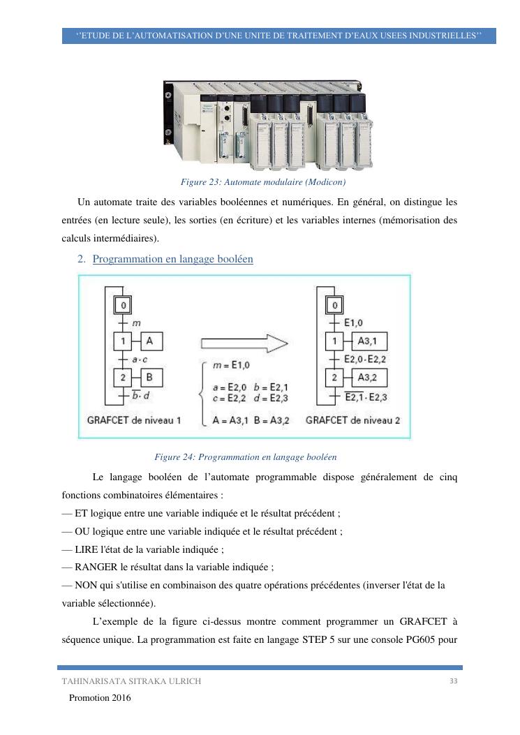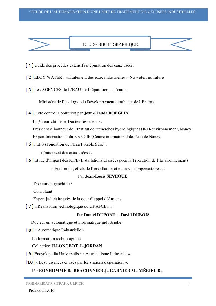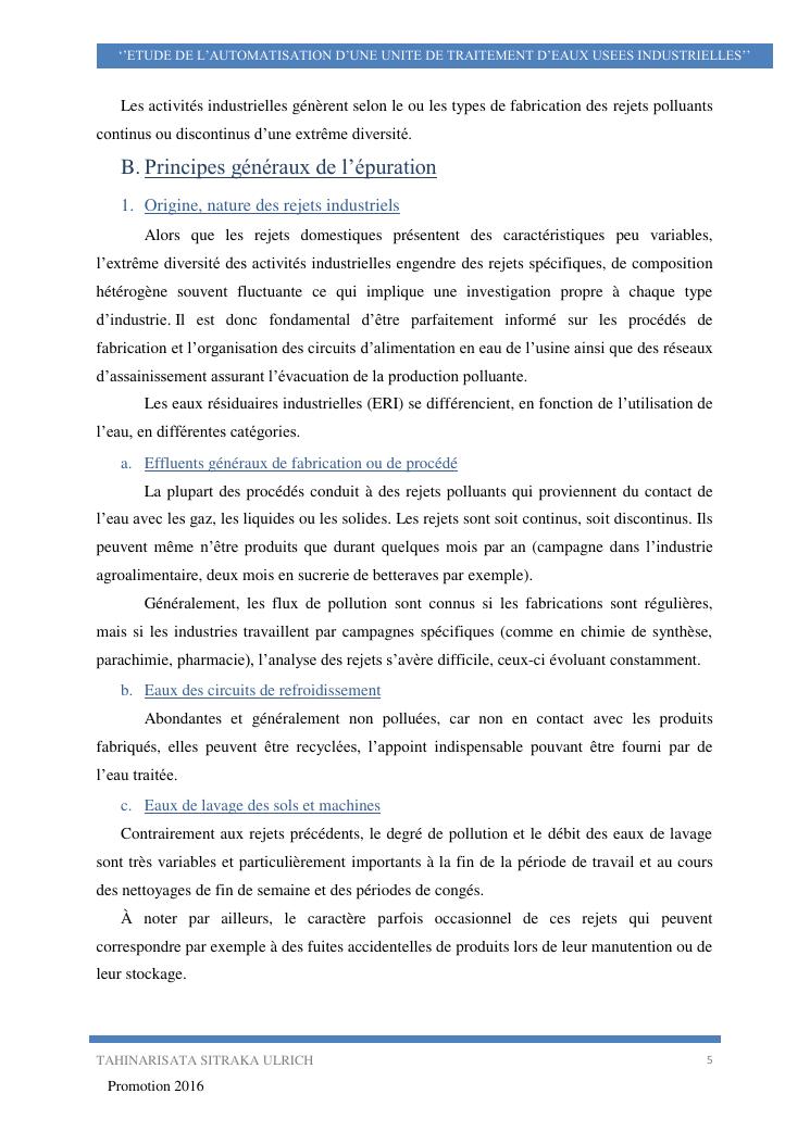 etude de l'automatisation d'une unite de traitement d'eaux usees industrielles