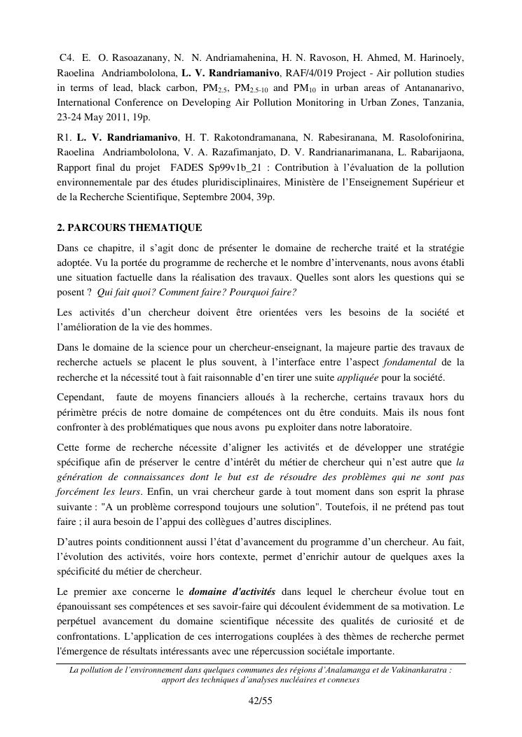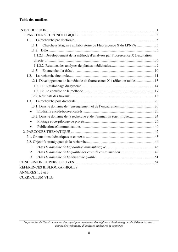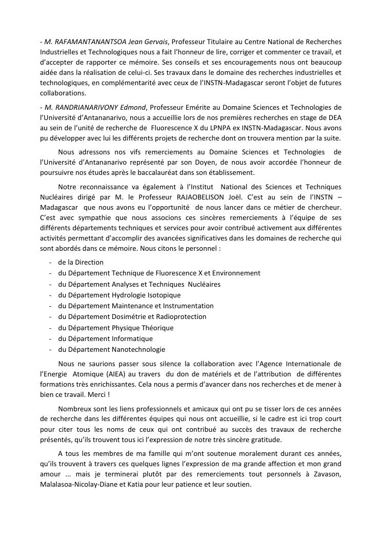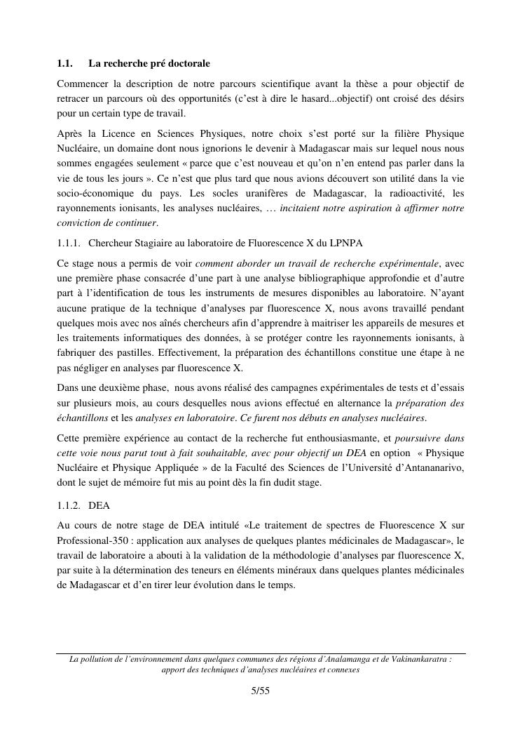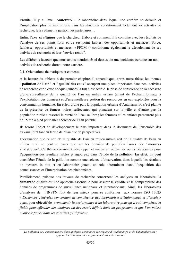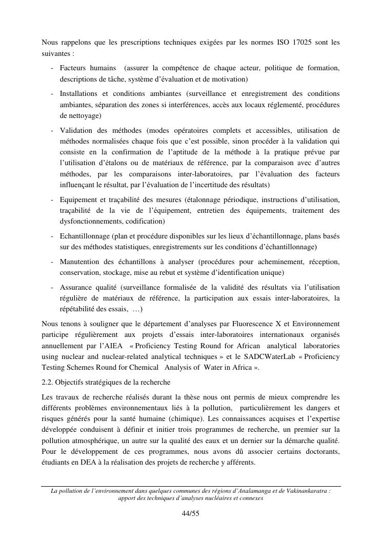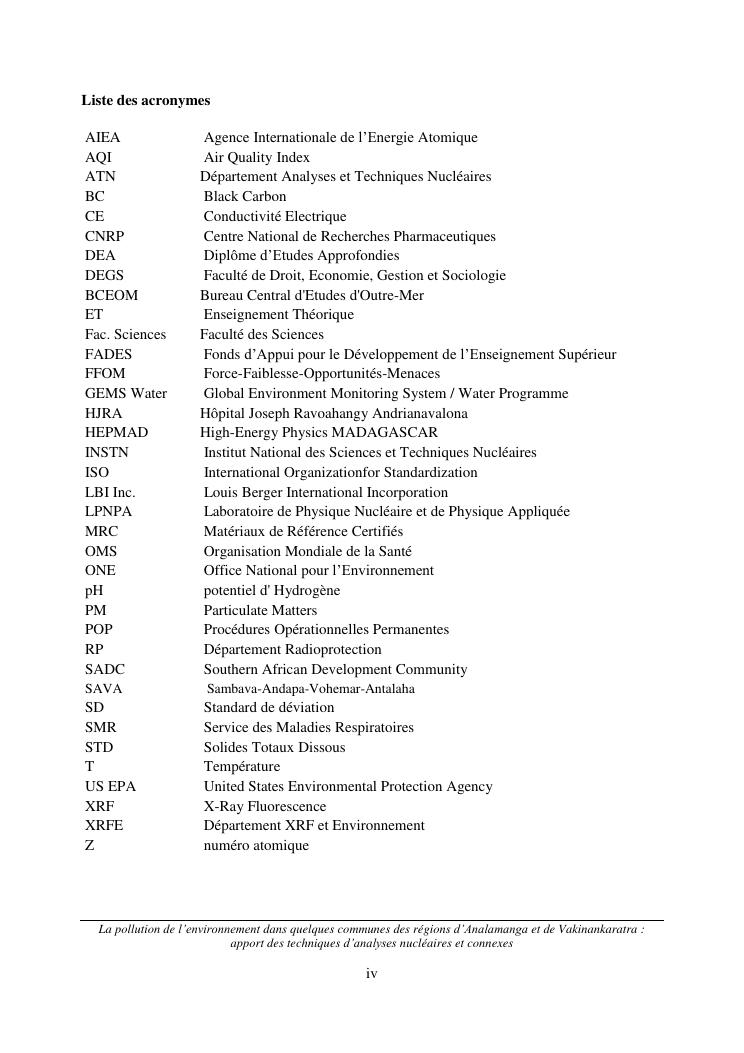 la pollution de l'environnement dans quelques communes des régions d'analamanga et de vakinankaratra : apport des techniques d'analyses nucléaires et connexes. volume 1 : document de synthèse et curriculum vitæ