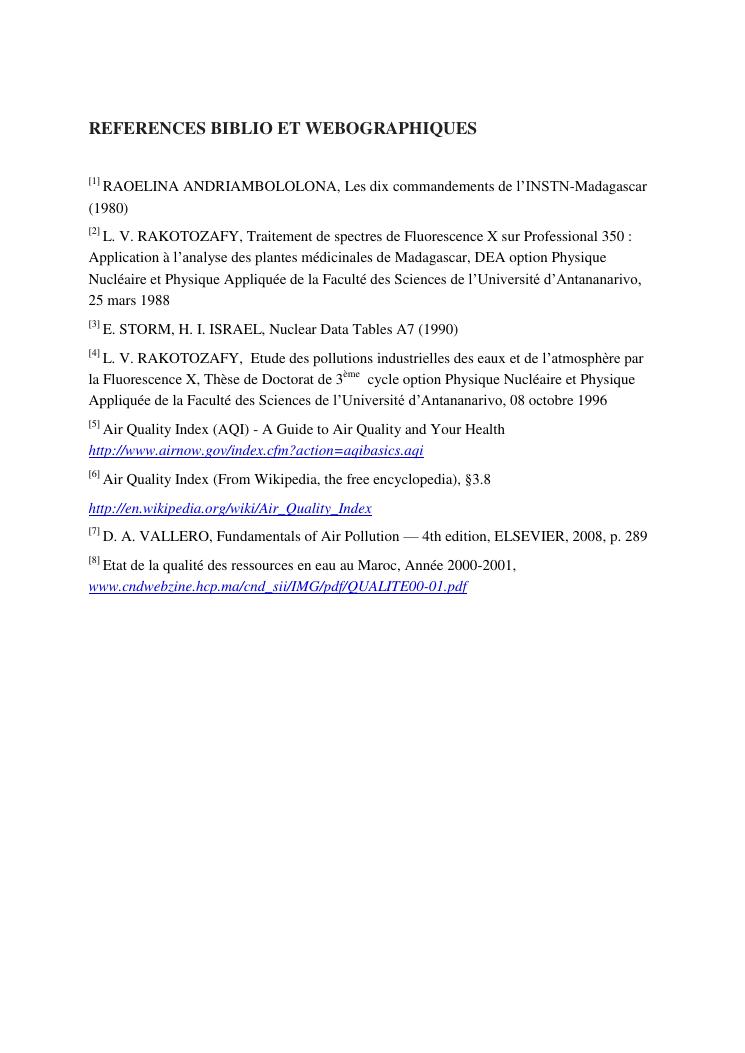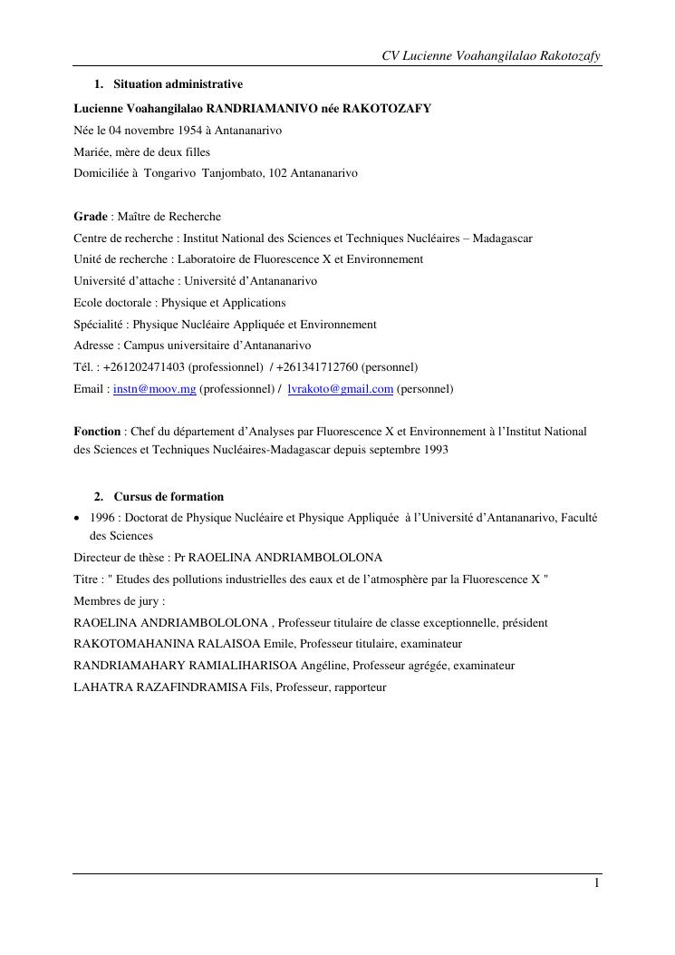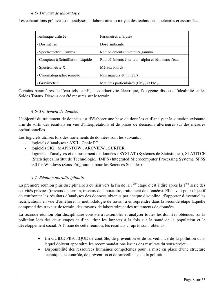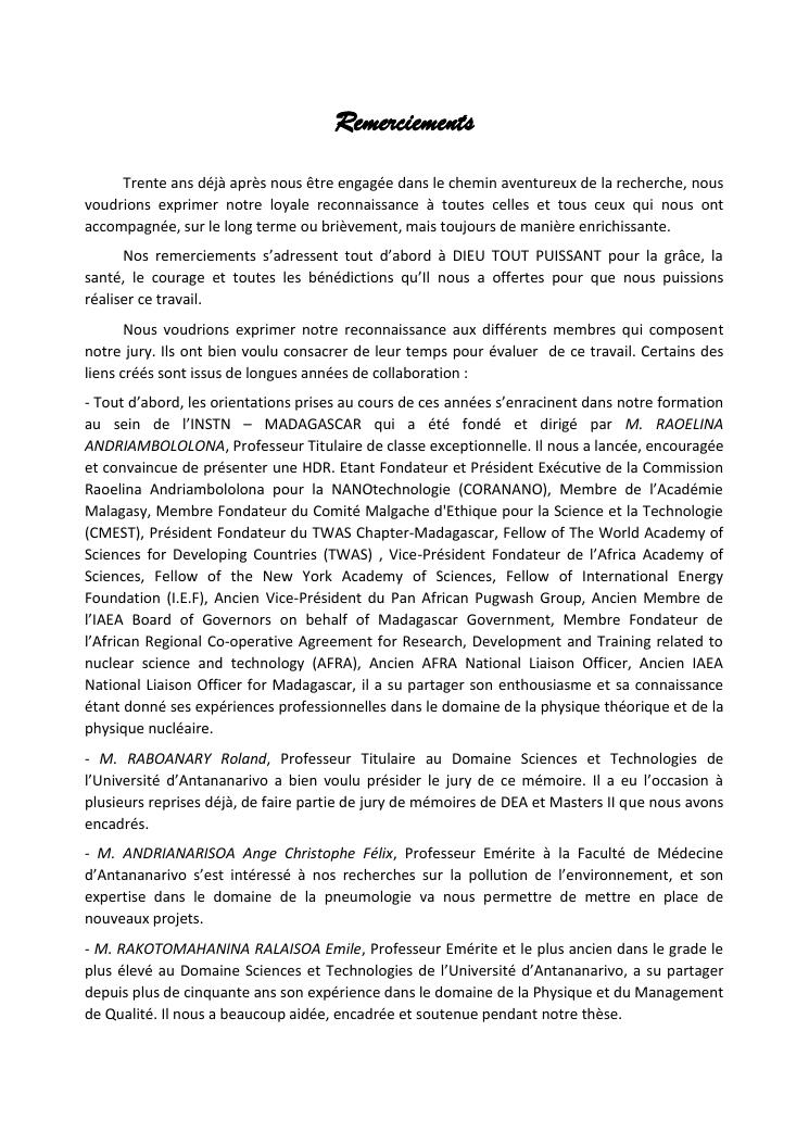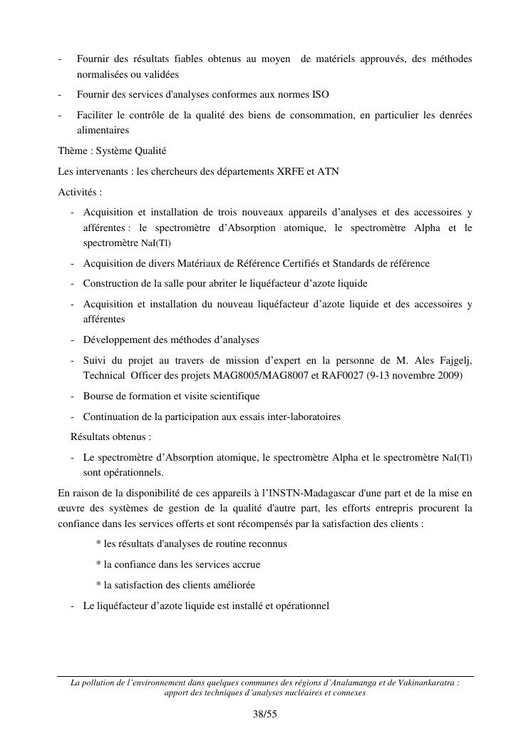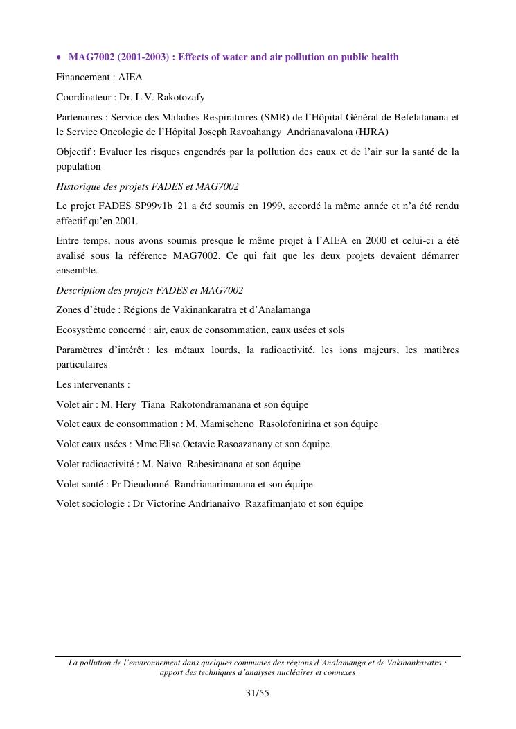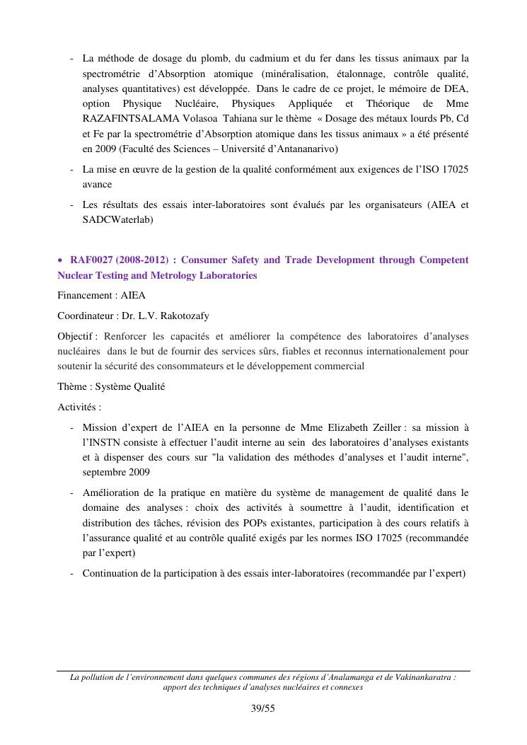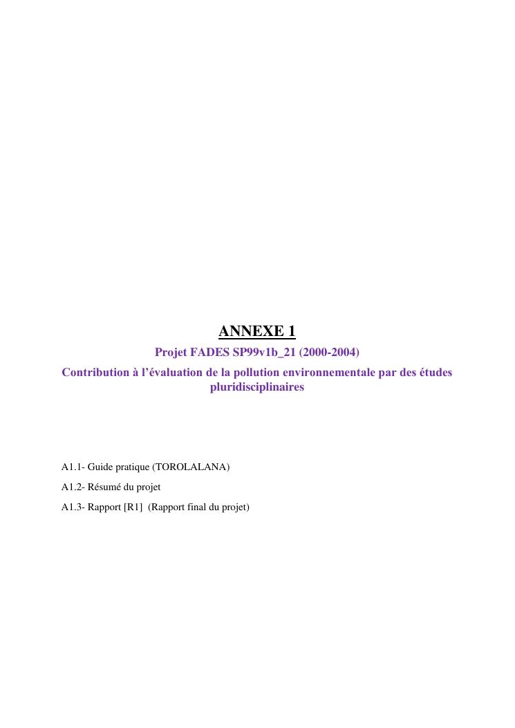 la pollution de l'environnement dans quelques communes des régions d'analamanga et de vakinankaratra : apport des techniques d'analyses nucléaires et connexes. volume 1 : document de synthèse et curriculum vitæ