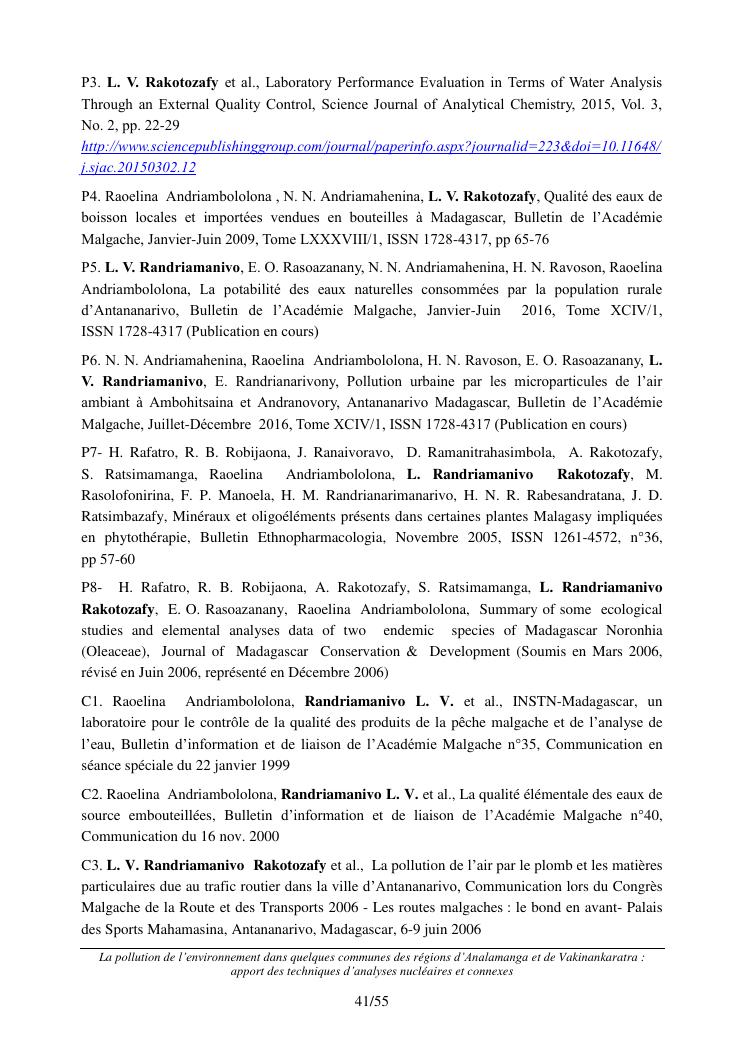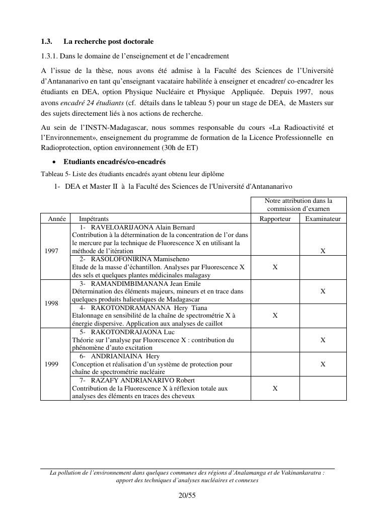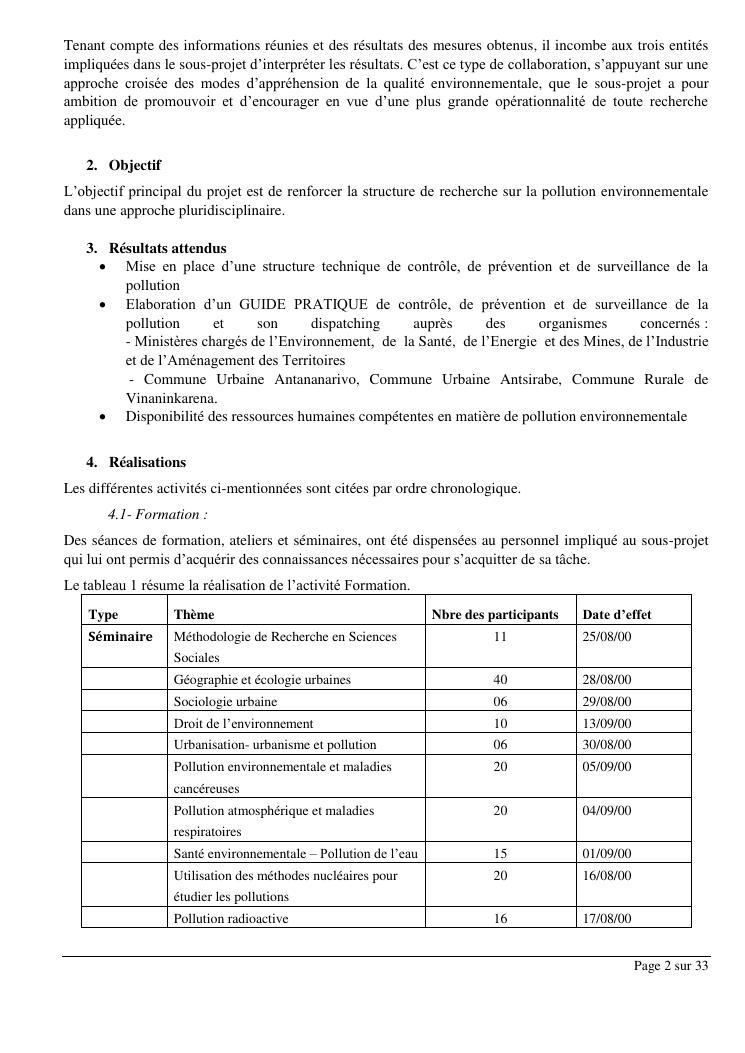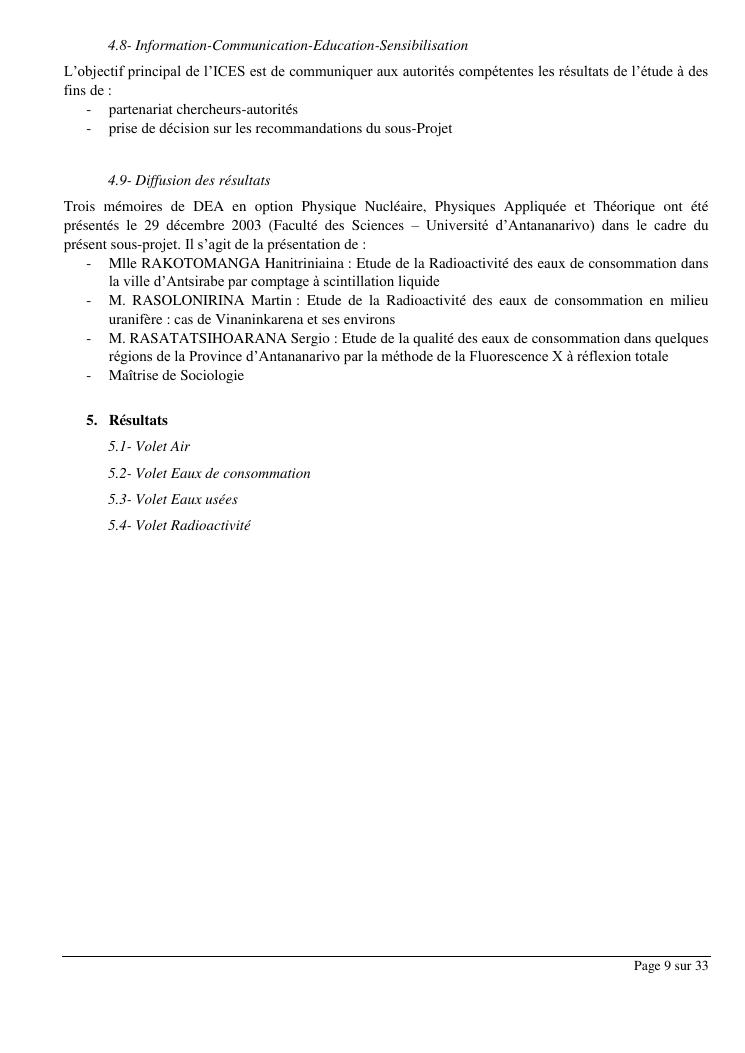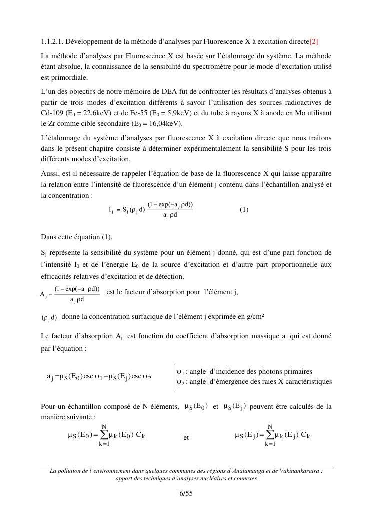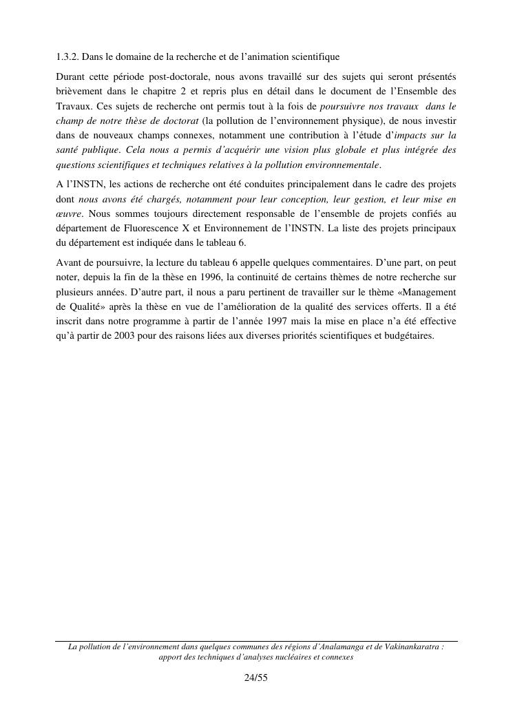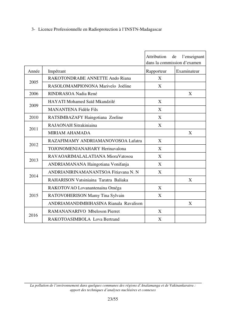 la pollution de l'environnement dans quelques communes des régions d'analamanga et de vakinankaratra : apport des techniques d'analyses nucléaires et connexes. volume 1 : document de synthèse et curriculum vitæ