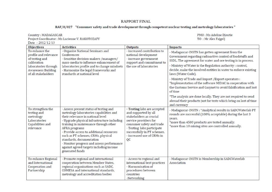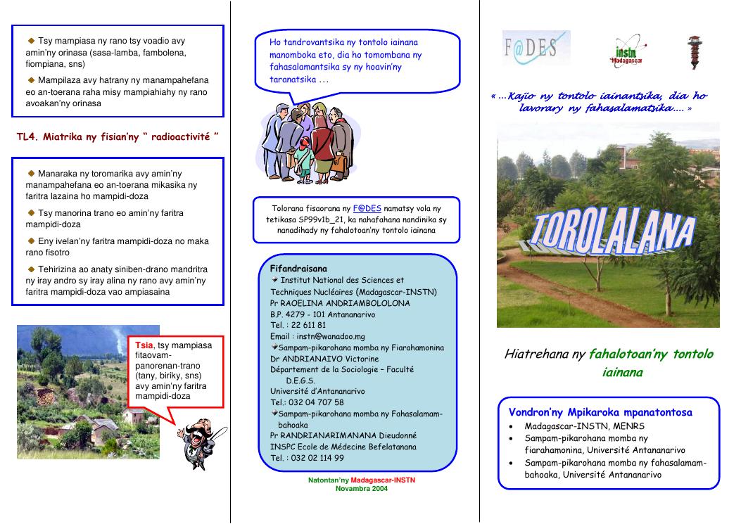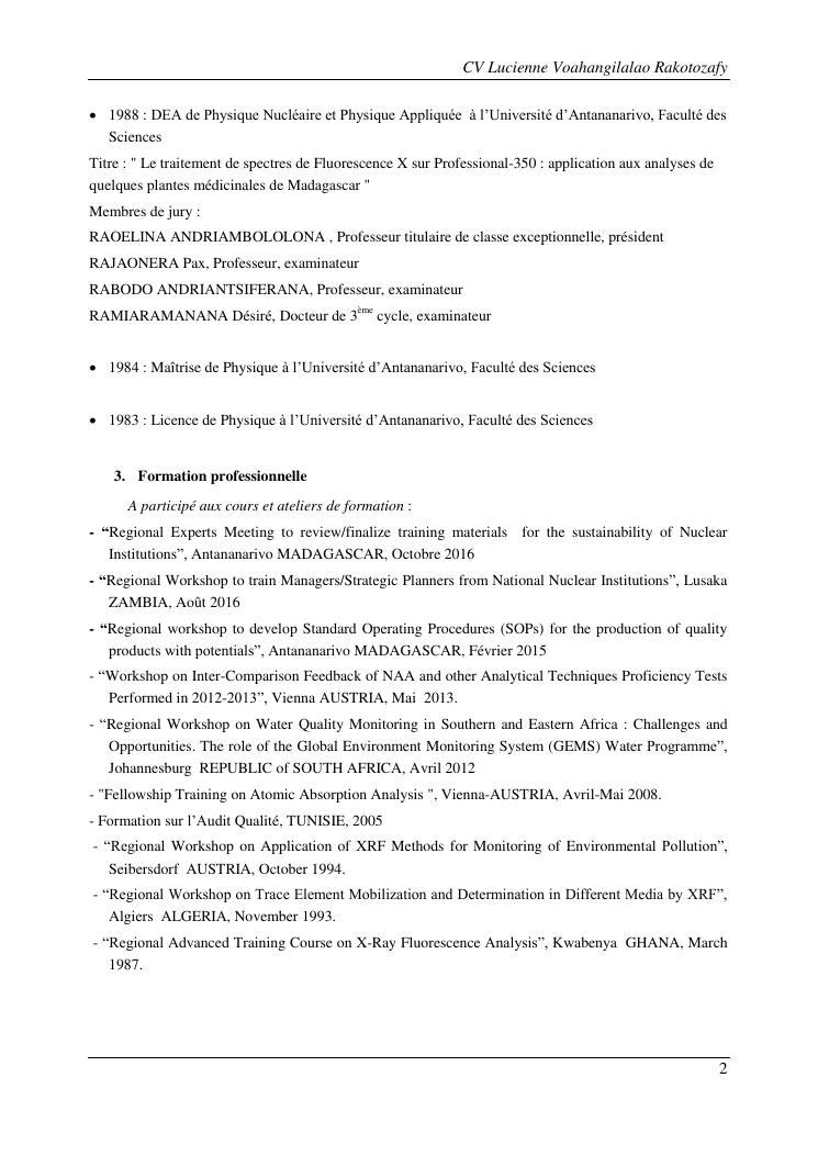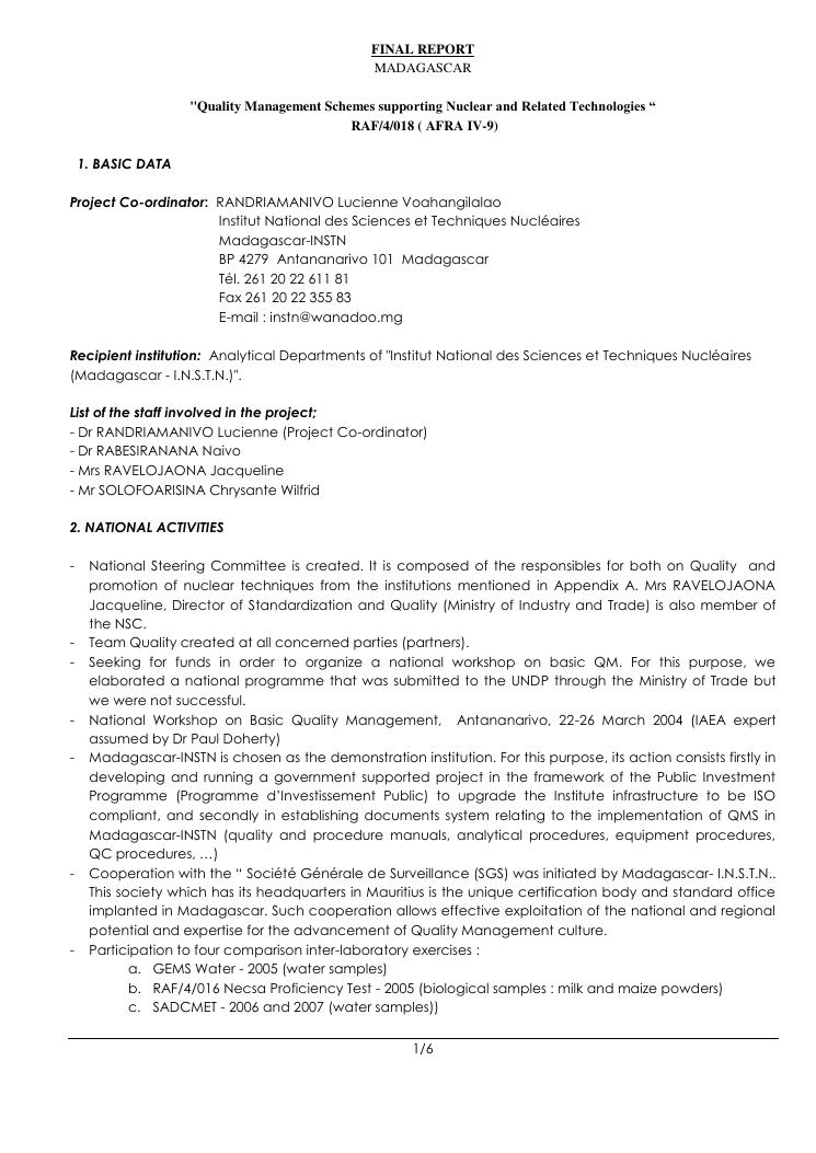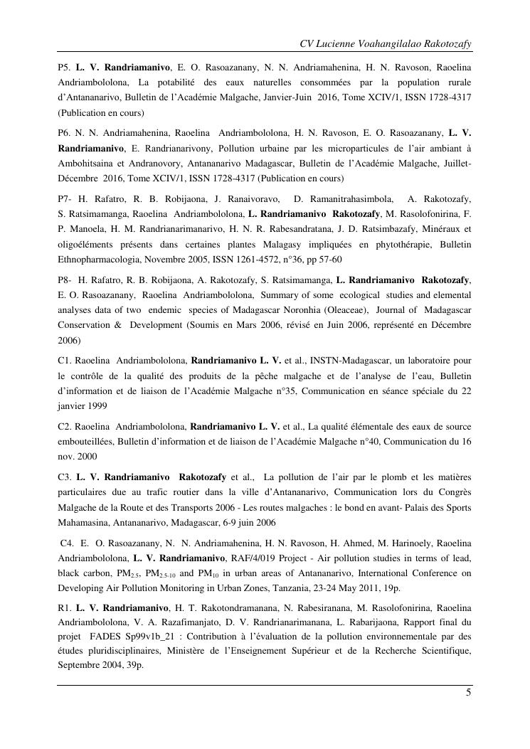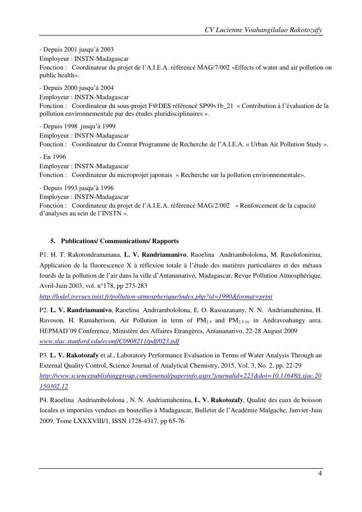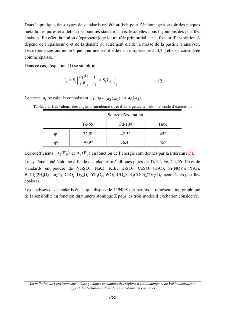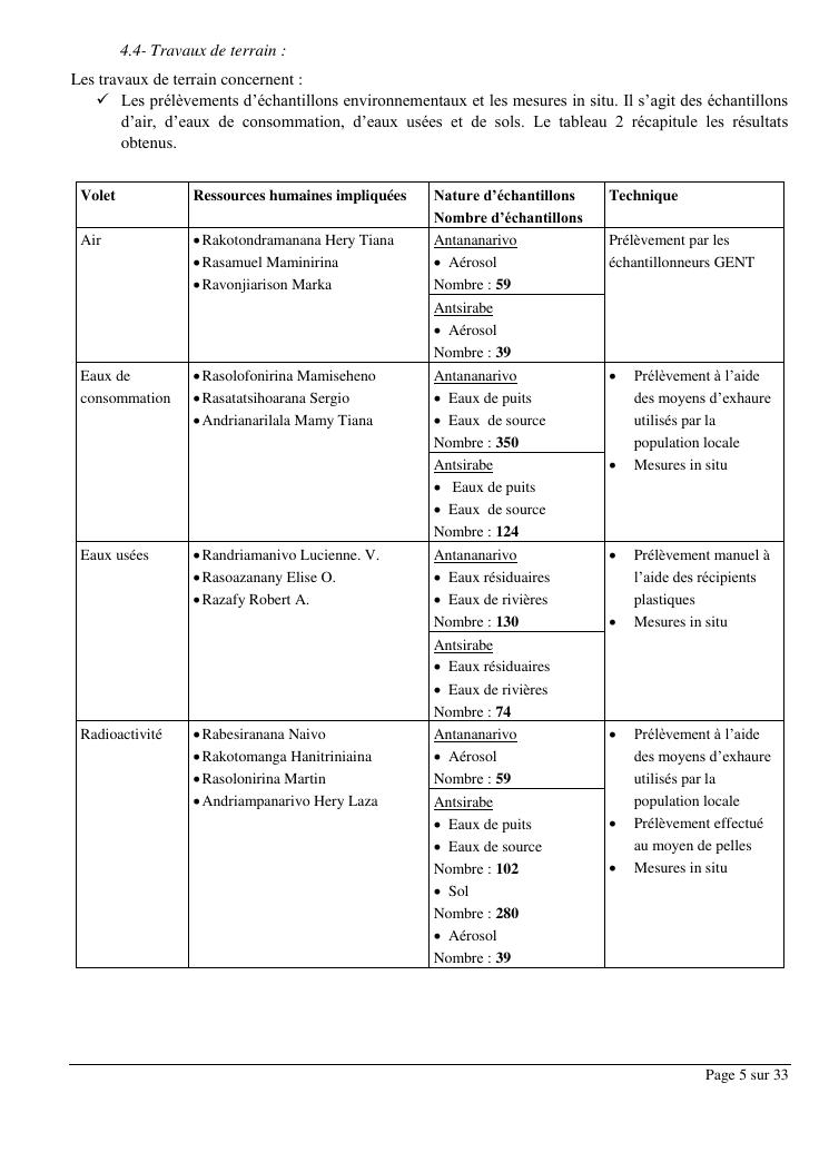 la pollution de l'environnement dans quelques communes des régions d'analamanga et de vakinankaratra : apport des techniques d'analyses nucléaires et connexes. volume 1 : document de synthèse et curriculum vitæ