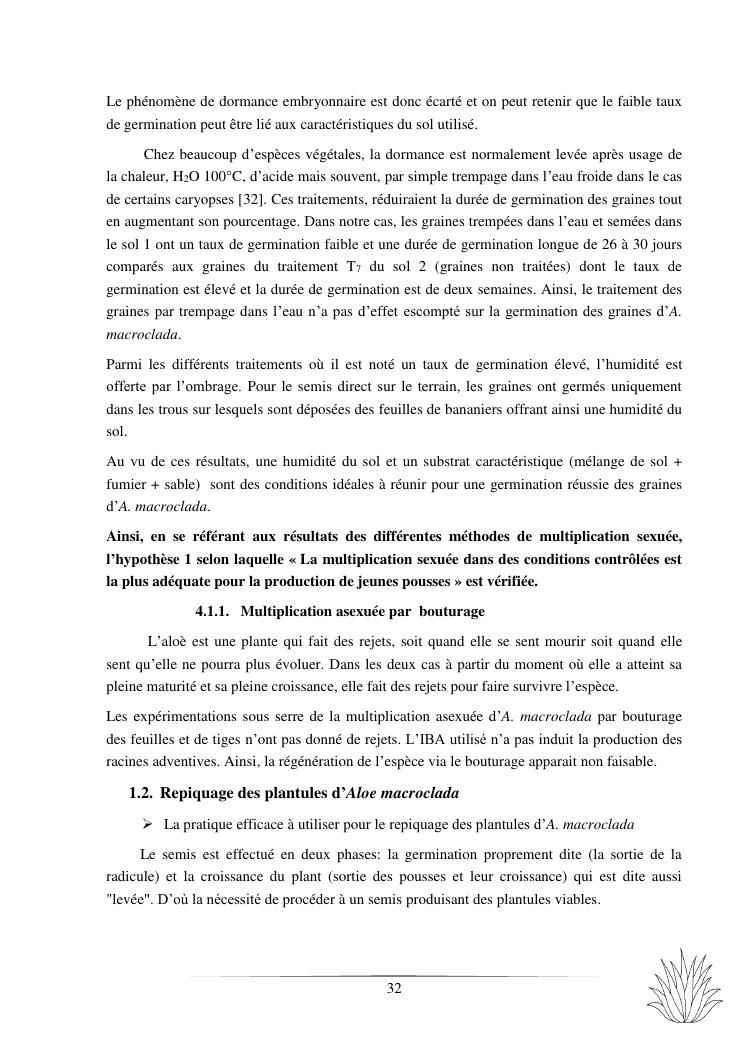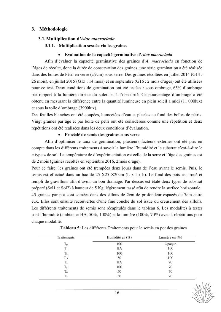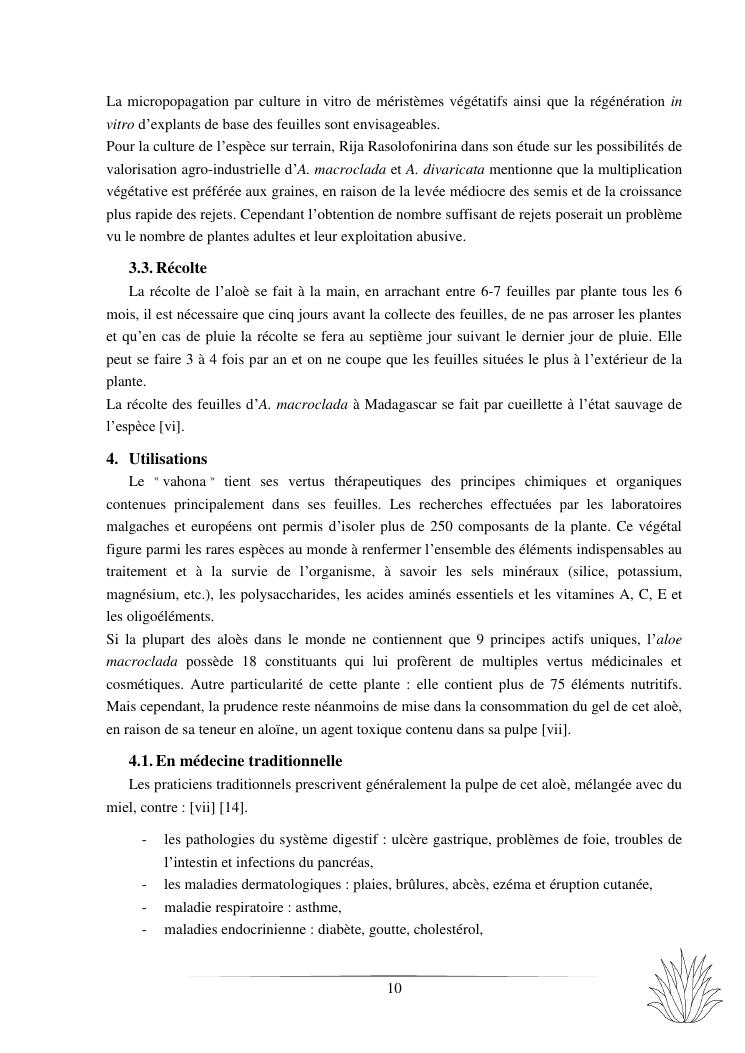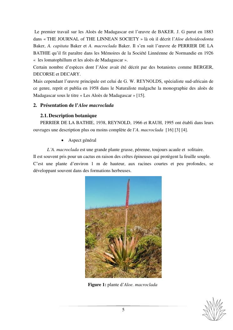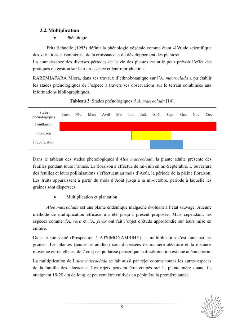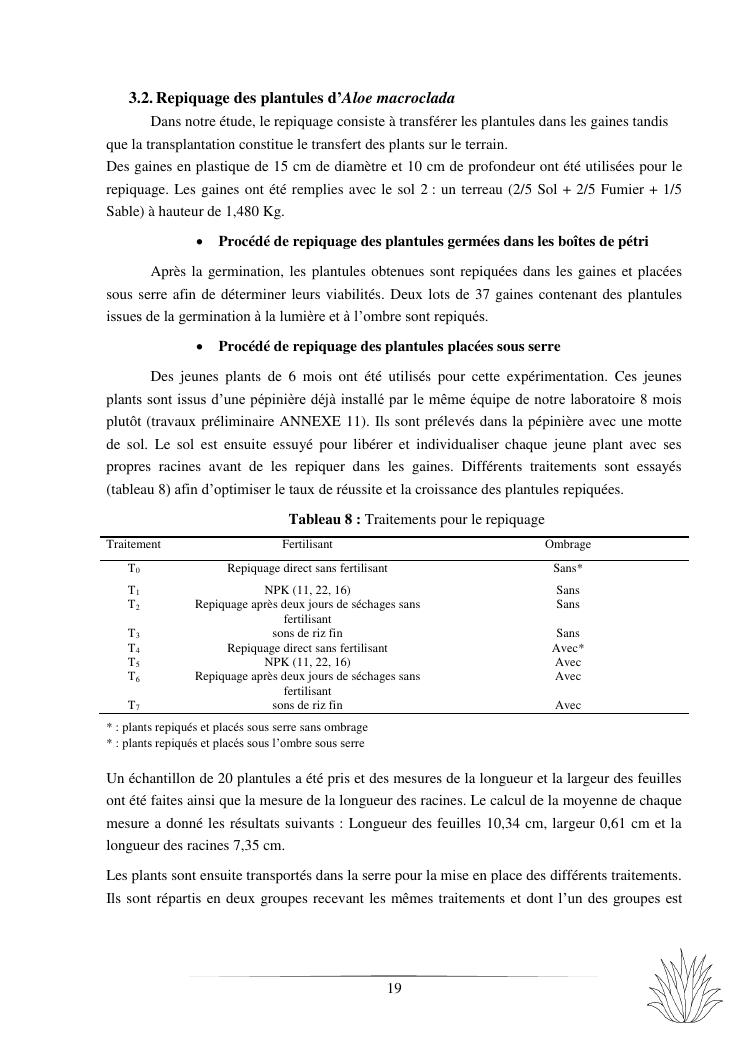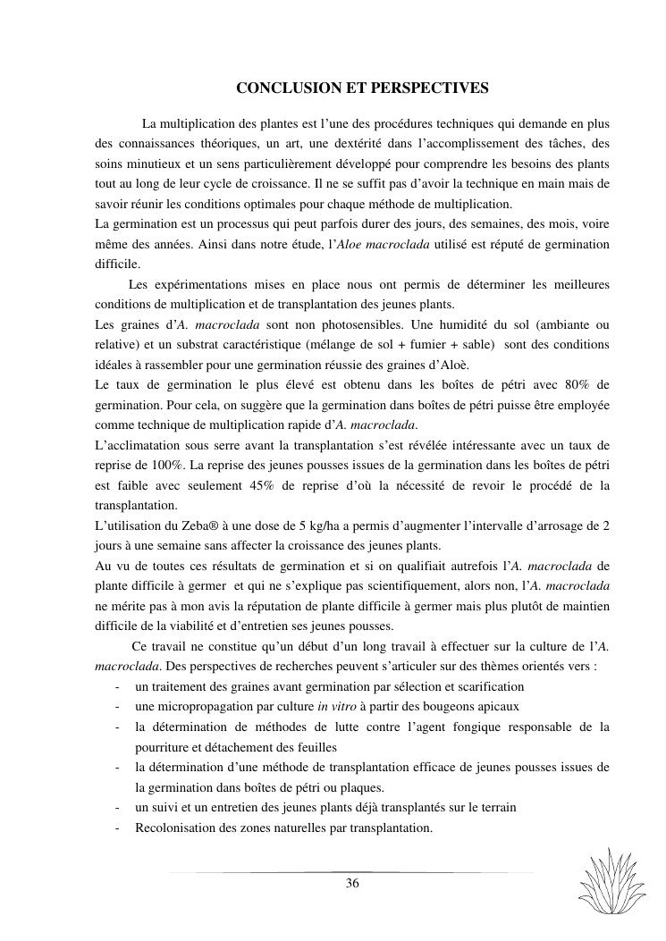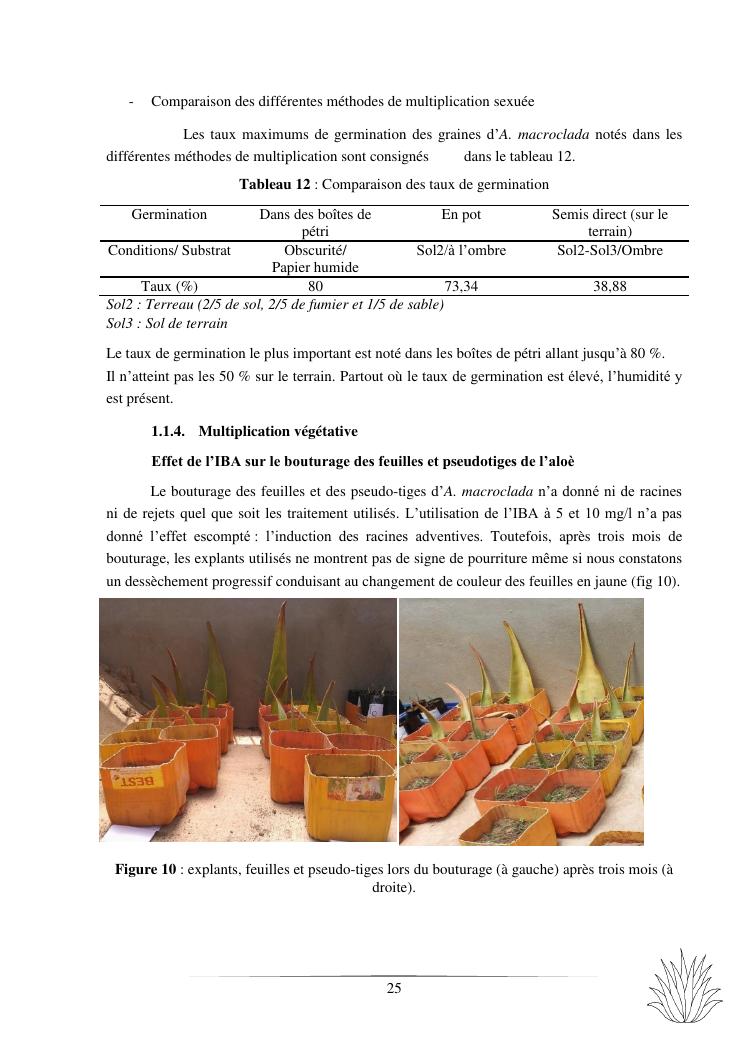 mise au point de methodes de multiplication et de culture d'aloe macroclada