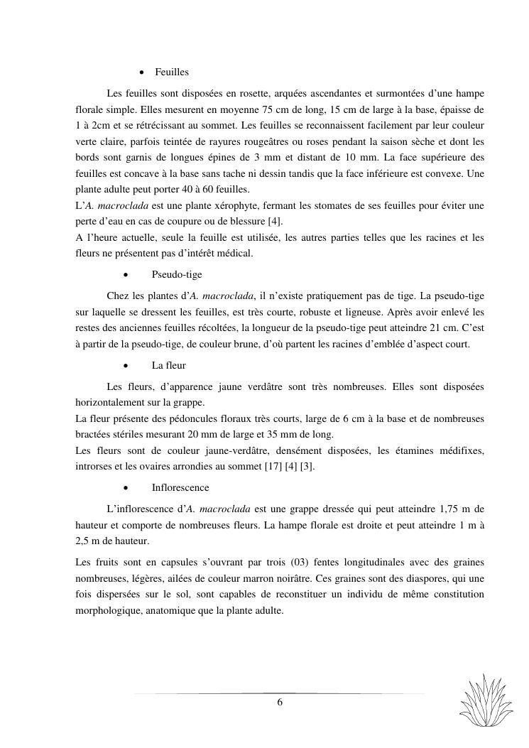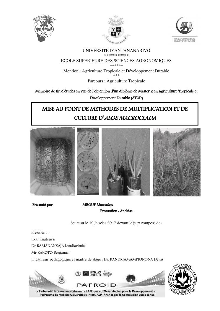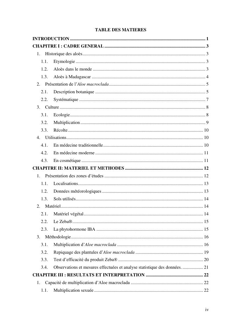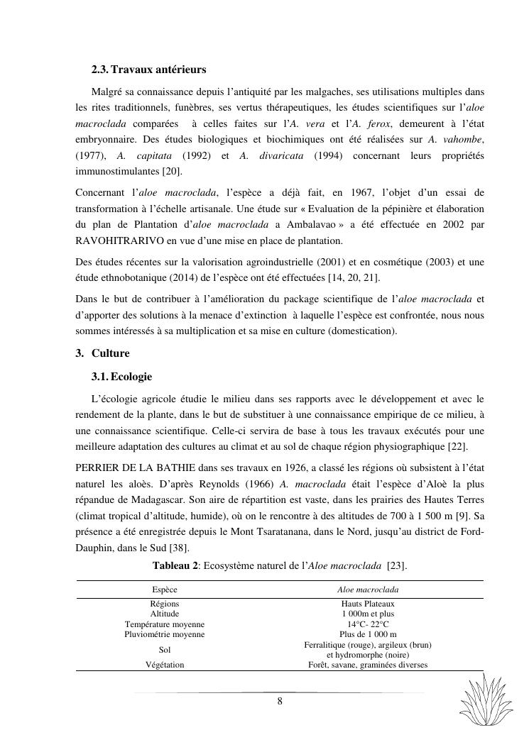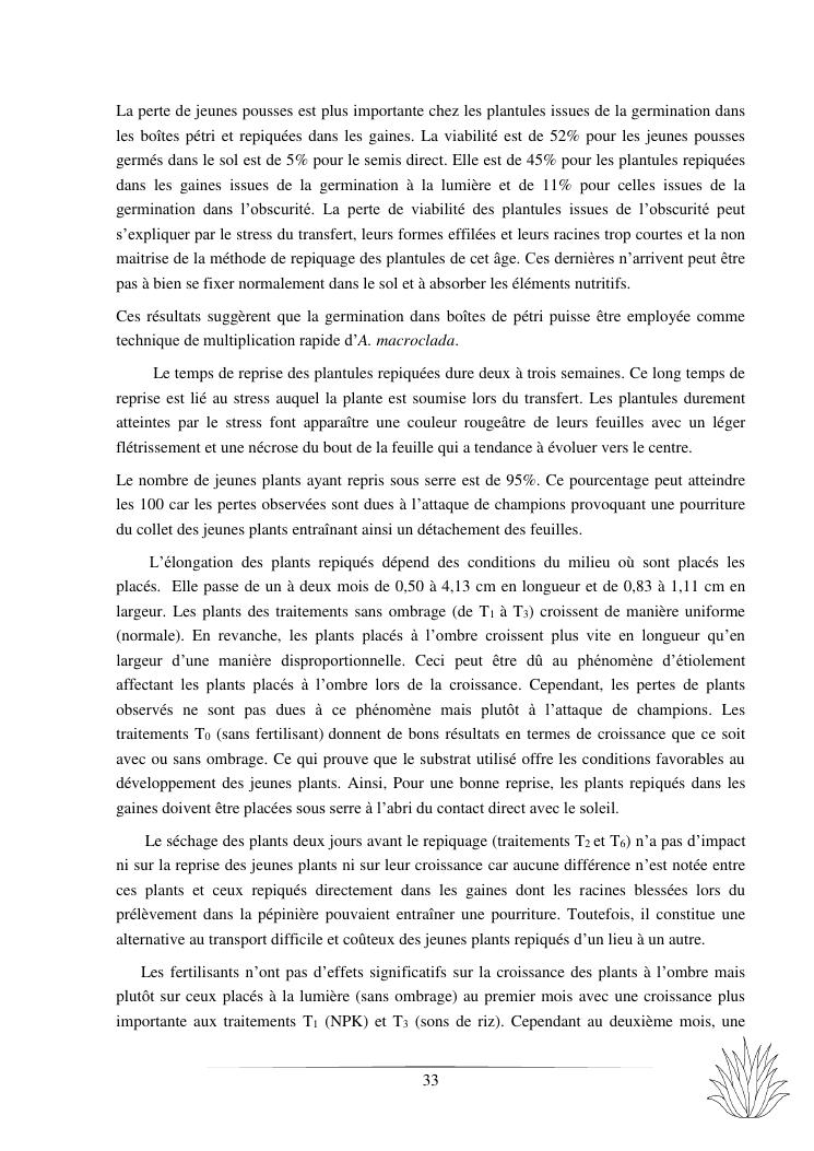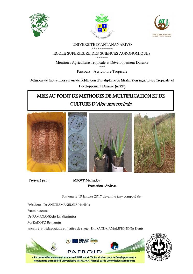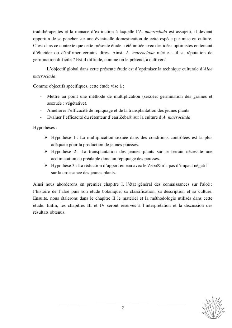 mise au point de methodes de multiplication et de culture d'aloe macroclada