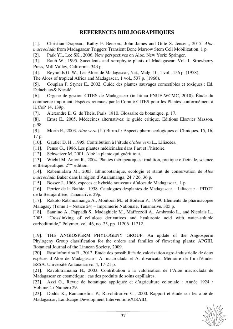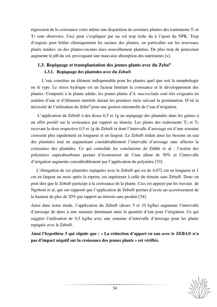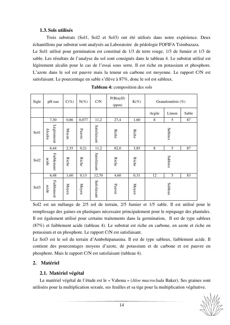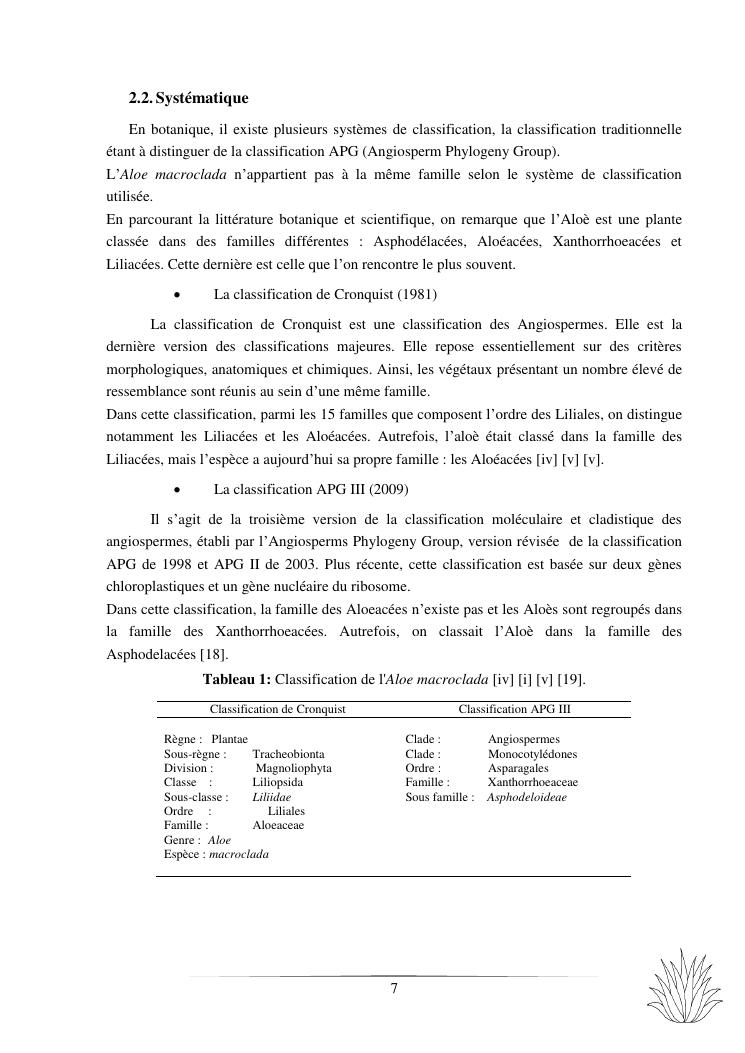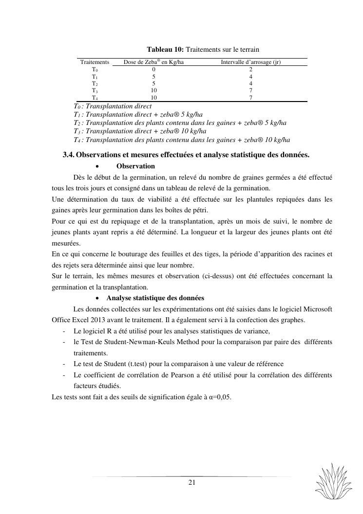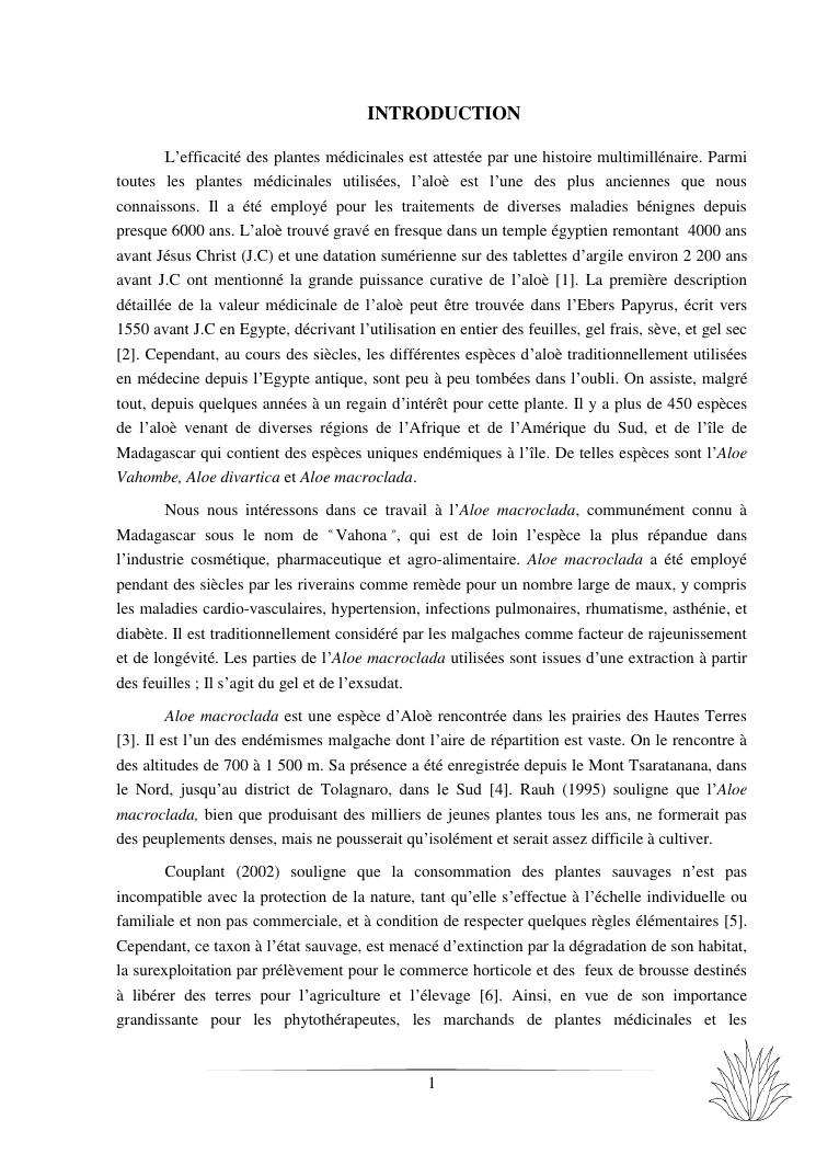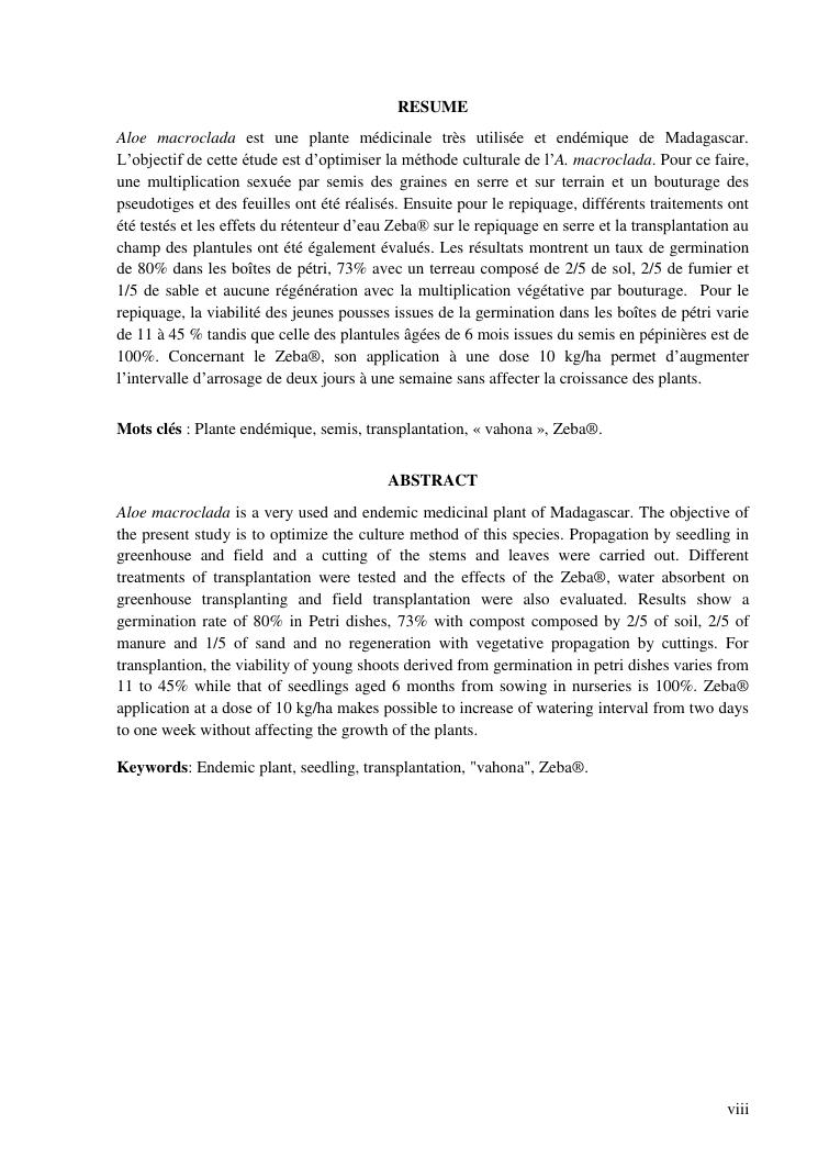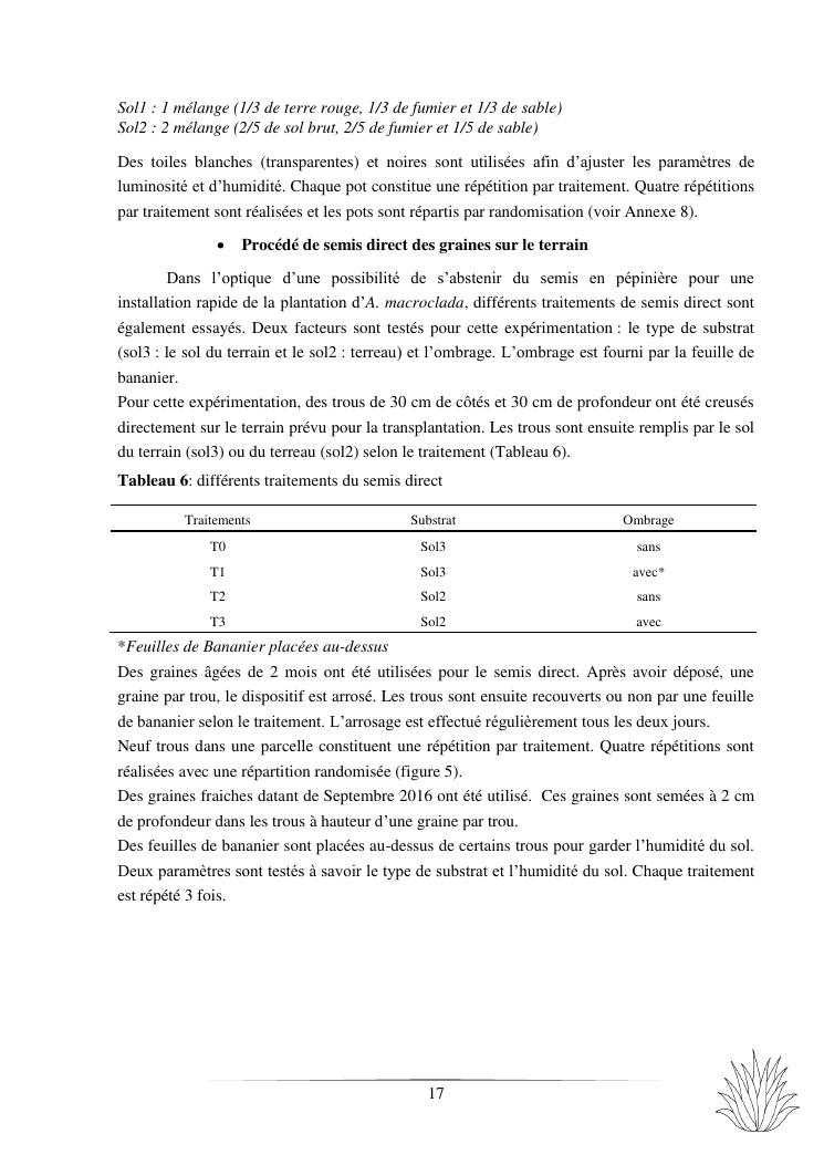 mise au point de methodes de multiplication et de culture d'aloe macroclada