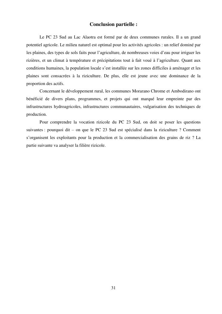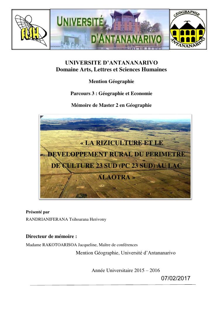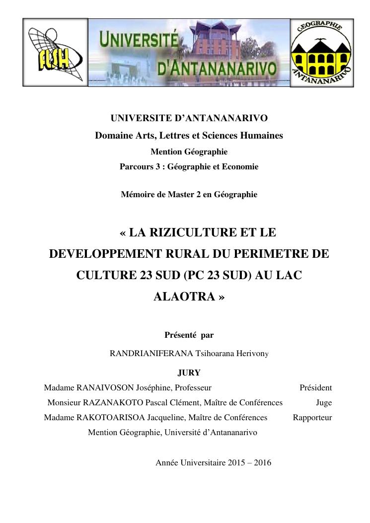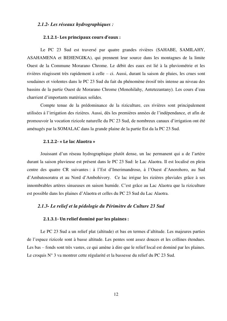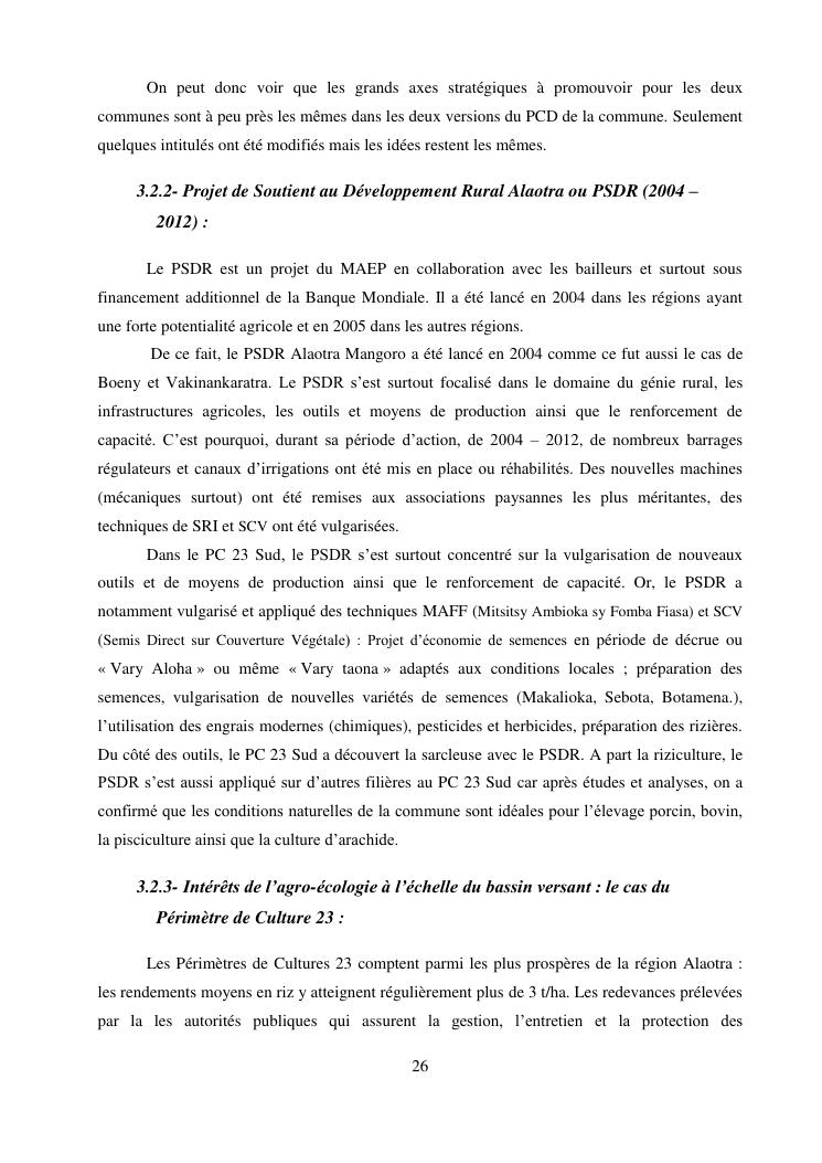 « la riziculture et le developpement rural du perimetre de culture 23 sud (pc 23 sud) au lac alaotra »