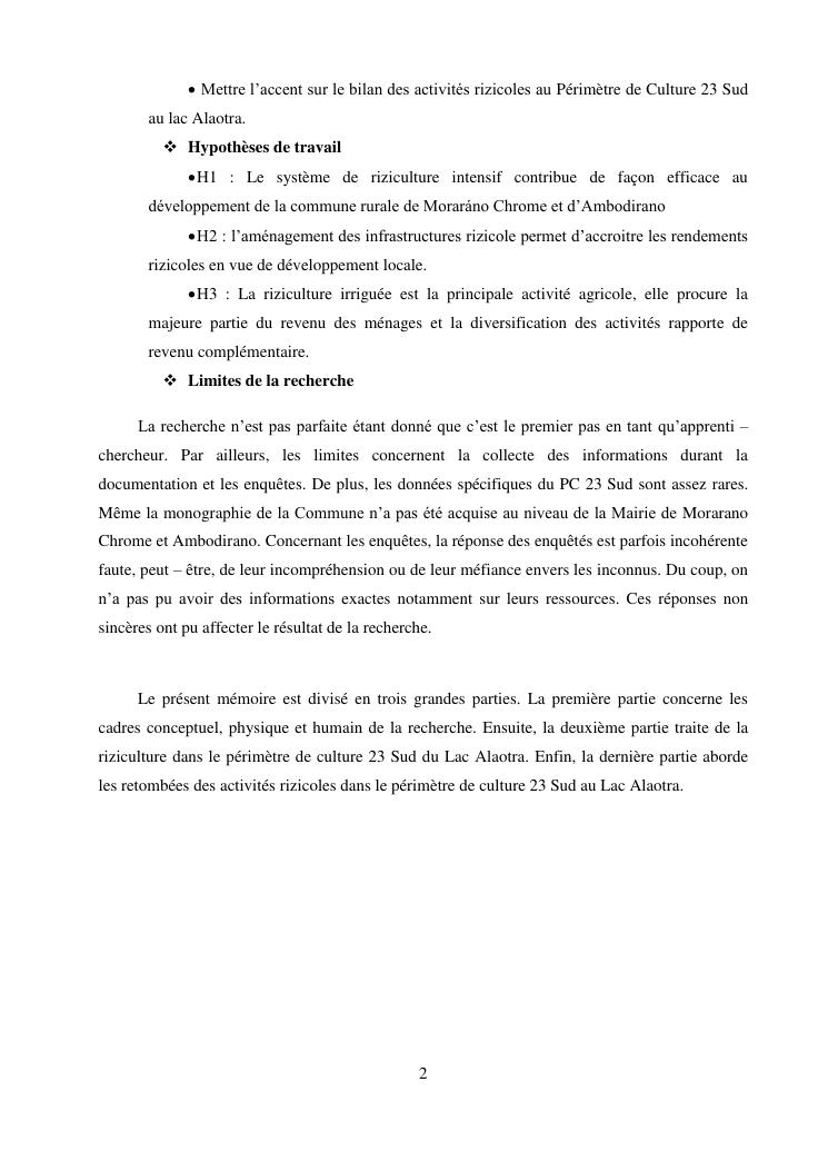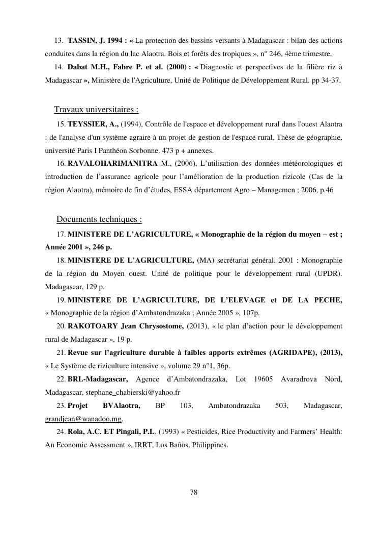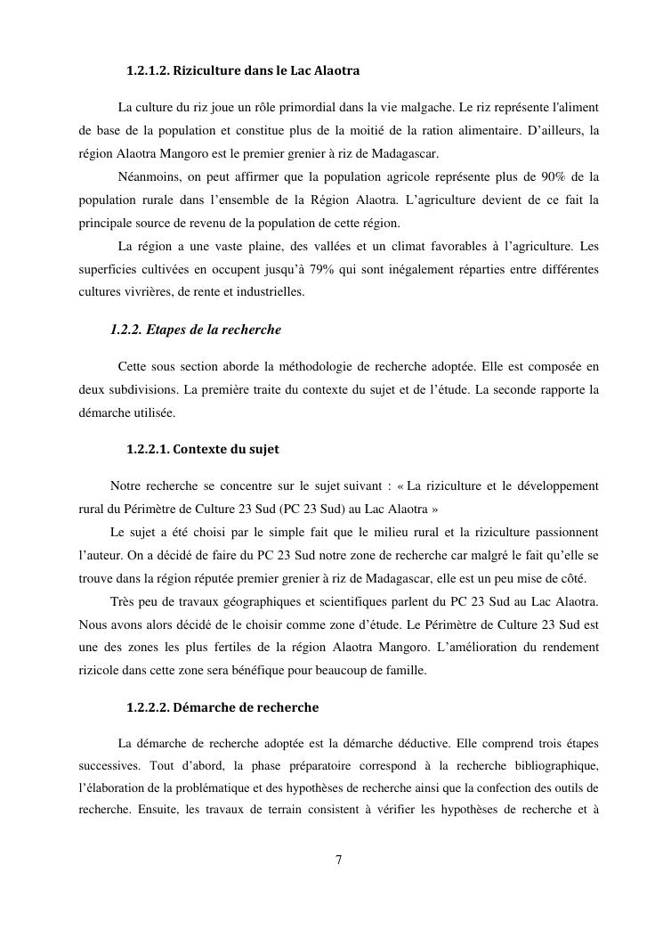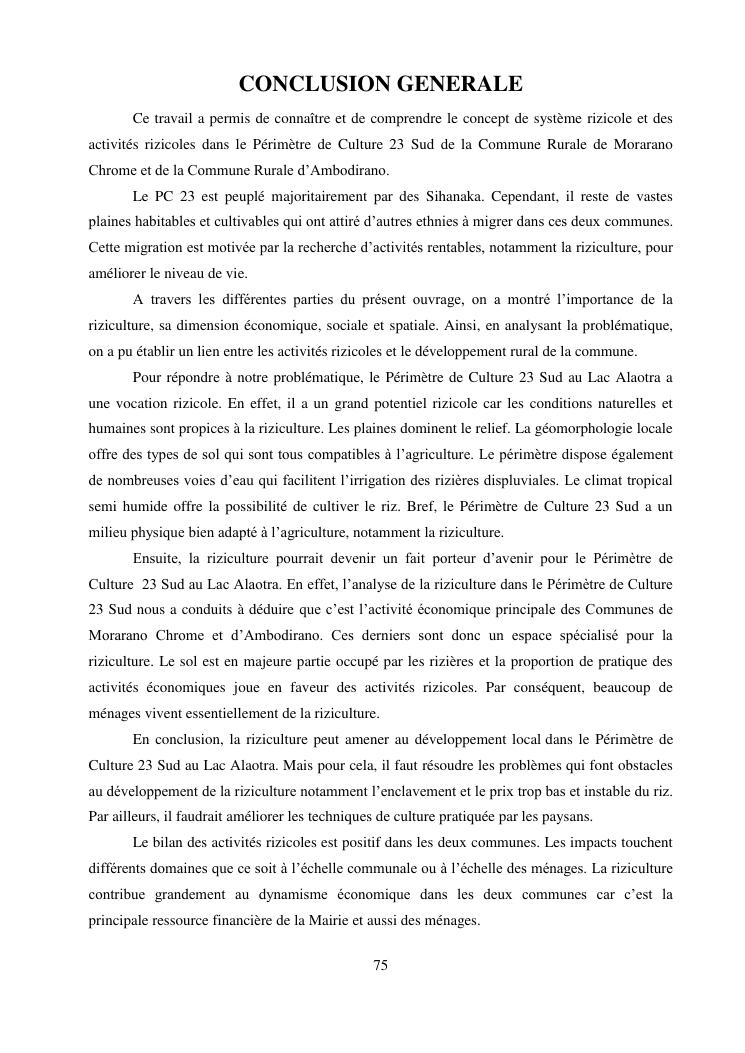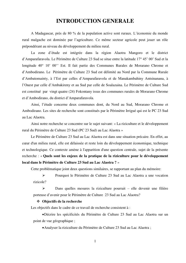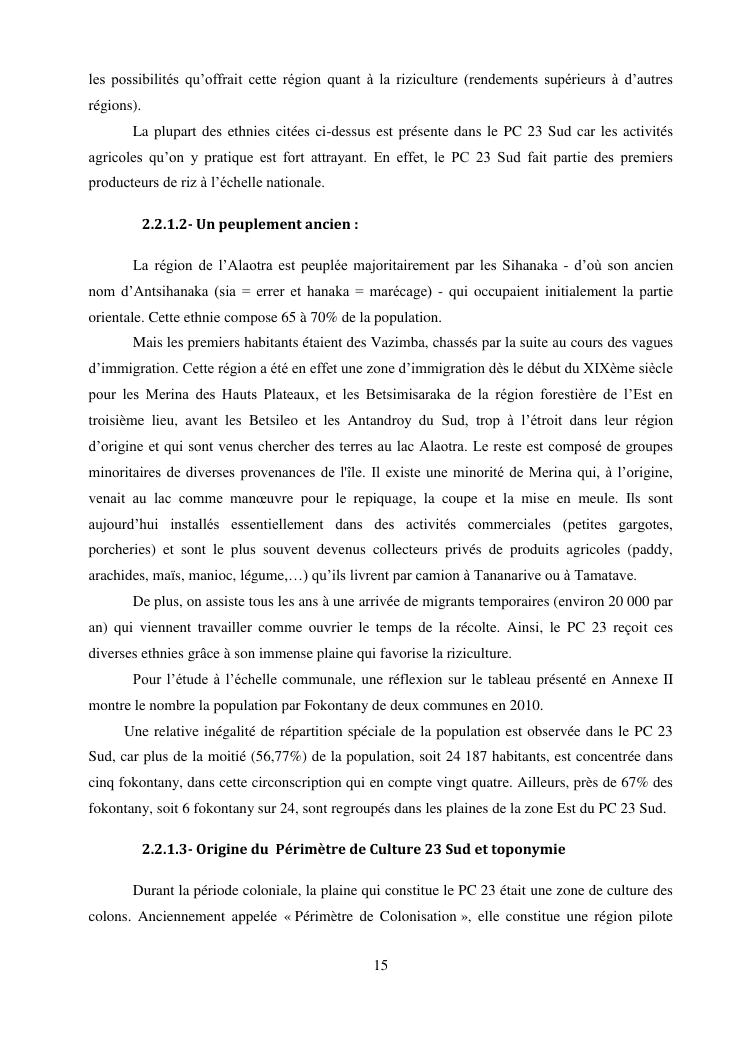 « la riziculture et le developpement rural du perimetre de culture 23 sud (pc 23 sud) au lac alaotra »