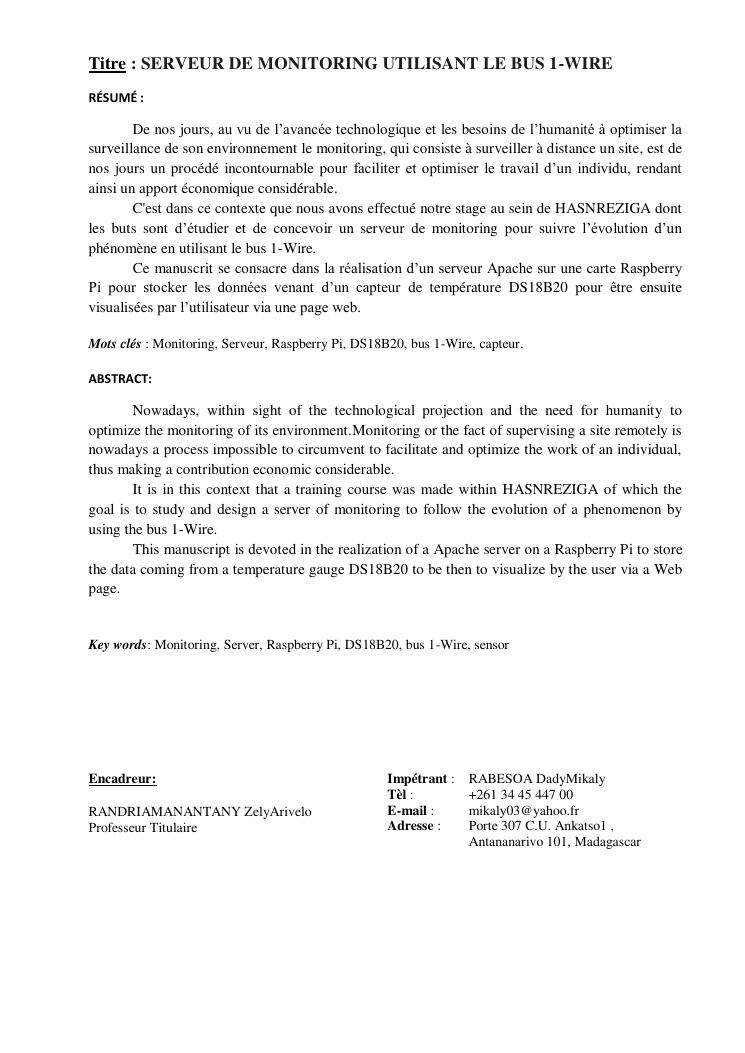 serveur de monitoring utilisant le bus 1-wire