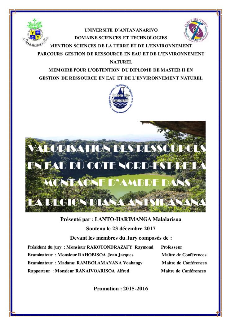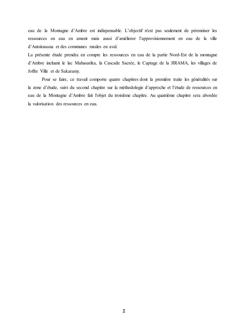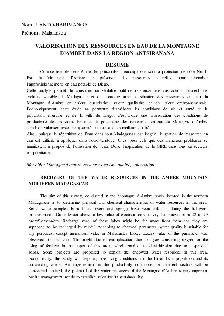 valorisation des ressources en eau du cote nord-est de la montagne d'ambre dans la region diana antsiranana