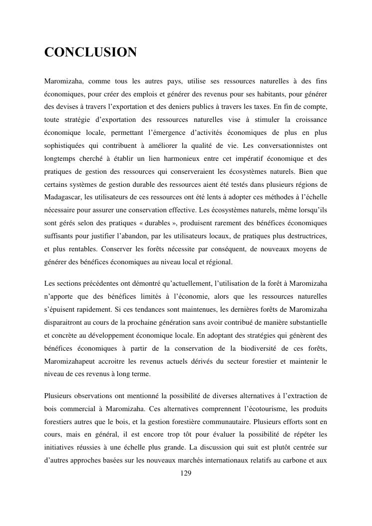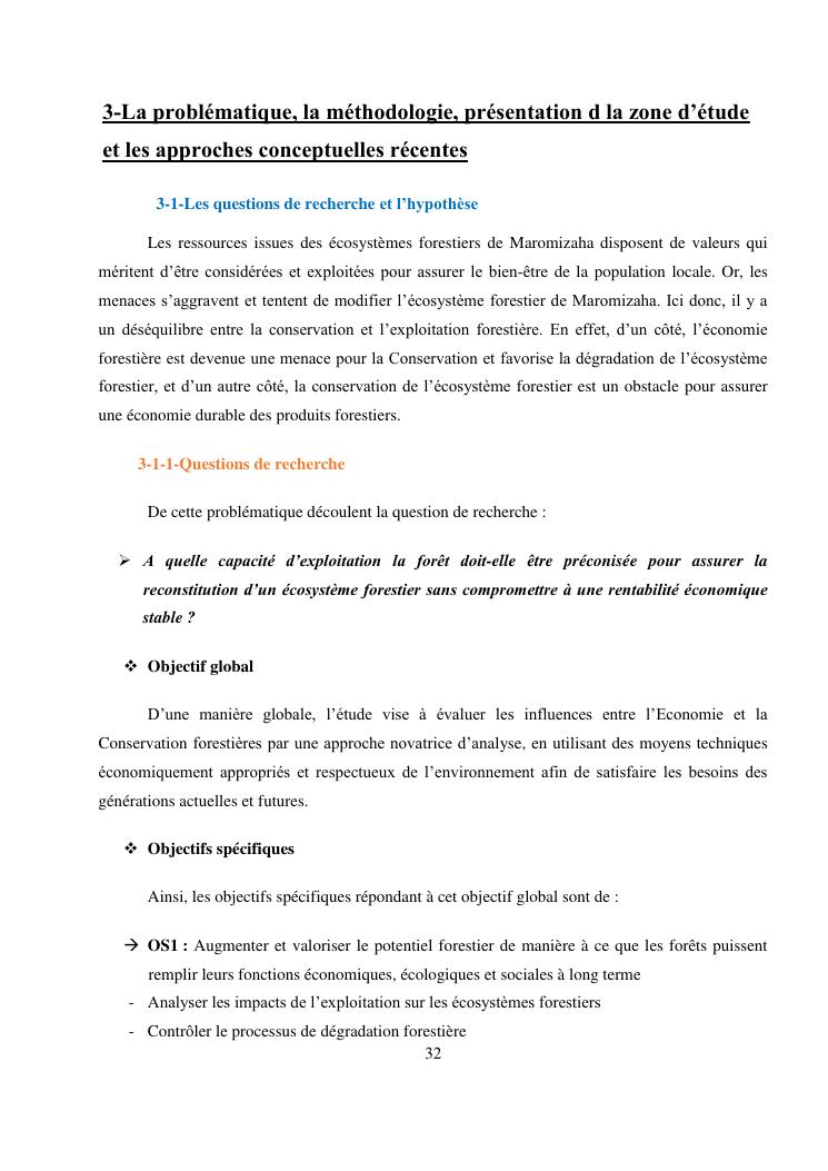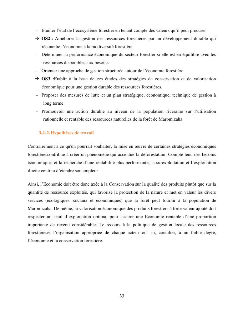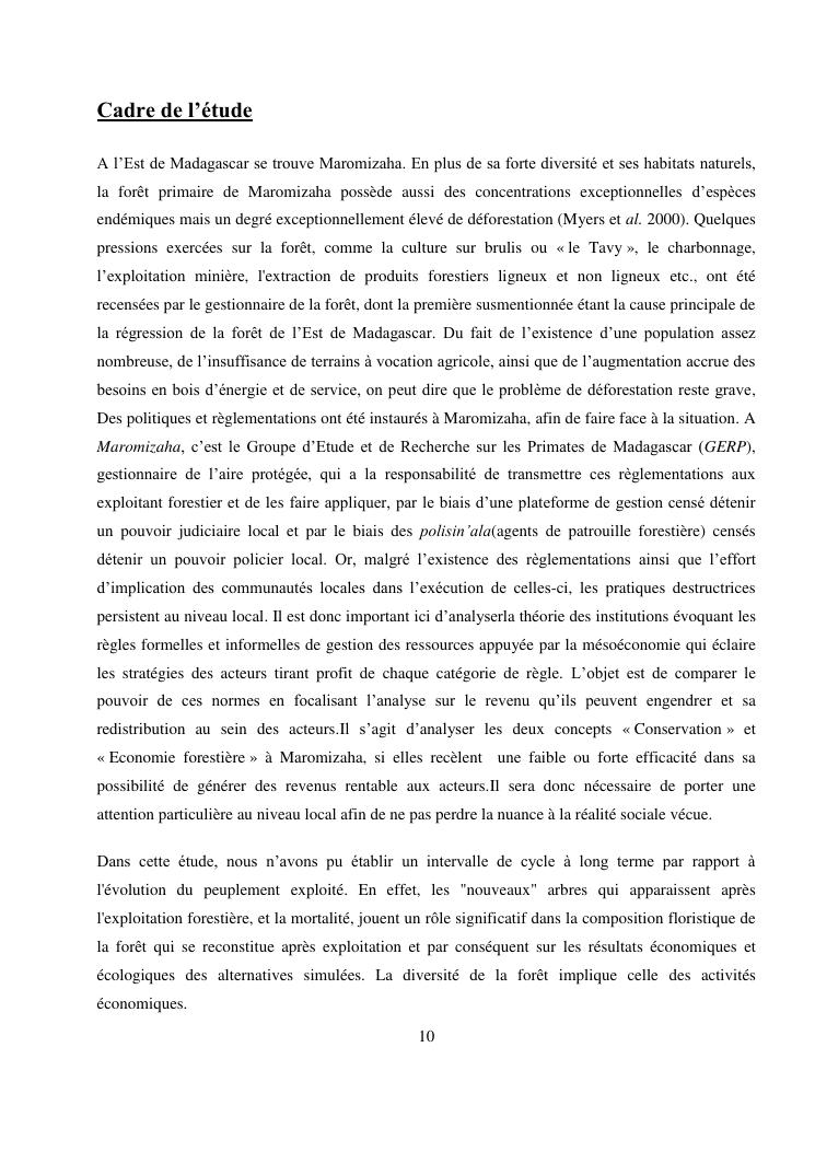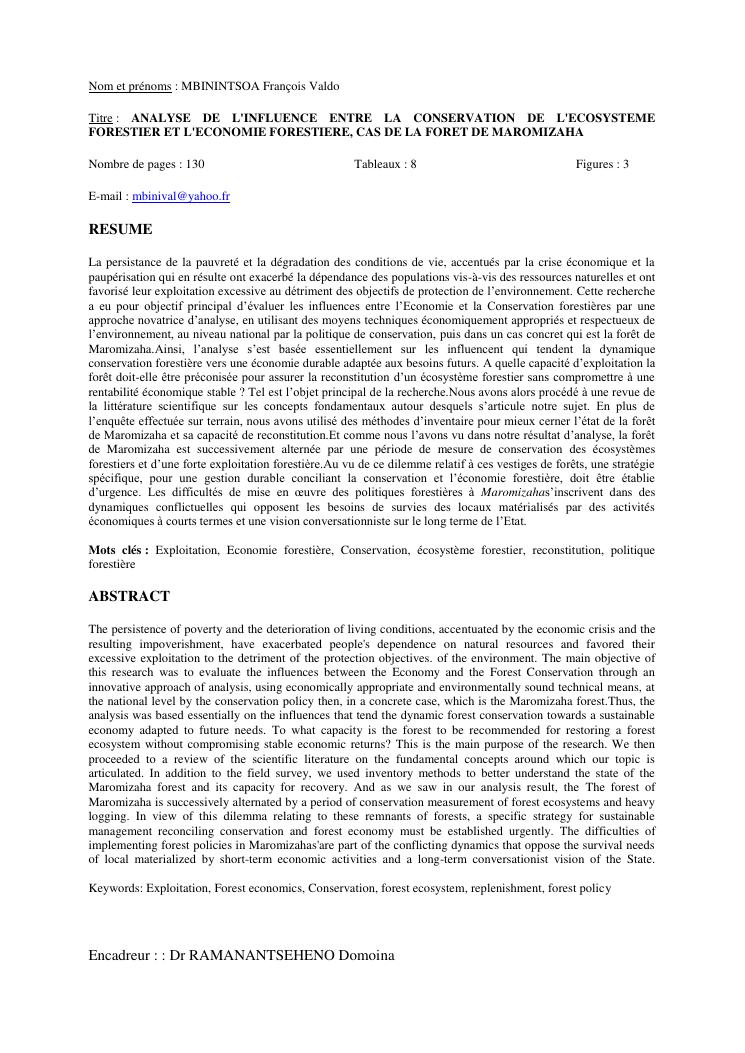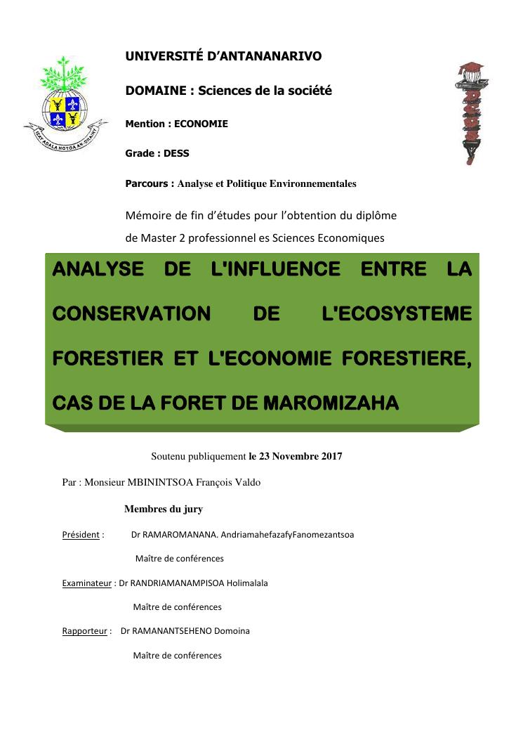 analyse de l'influence entre la conservation de l'ecosysteme forestier et l'economie forestiere, cas de la foret de maromizaha
