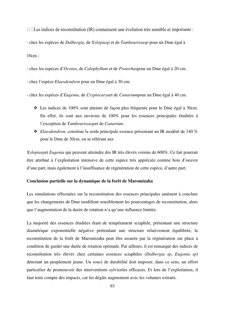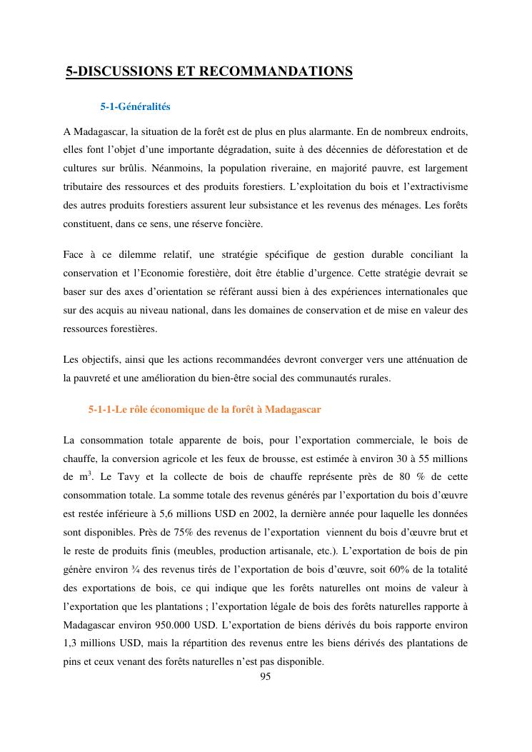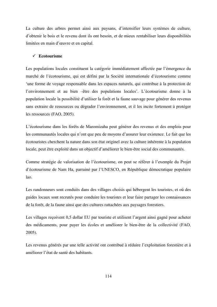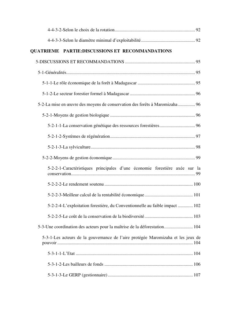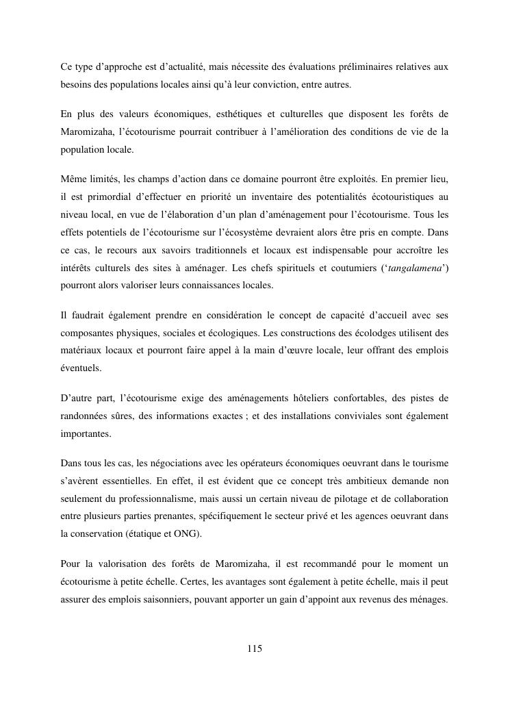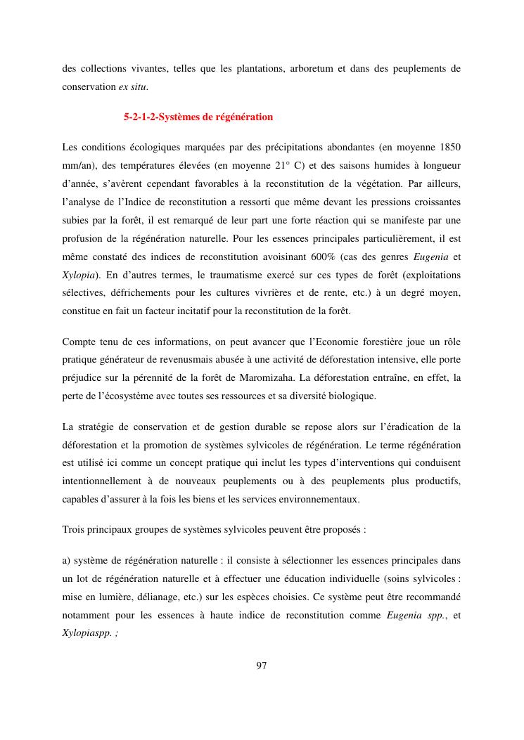 analyse de l'influence entre la conservation de l'ecosysteme forestier et l'economie forestiere, cas de la foret de maromizaha