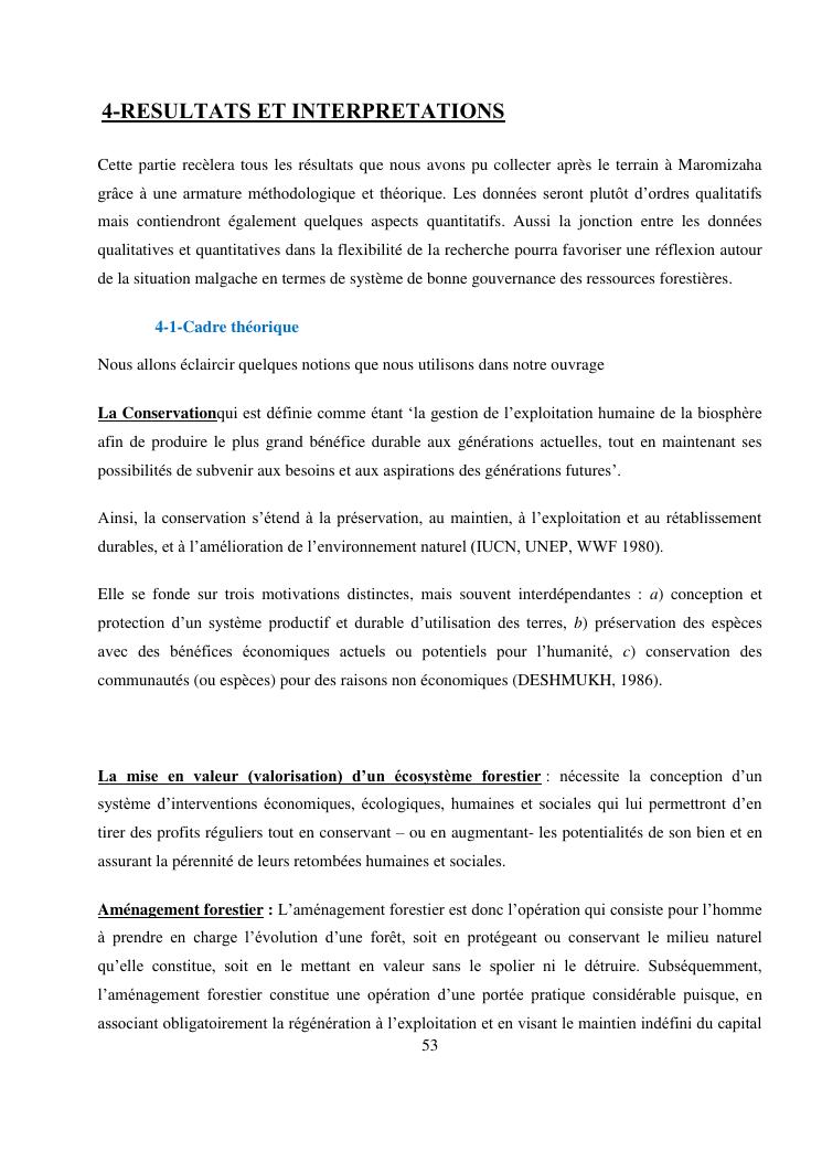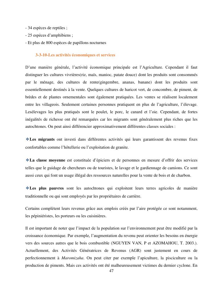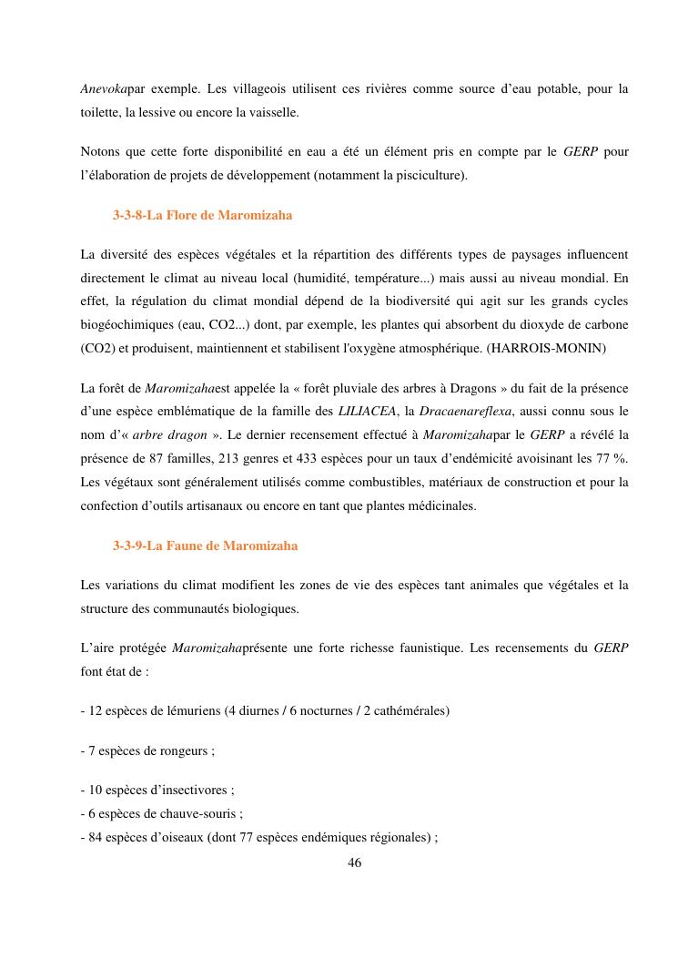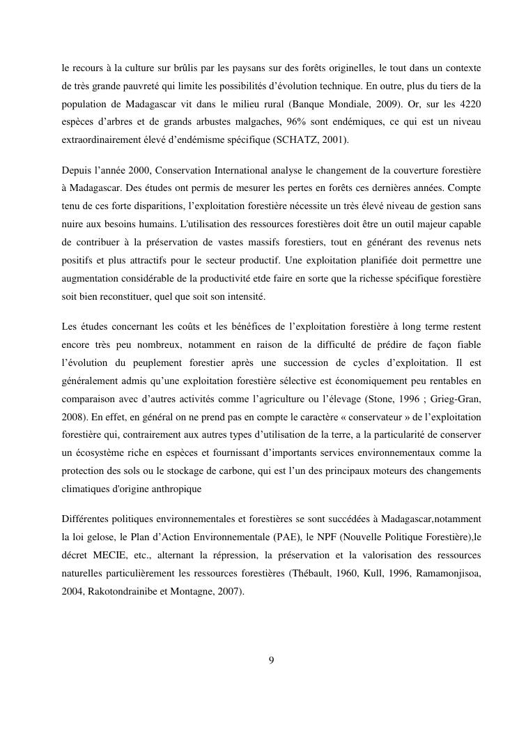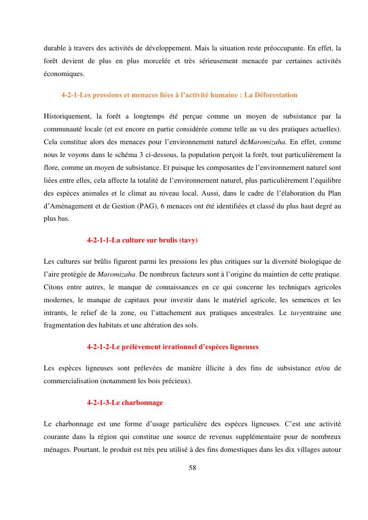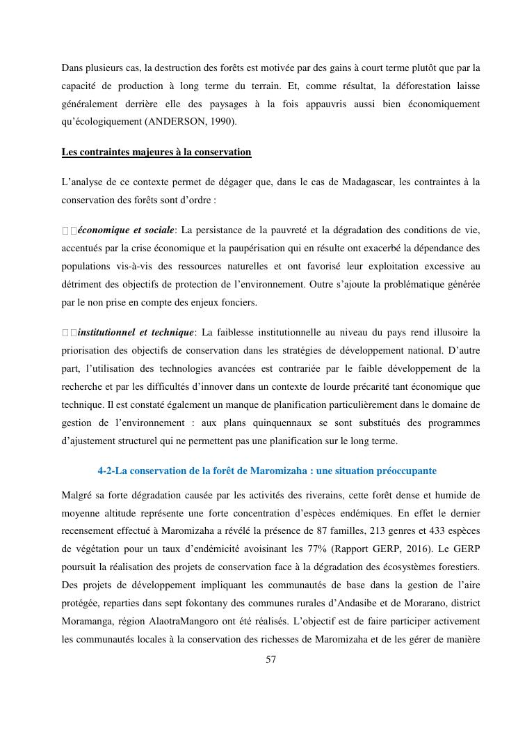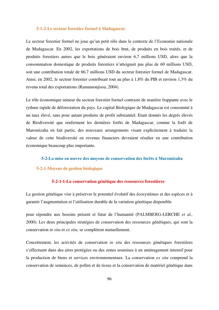 analyse de l'influence entre la conservation de l'ecosysteme forestier et l'economie forestiere, cas de la foret de maromizaha