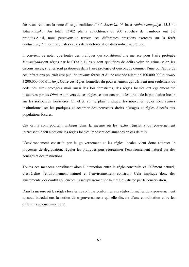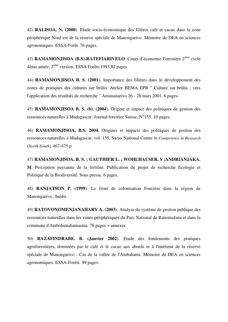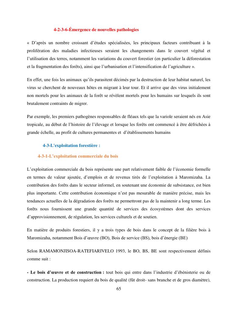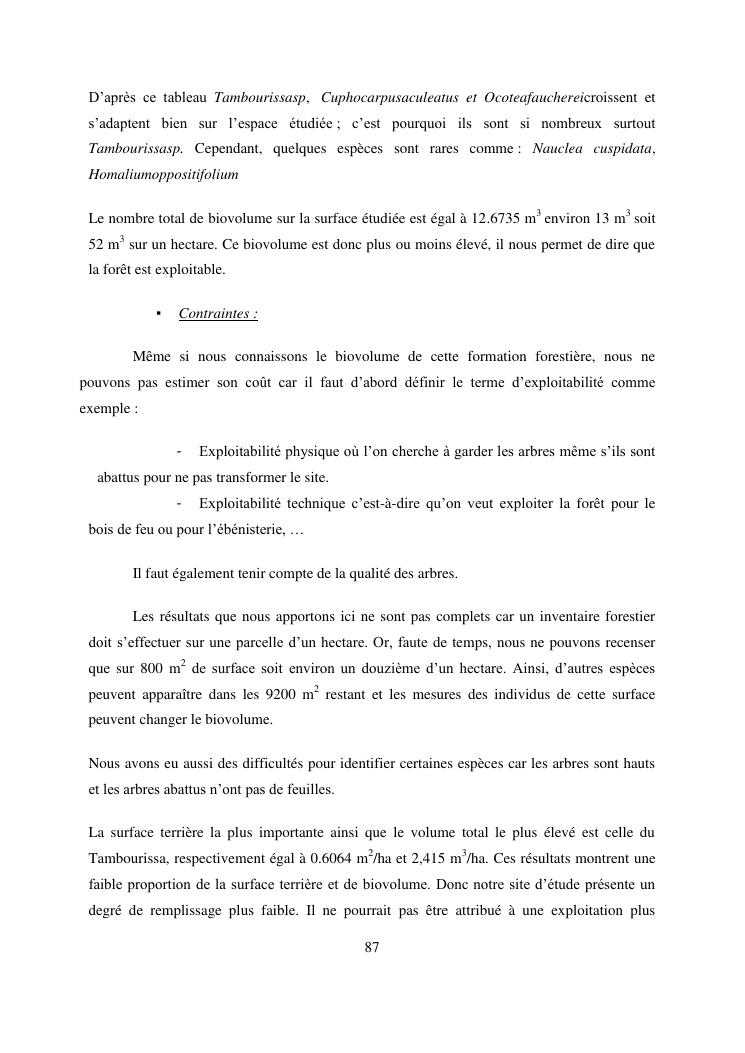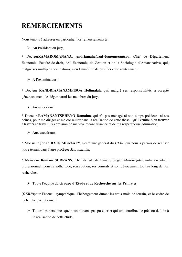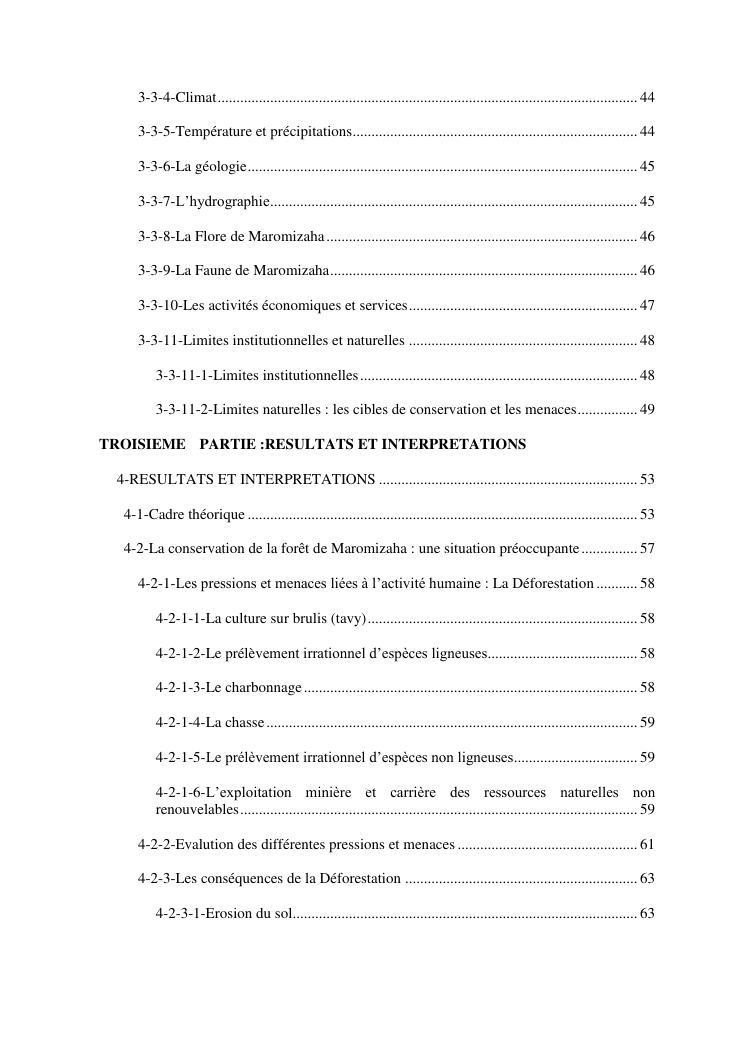 analyse de l'influence entre la conservation de l'ecosysteme forestier et l'economie forestiere, cas de la foret de maromizaha