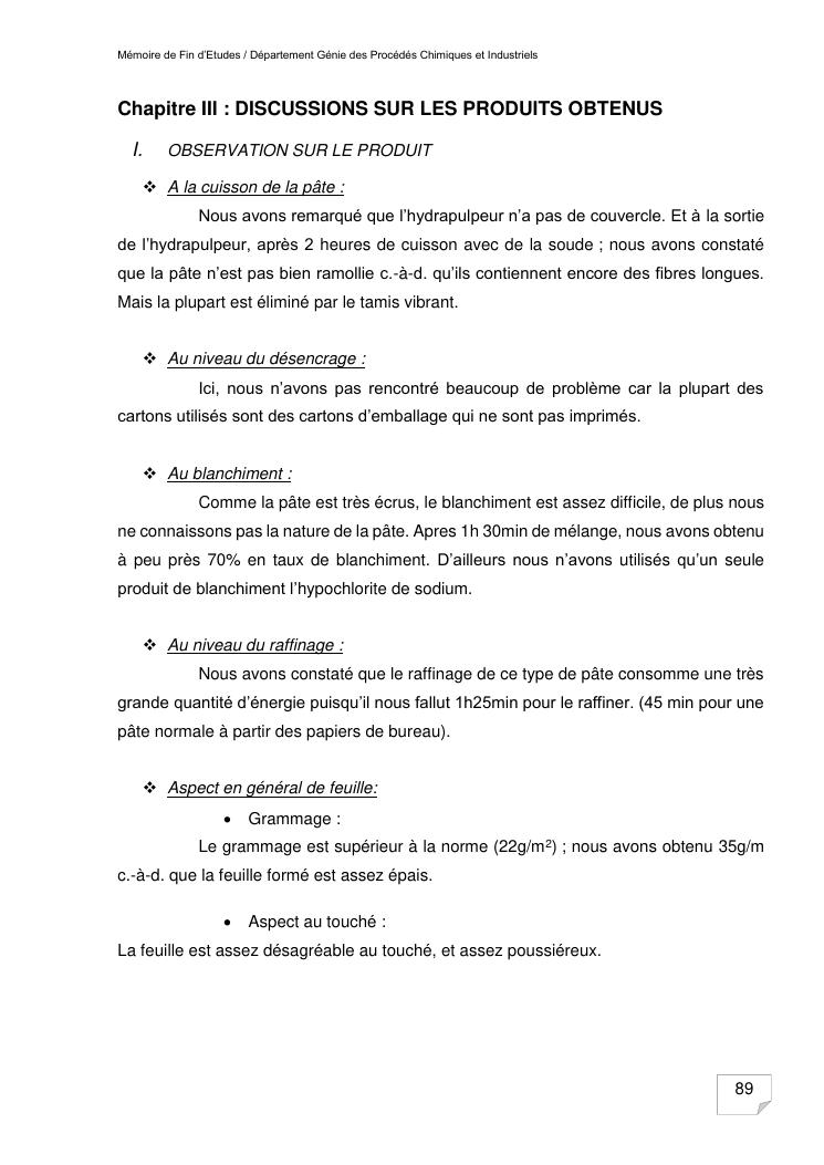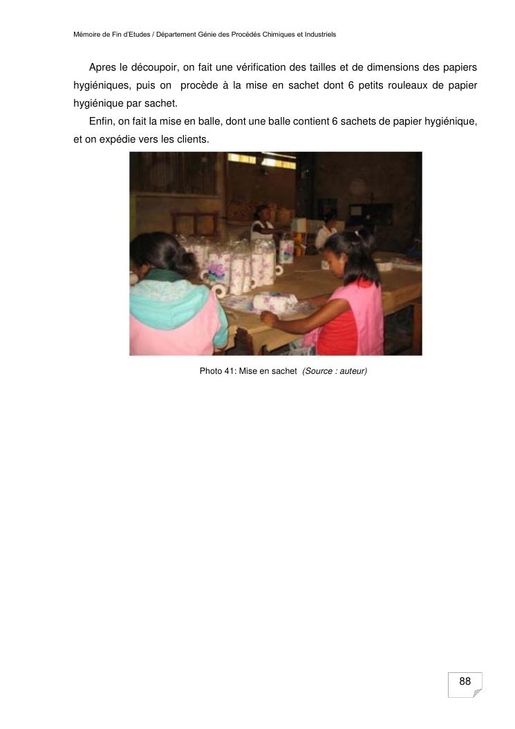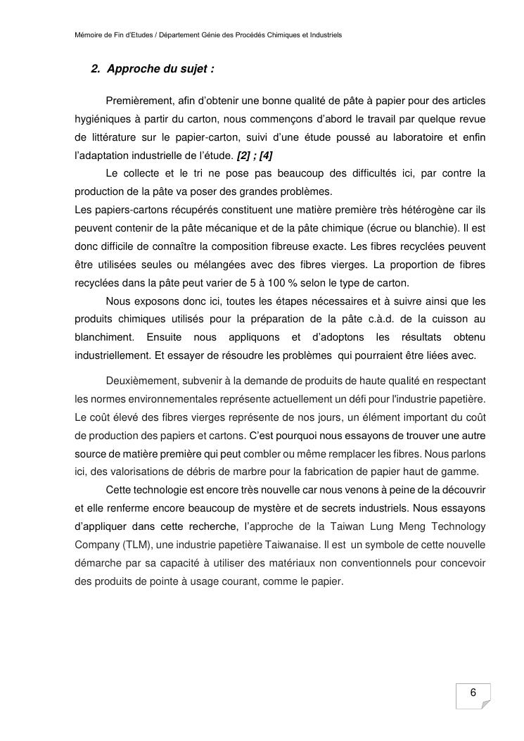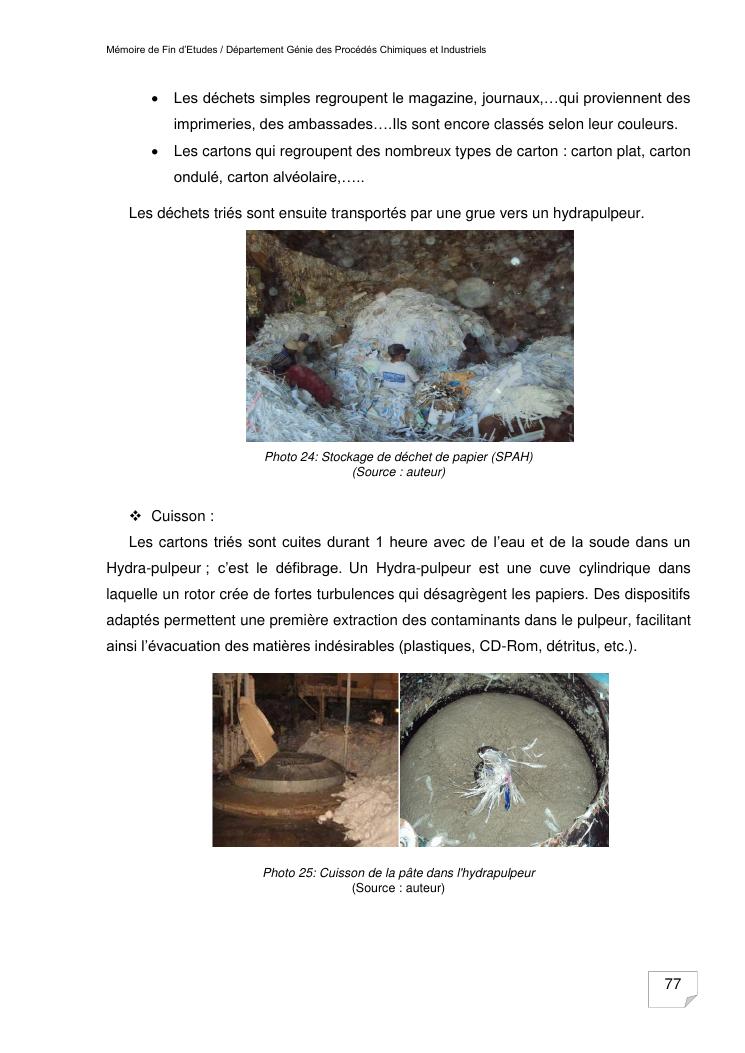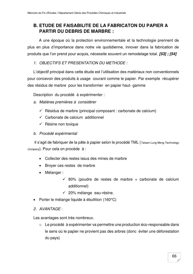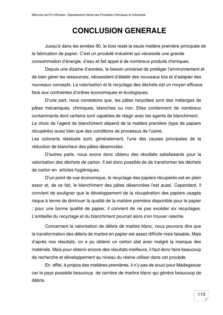 contribution à la valorisation de déchet de carton pour la production des articles hygiéniques chez s.p.a.h. ambohimanambola et éssai de valorisation de débris de marbre blanc pour la fabrication de papier.