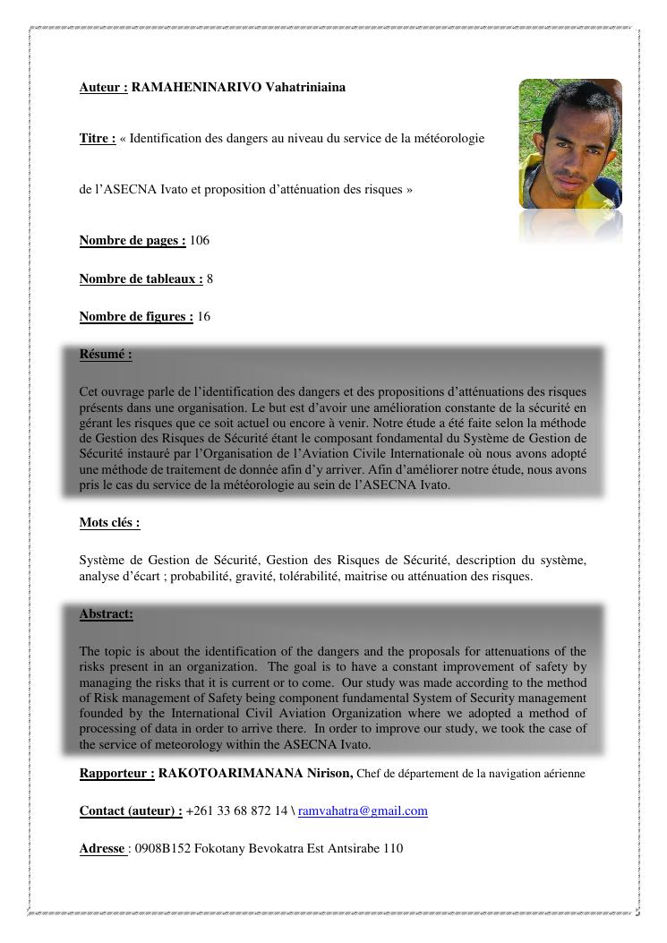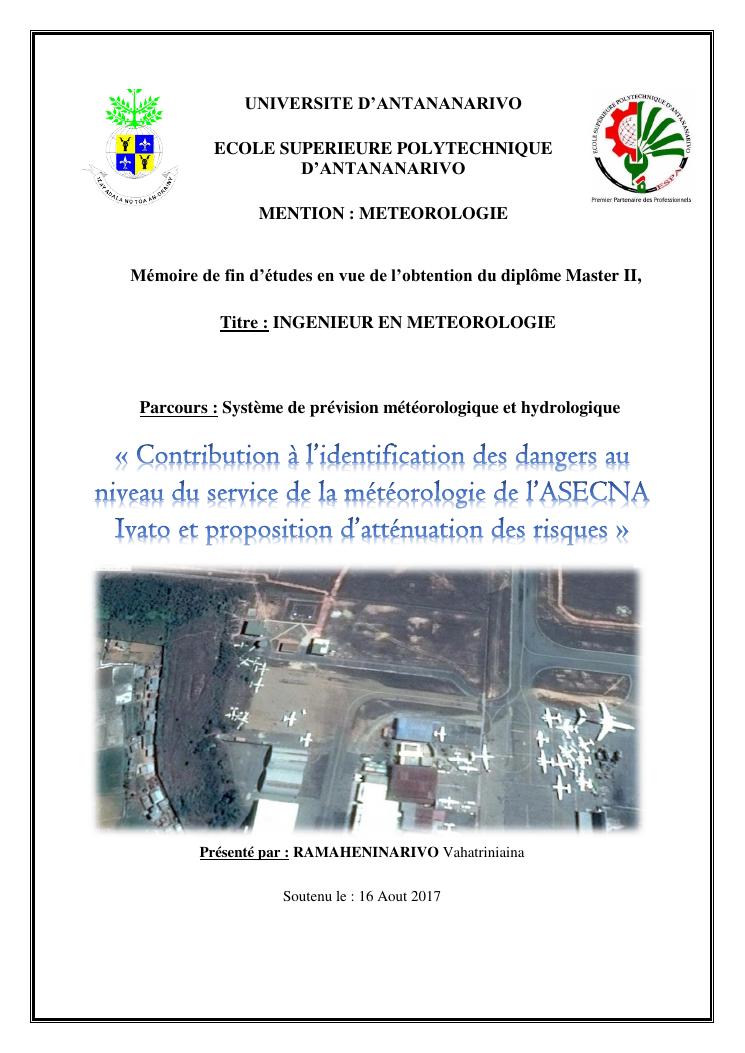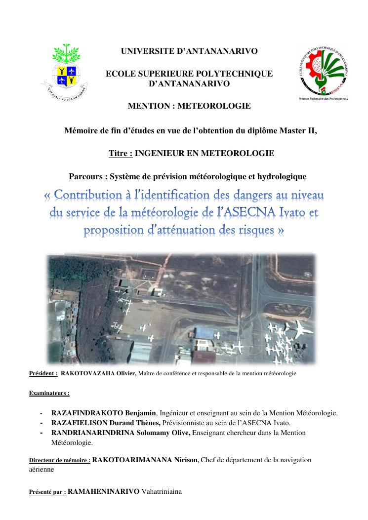 identification des dangers au niveau du service de la météorologie de l'asecna ivato et proposition d'atténuation des risques