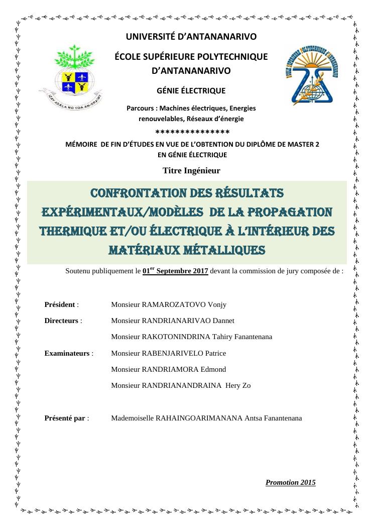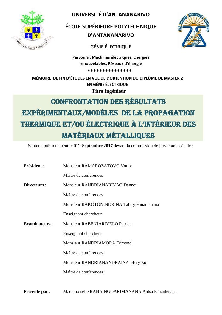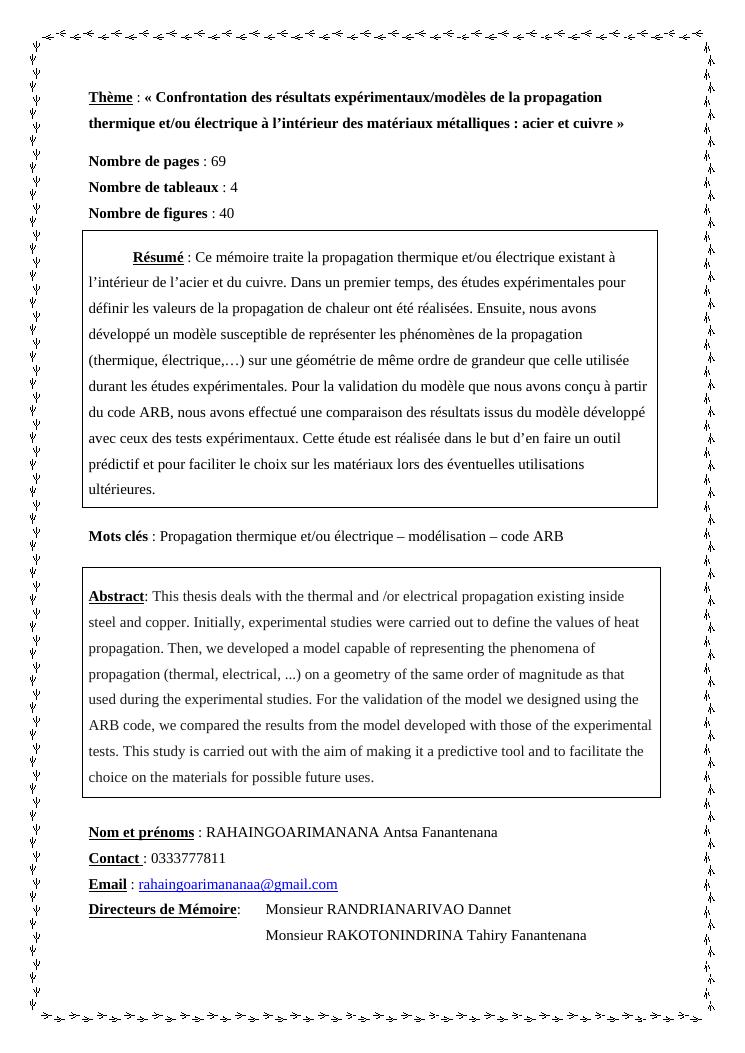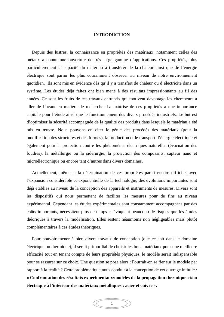 confrontation des résultats expérimentaux/modèles de la propagation thermique et/ou électrique à l'intérieur des matériaux métalliques : acier et cuivre