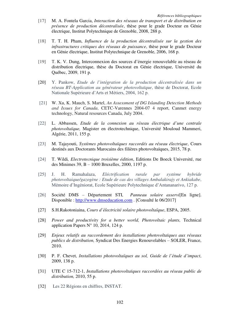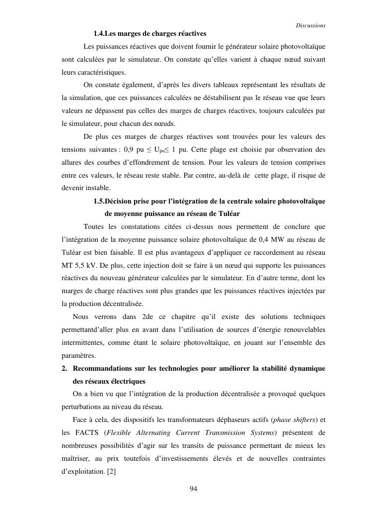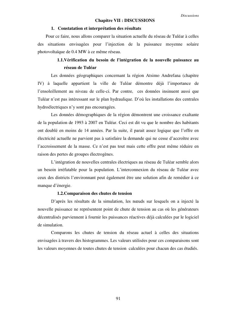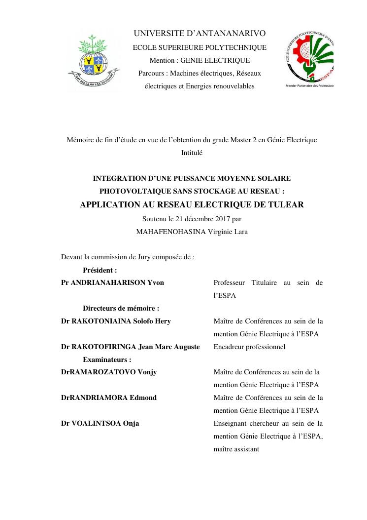 integration d'une puissance moyenne solaire photovoltaique sans stockage au reseau : application au reseau electrique de tulear