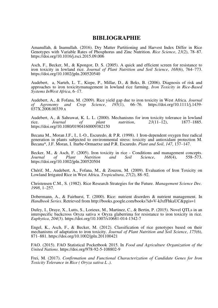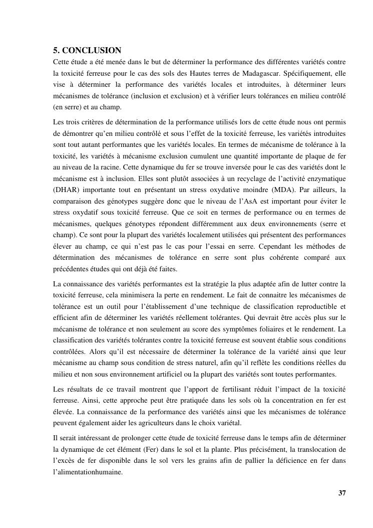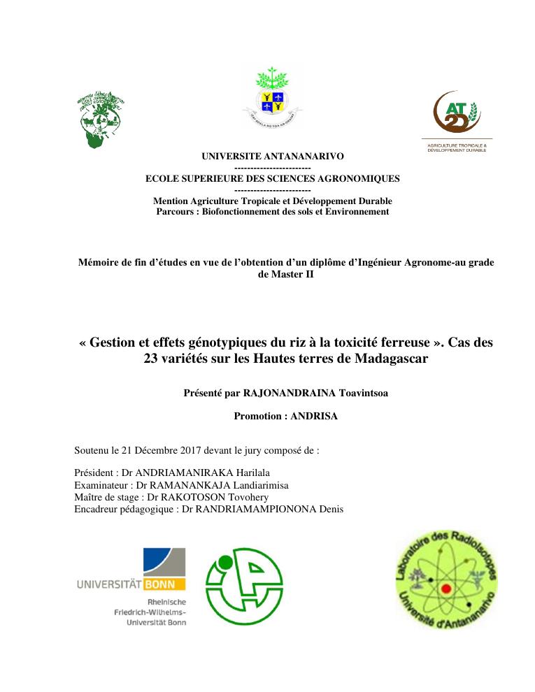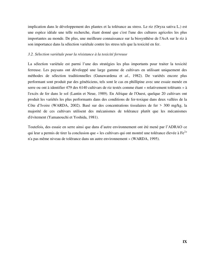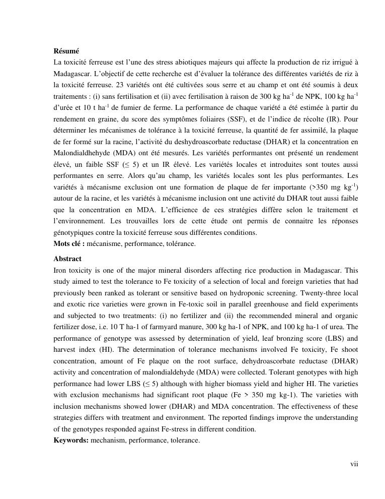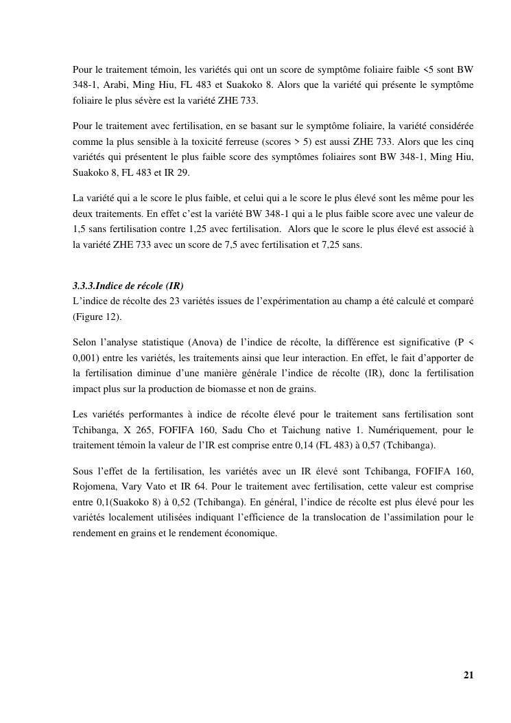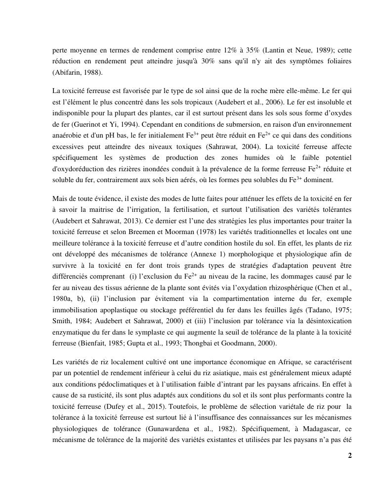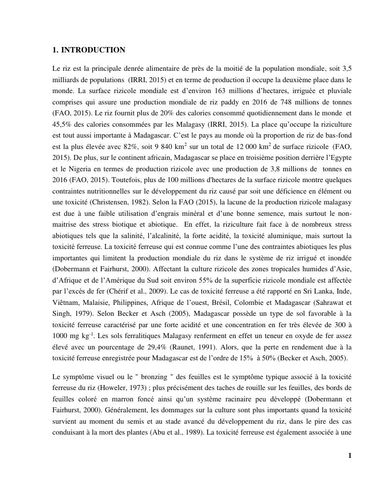 « gestion et effets génotypiques du riz à la toxicité ferreuse ». cas des 23 variétés sur les hautes terres de madagascar