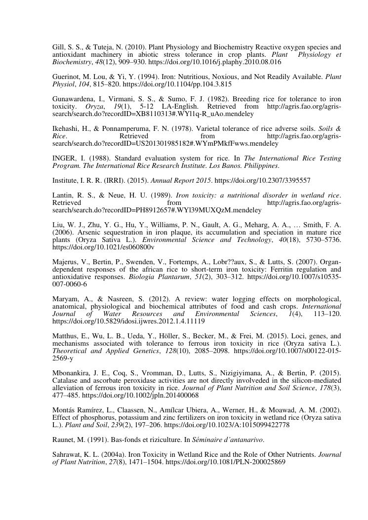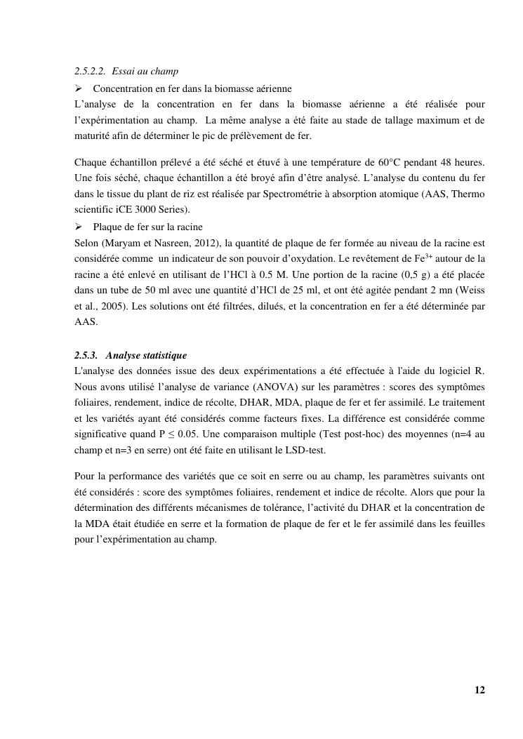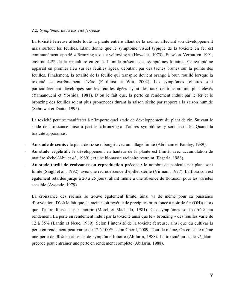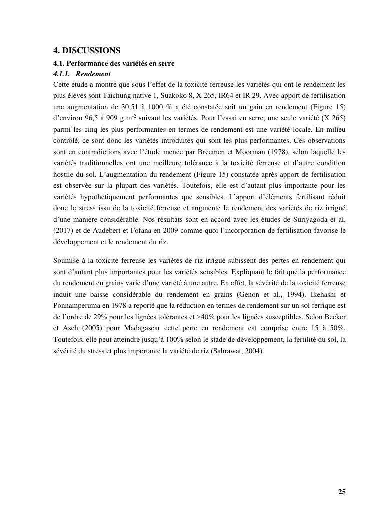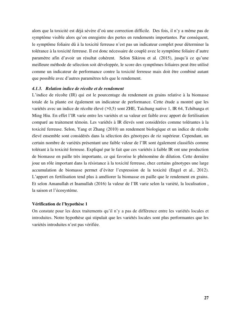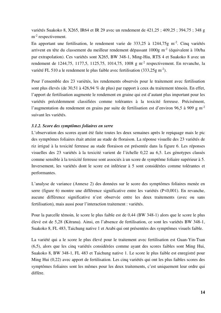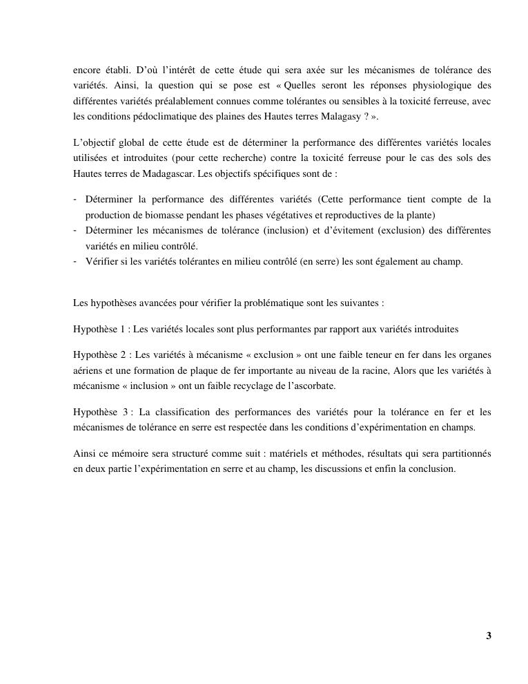 « gestion et effets génotypiques du riz à la toxicité ferreuse ». cas des 23 variétés sur les hautes terres de madagascar