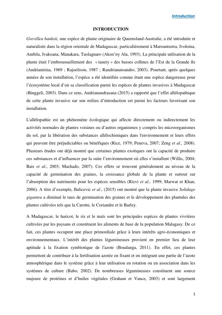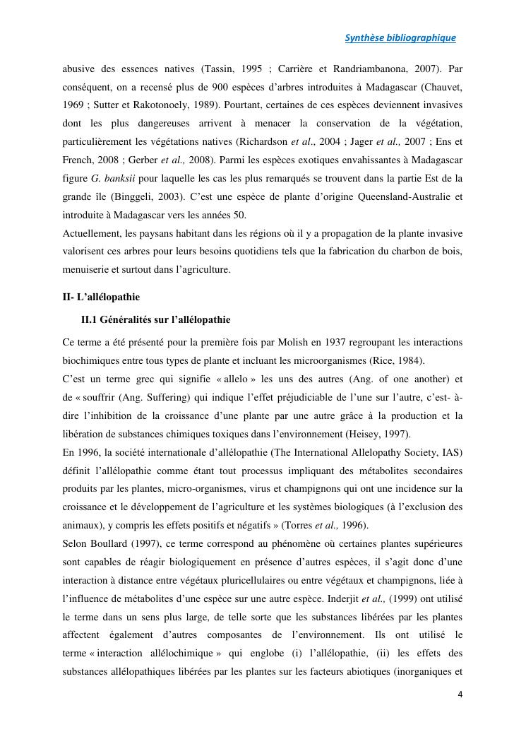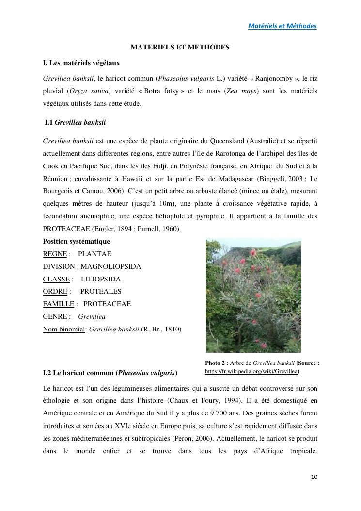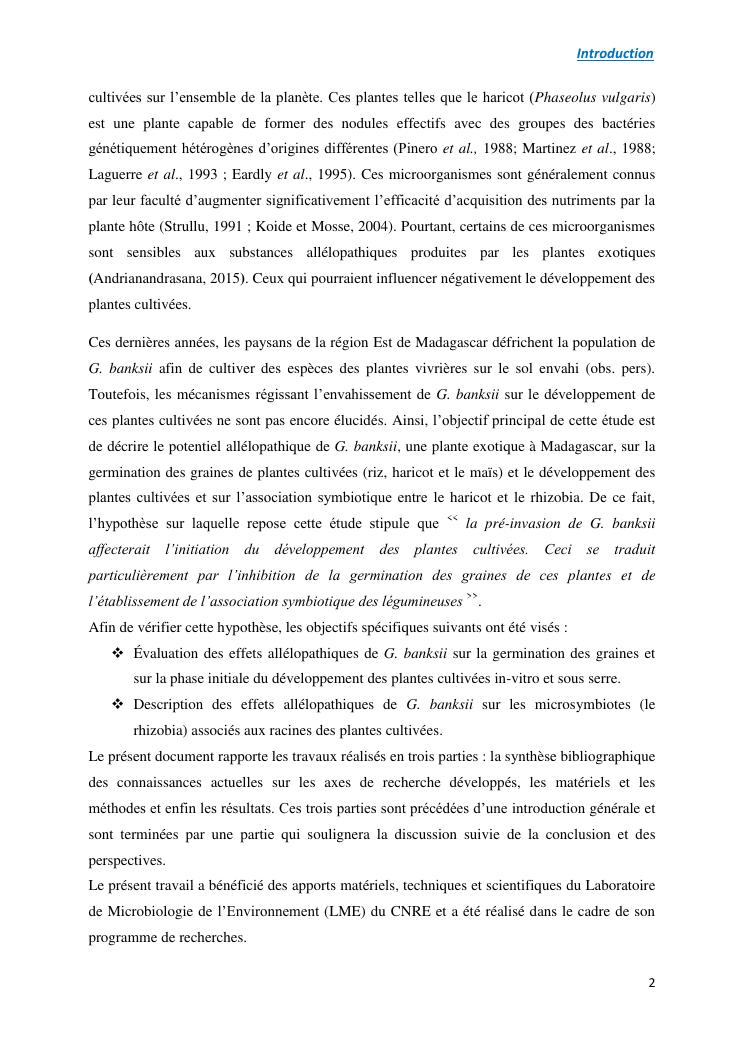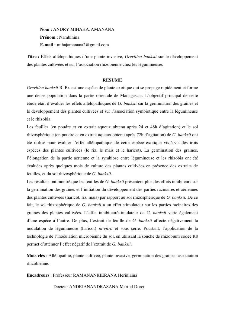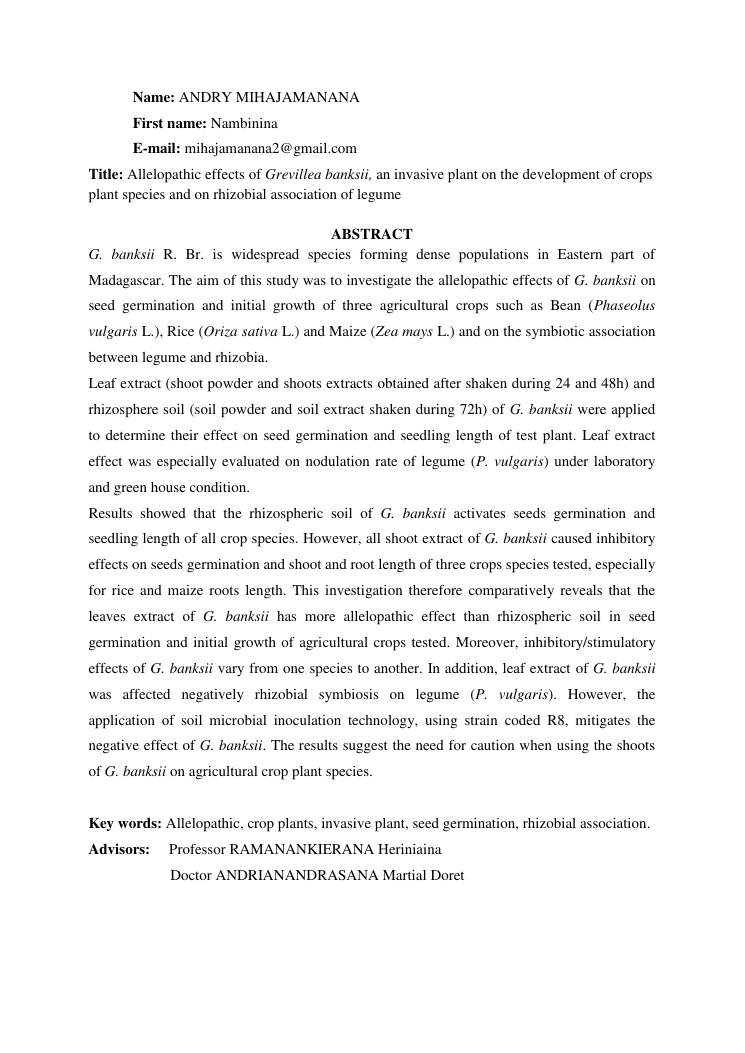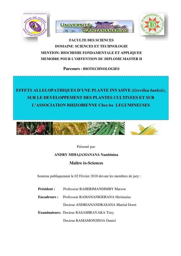 effets allelopathiques d'une plante invasive (grevillea banksii), sur le developpement des plantes cultivees et sur l'association rhizobienne chez les legumineuses